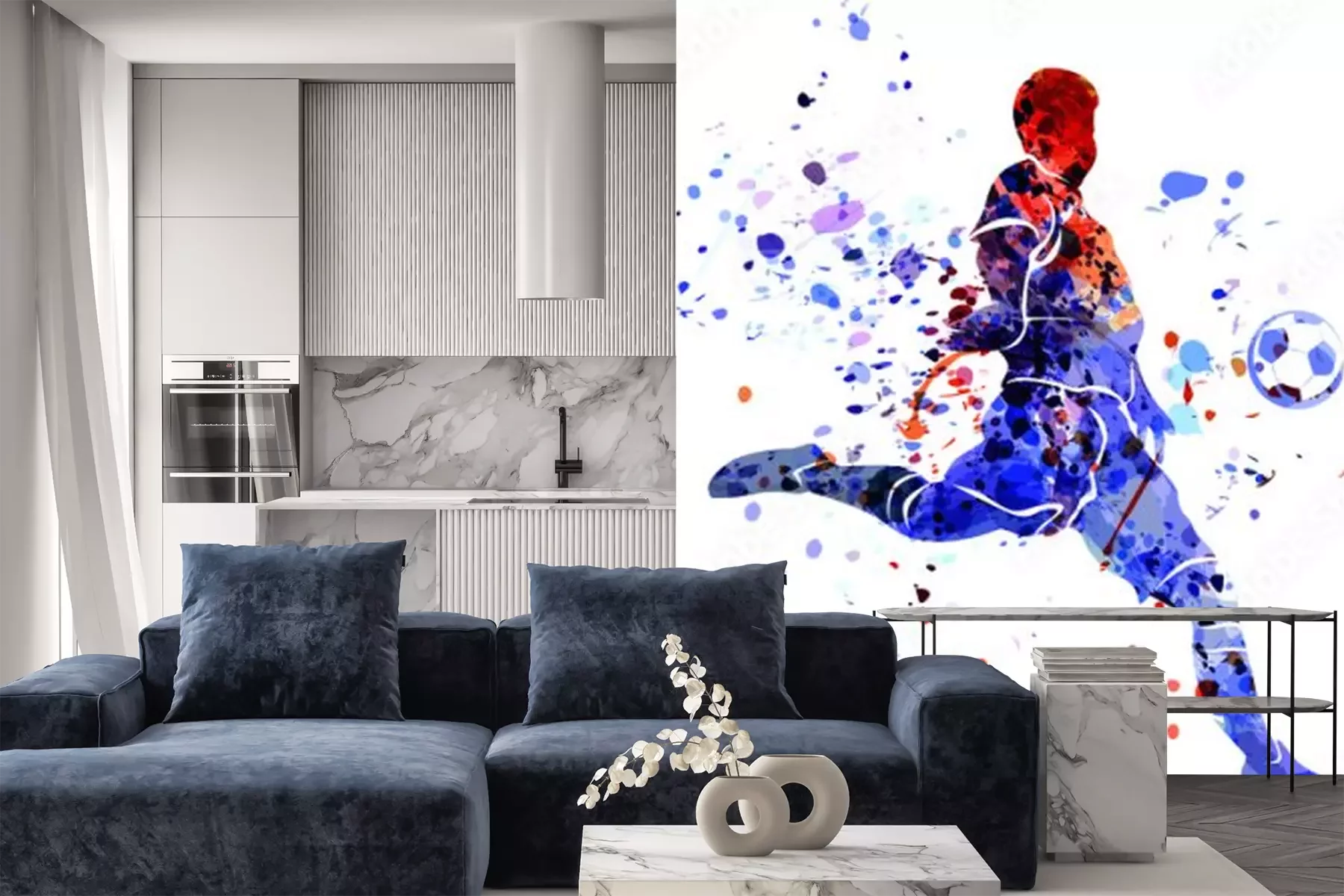 Sticker Ein Fußballspieler schießt während eines Spiels einen Volleyschuss ab