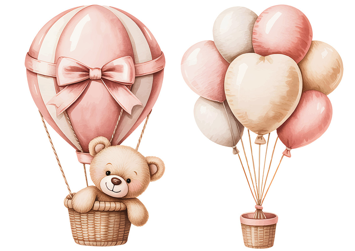Sticker: Ein niedlicher Teddybär und rosa Luftballons