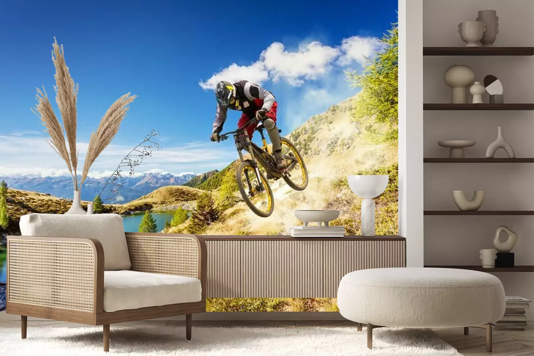 Geländemotorrad und NaturlandschaftFototapete