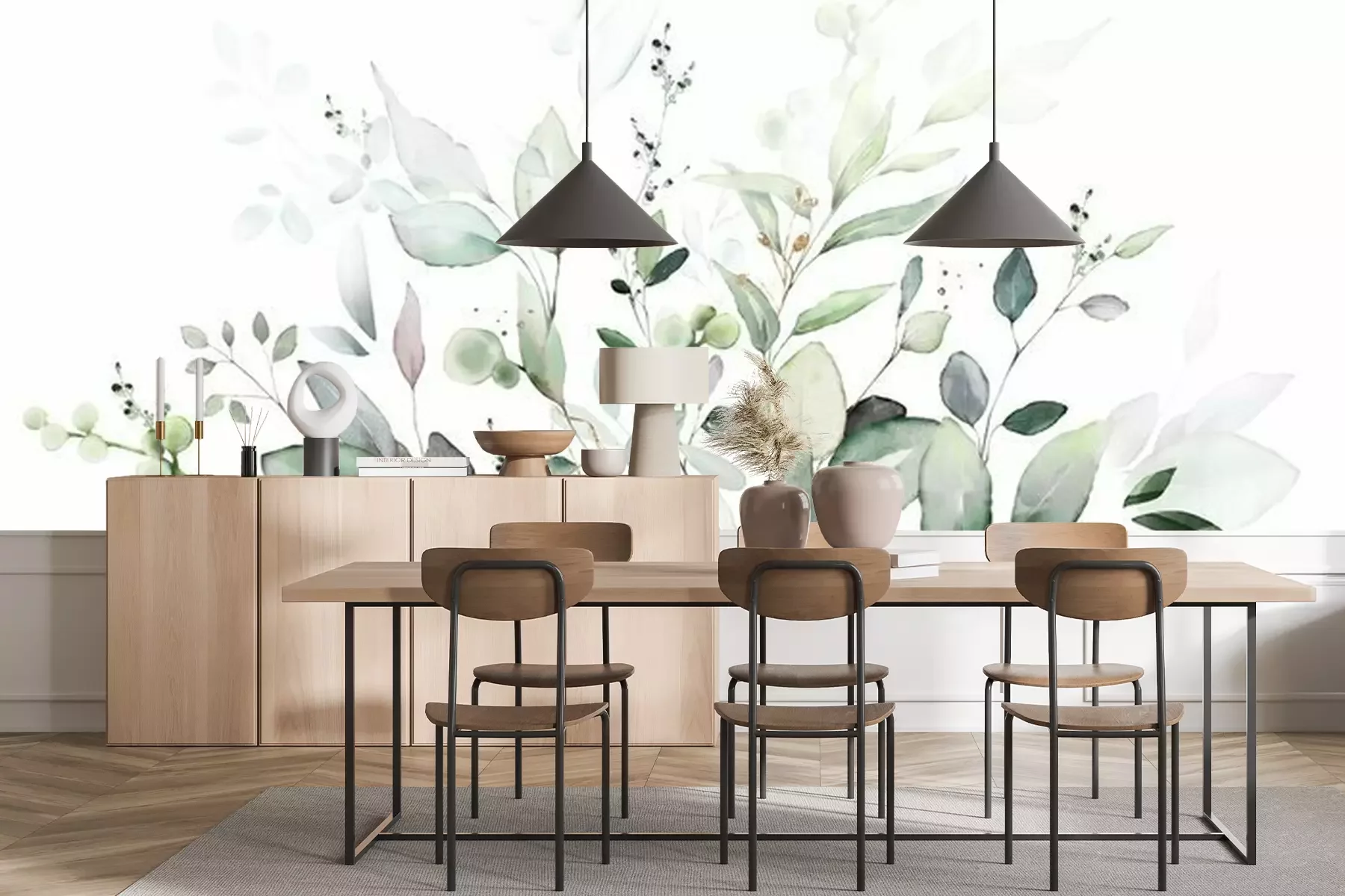 Sticker Ein Strauß Blätter mit Aquarellfarbe gemalt