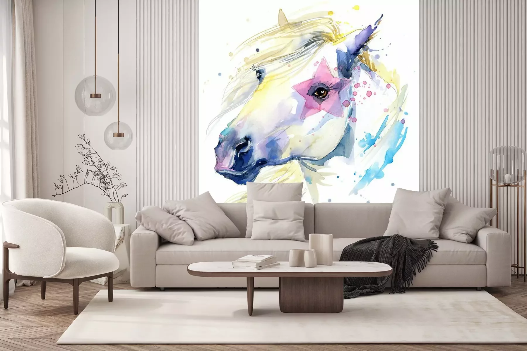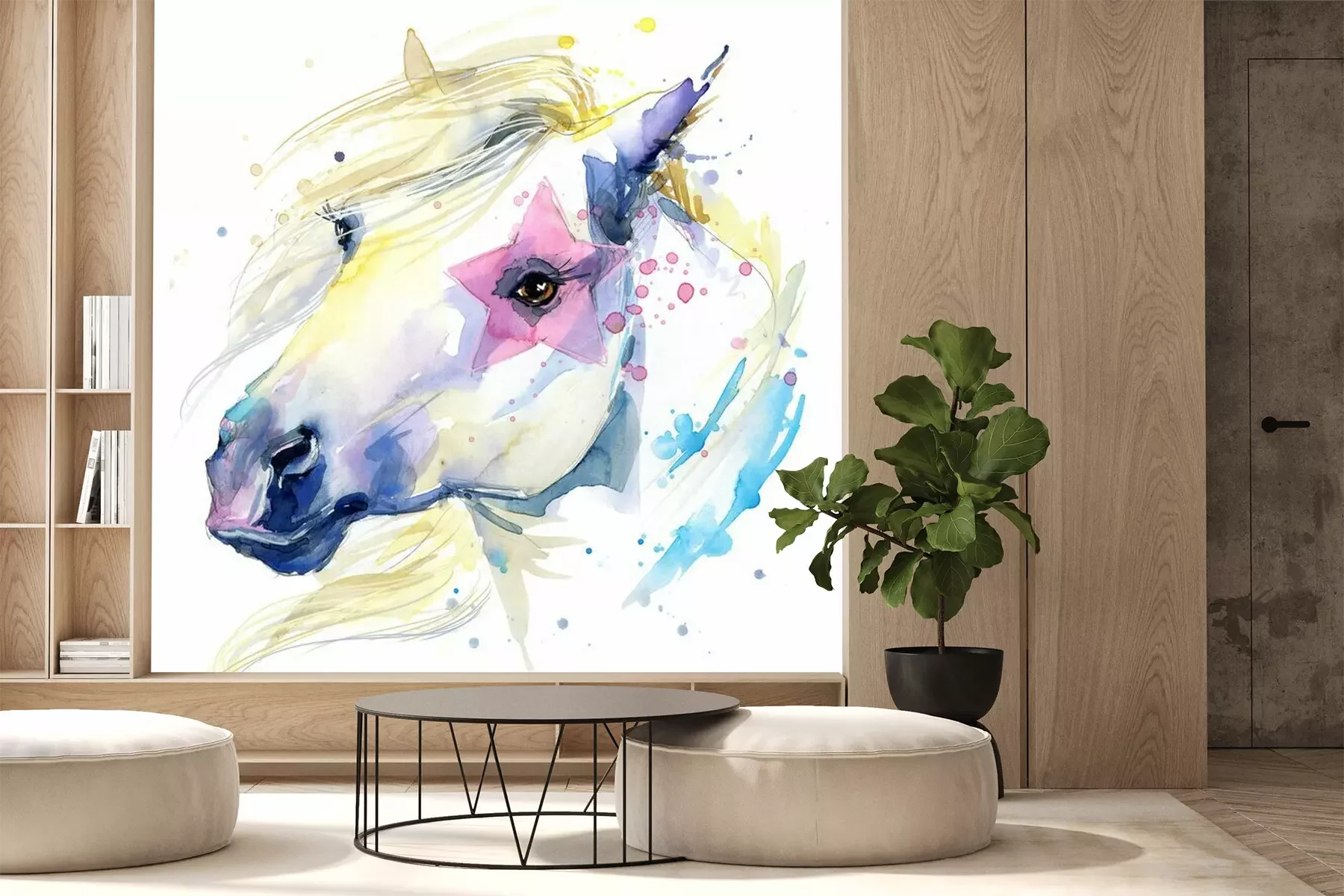 Sticker Ein weißes Pferd mit einem rosa Stern