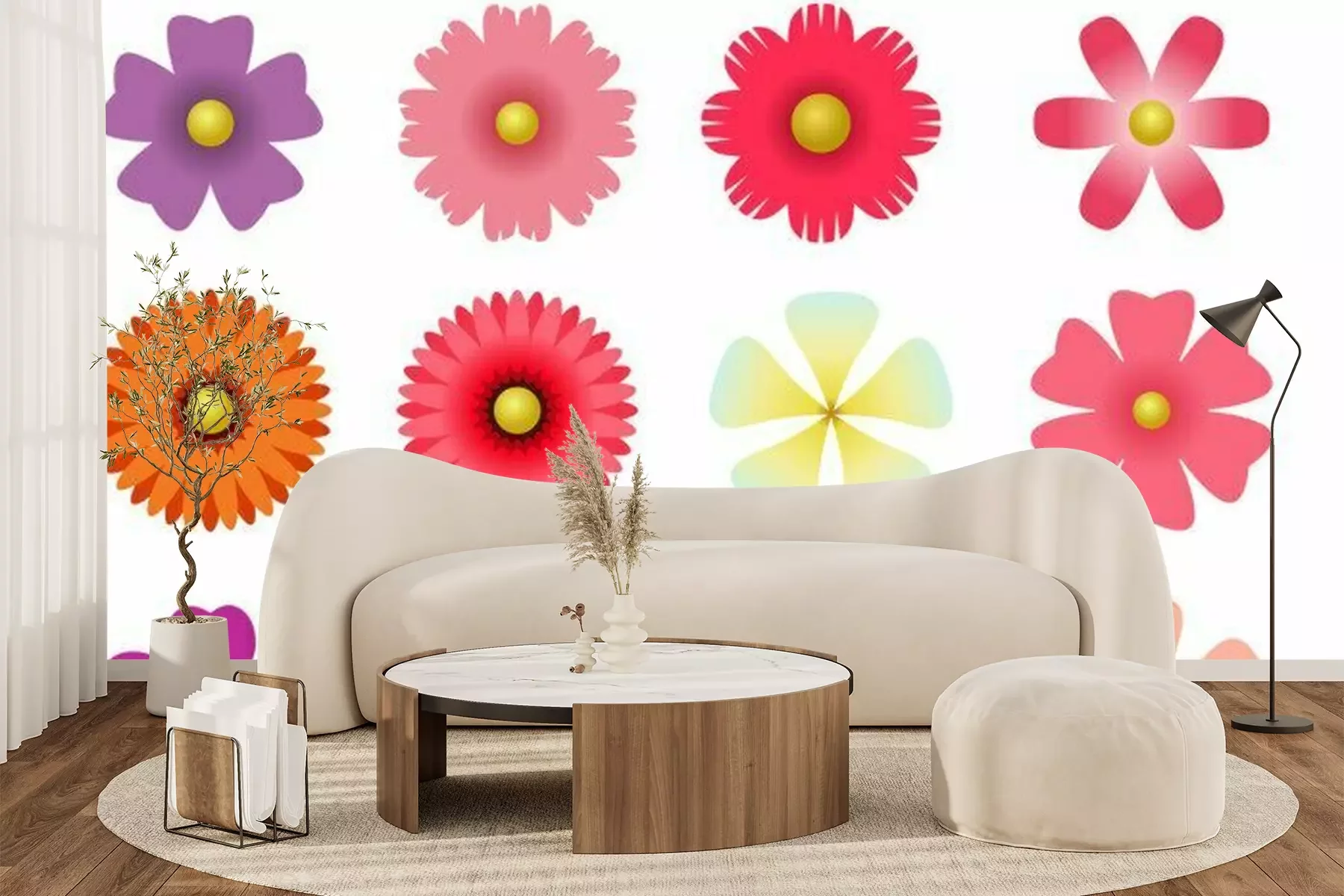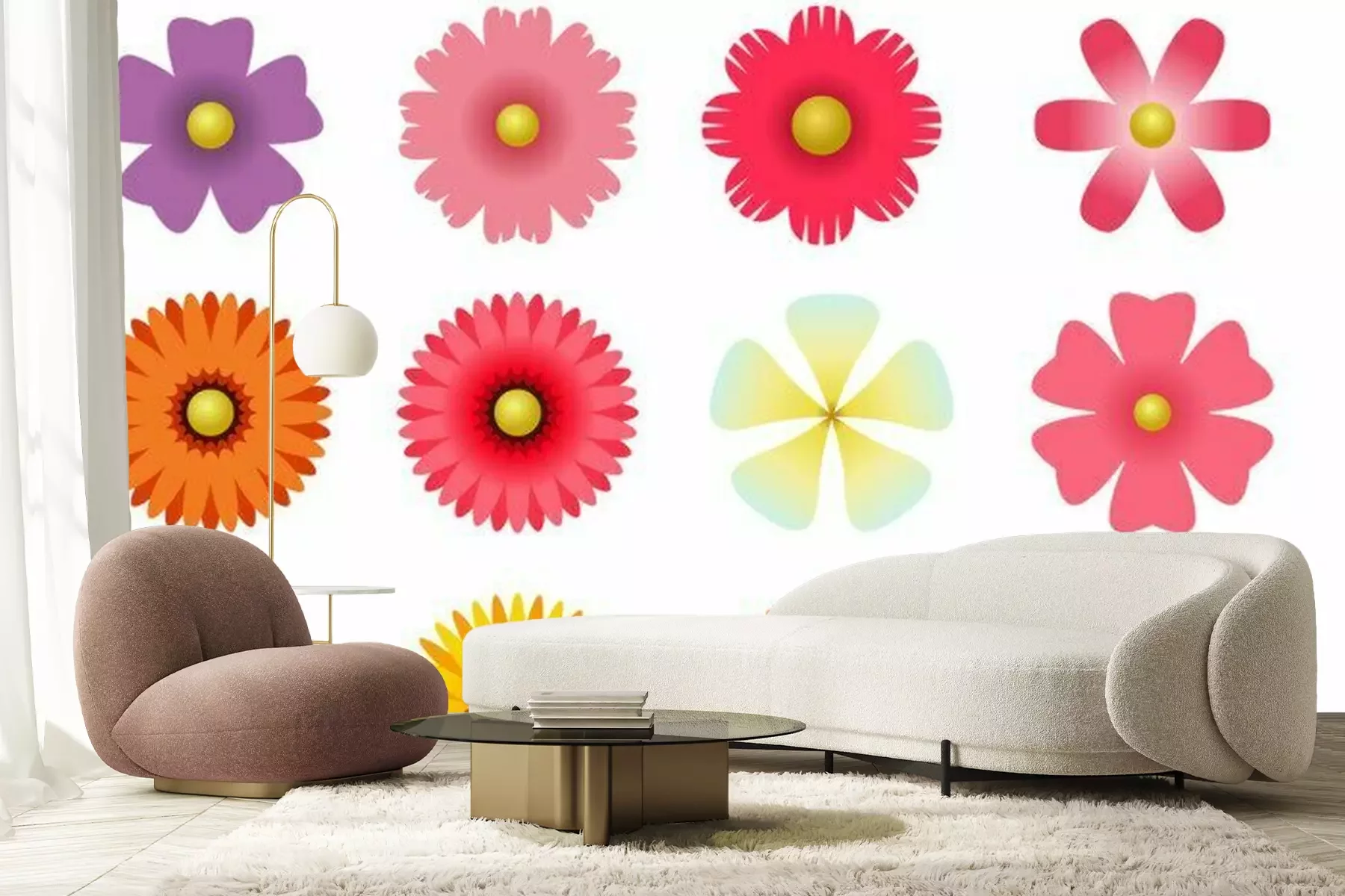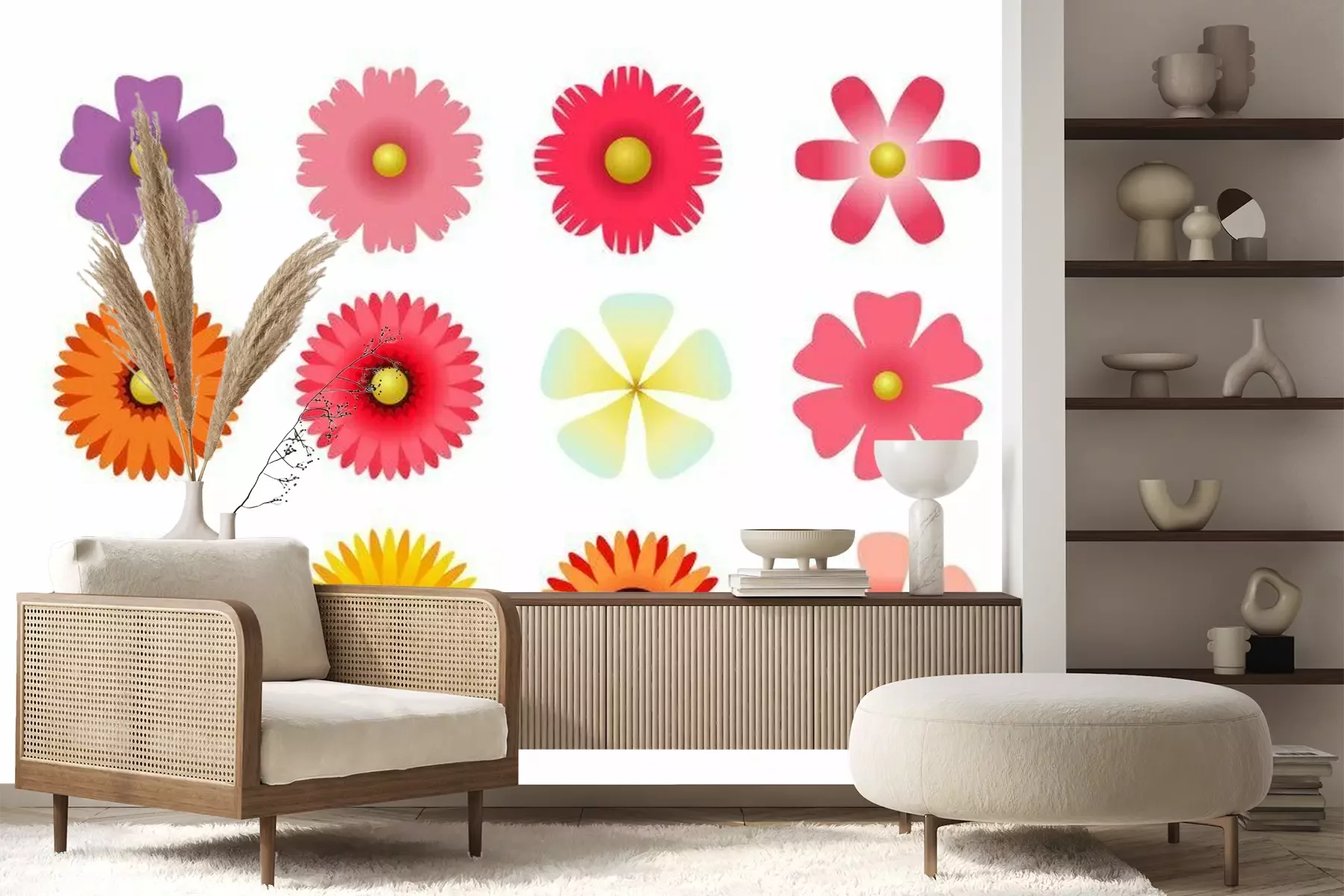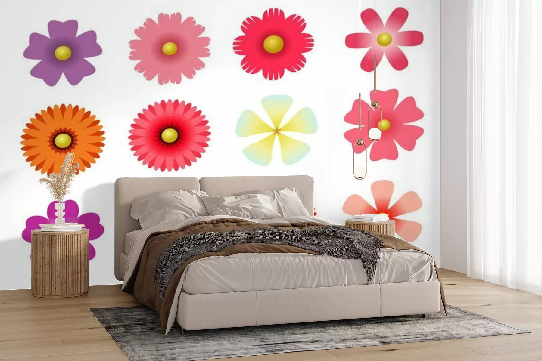 Sticker Einfache Blumengrafiken in verschiedenen Farbtönen