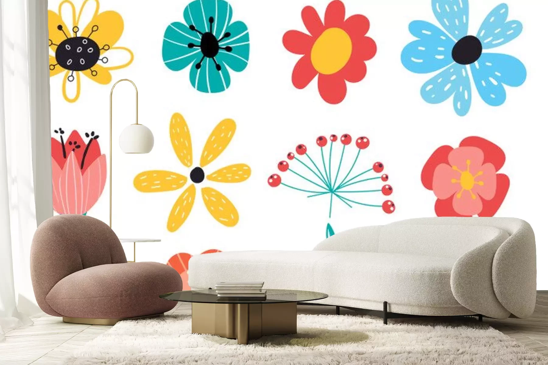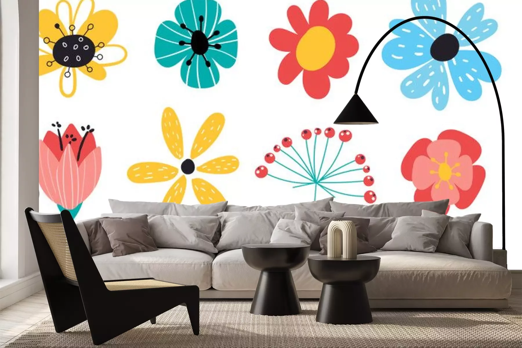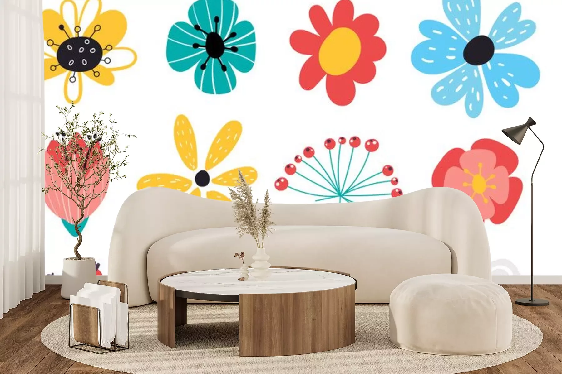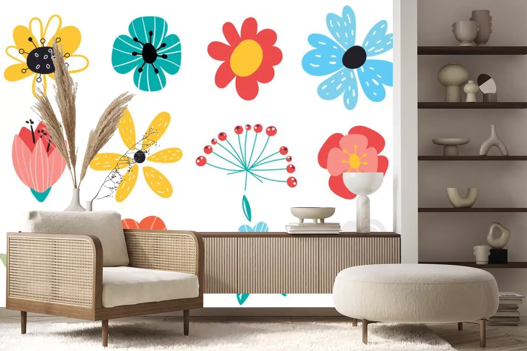 Sticker Einfache Grafiken, die Wiesenblumen darstellen