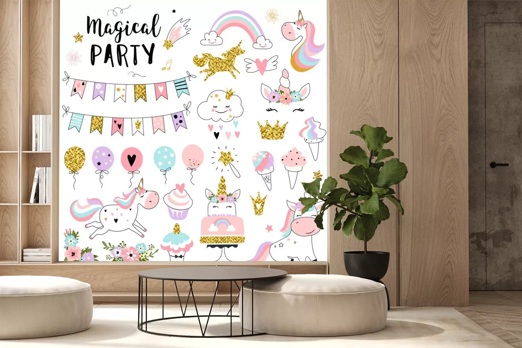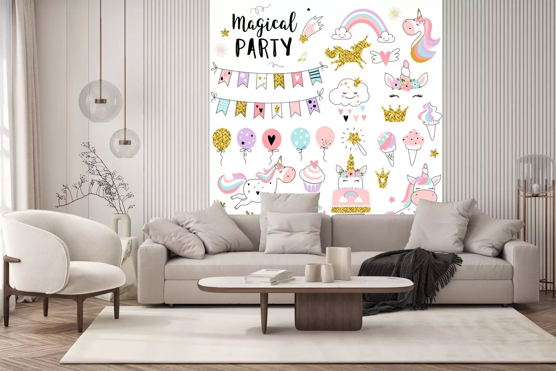 Sticker Einhörner Luftballons Eis Regenbogen Party-Grafiken