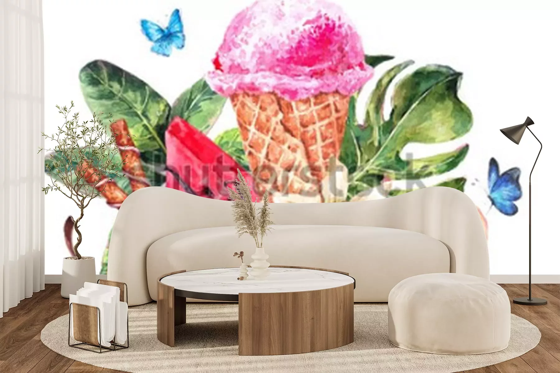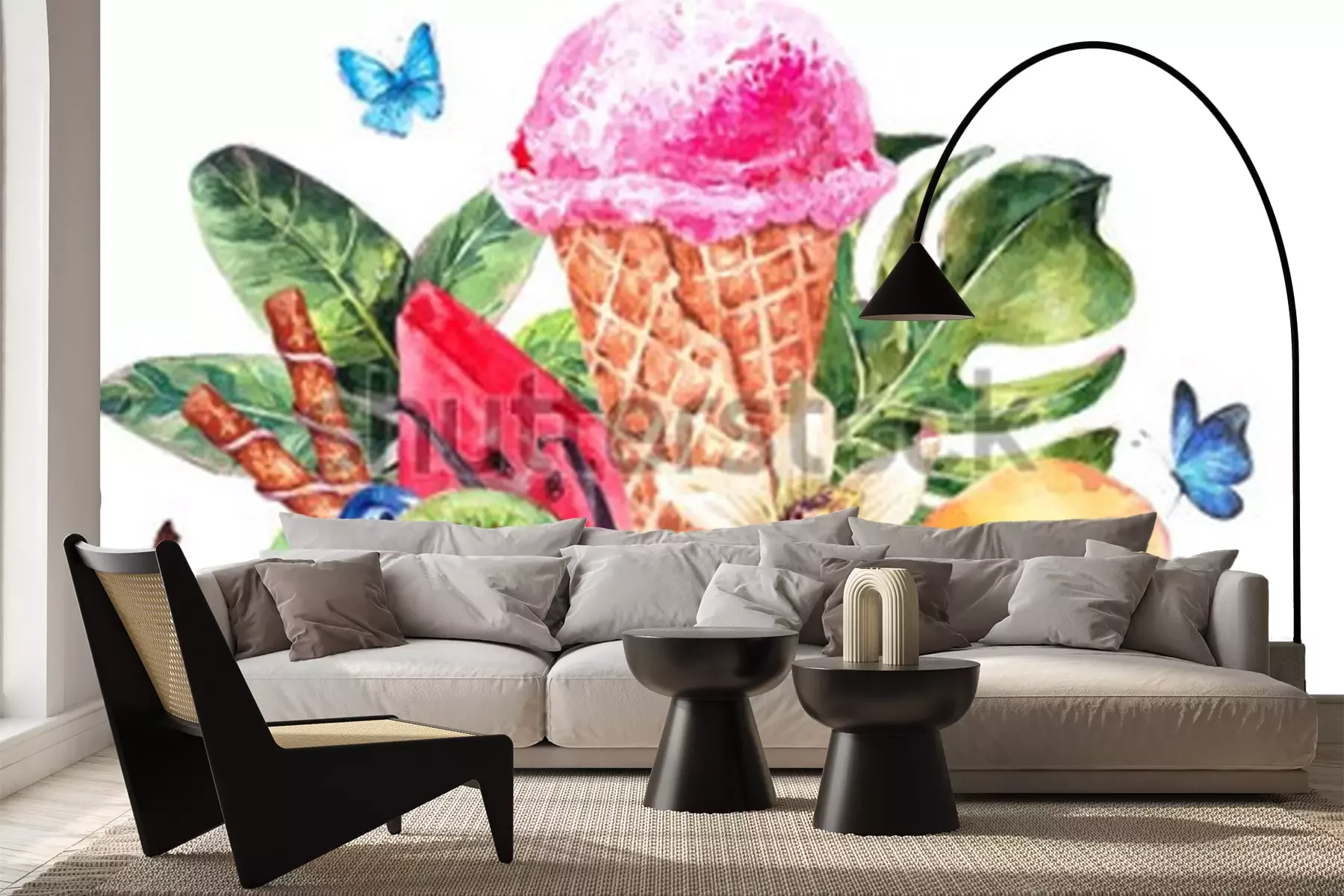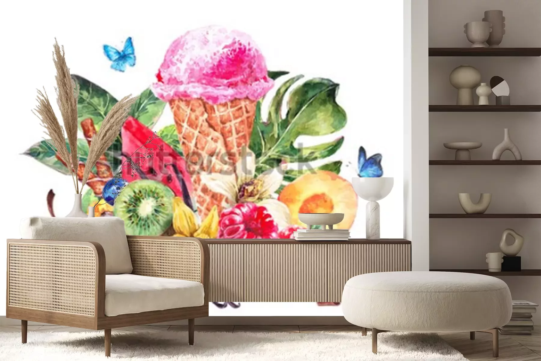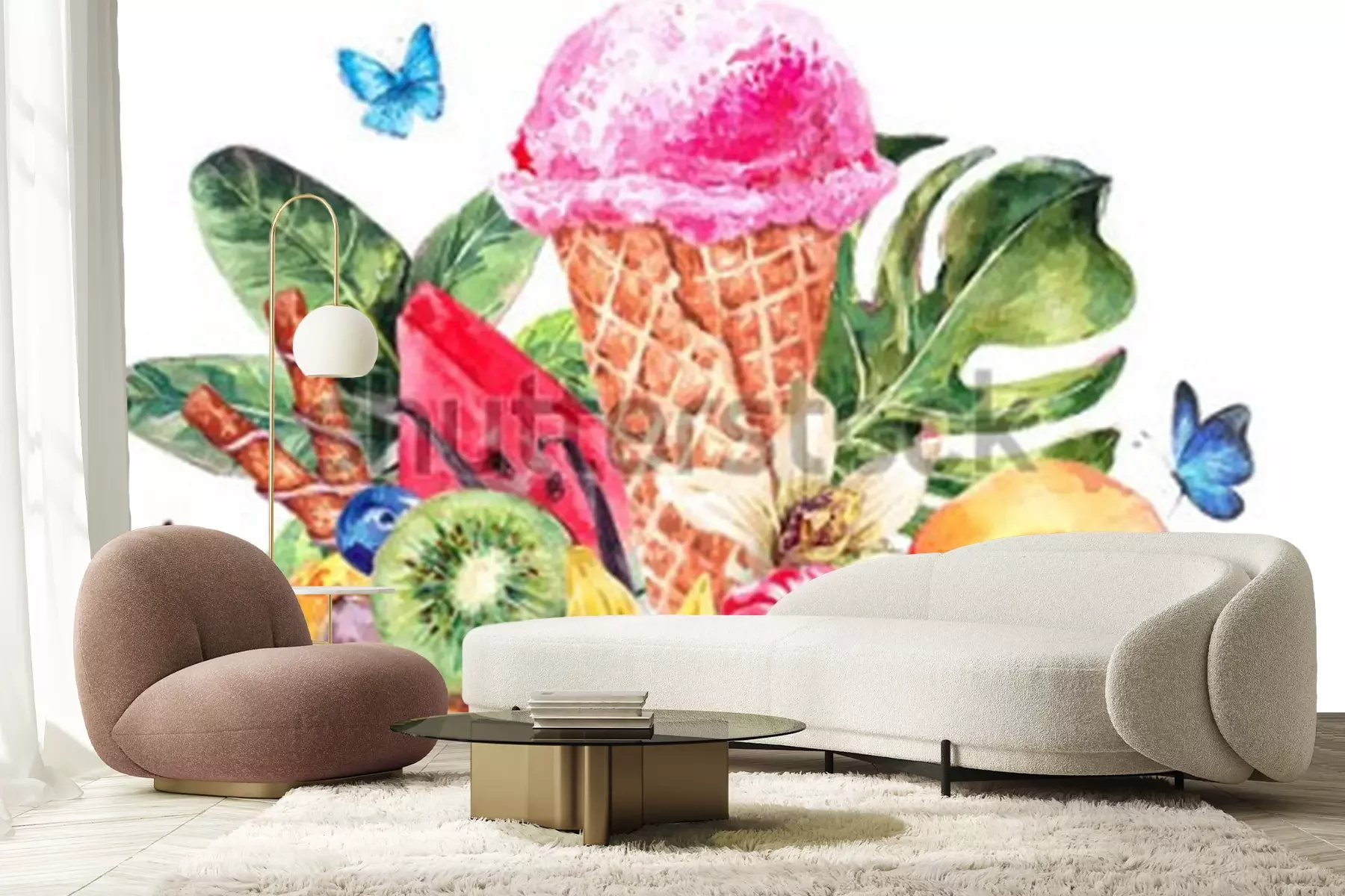 Sticker Eis umgeben von tropischen Früchten