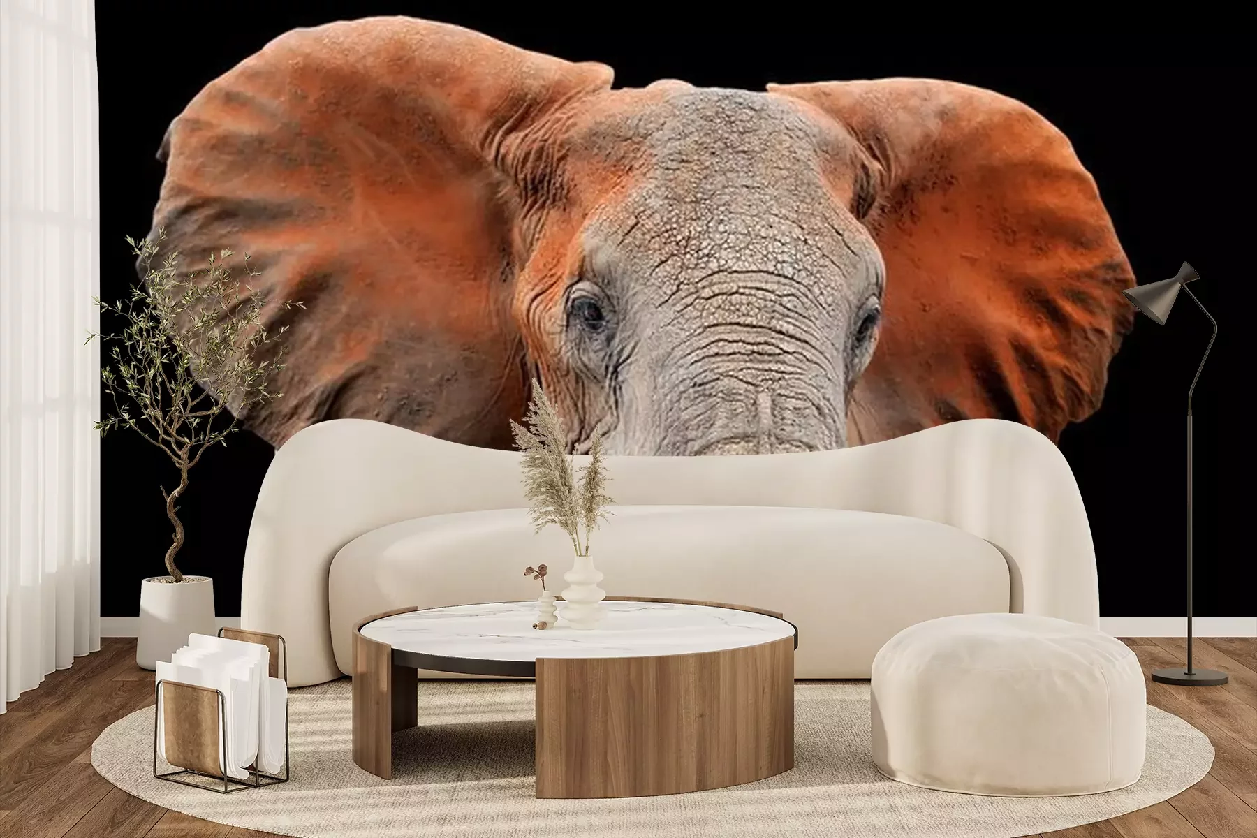 Elefant bei SonnenuntergangFototapete
