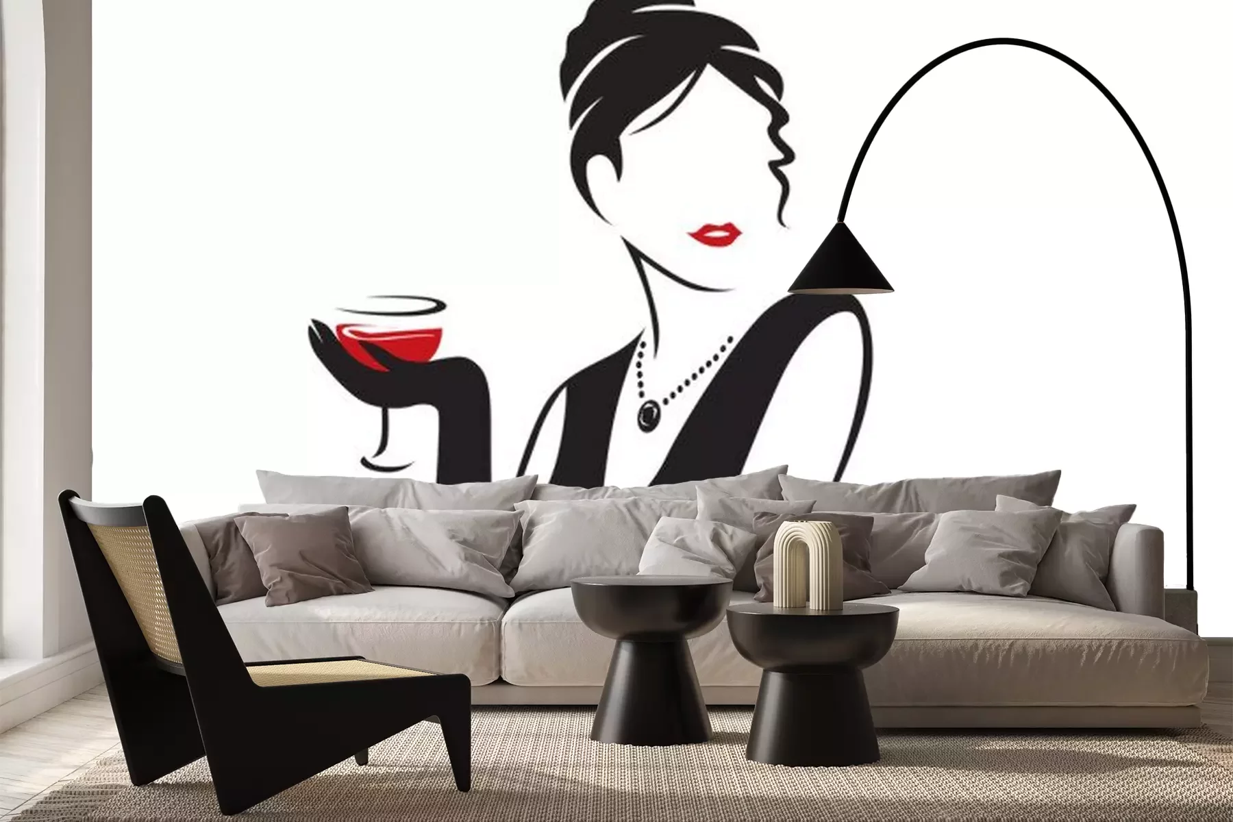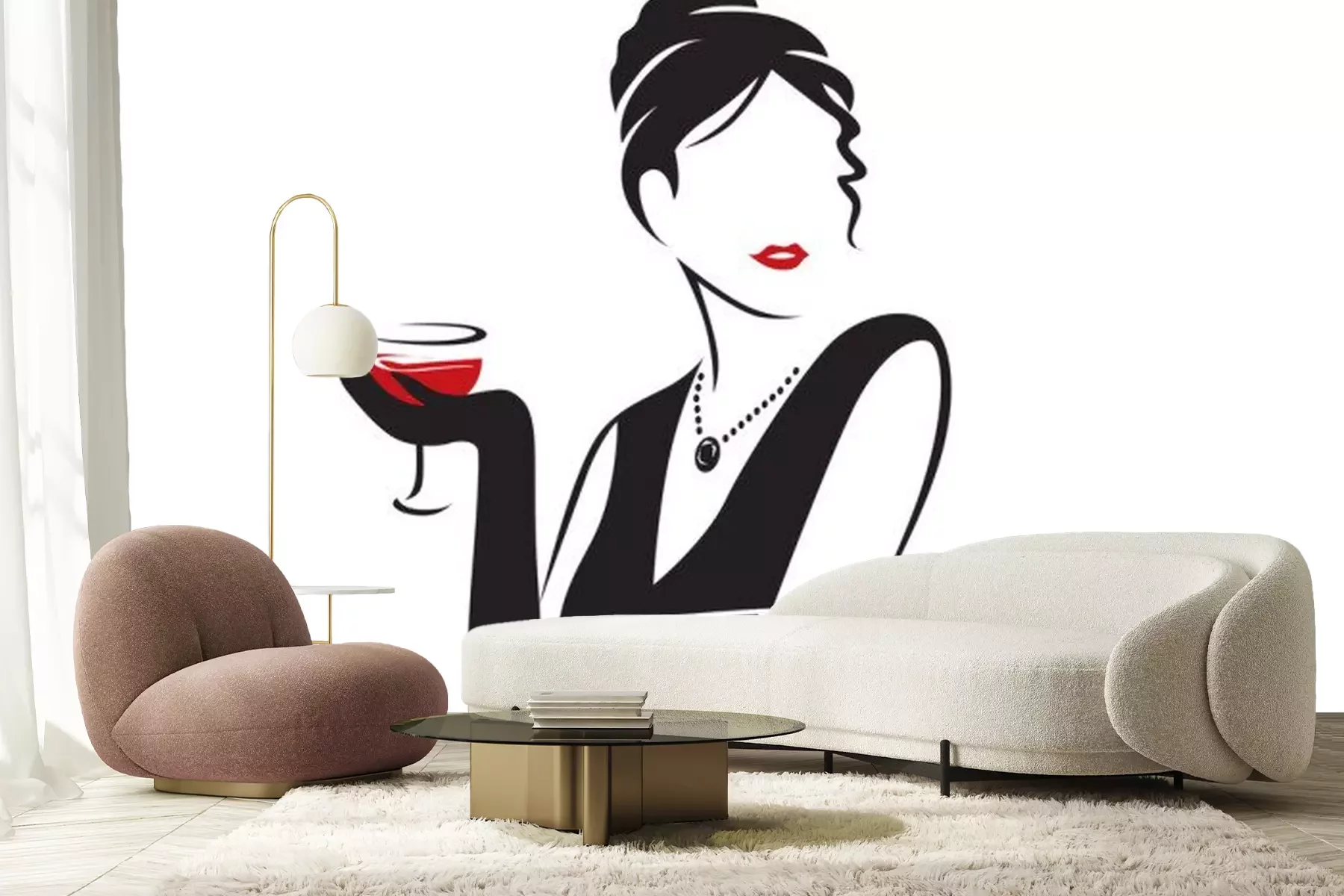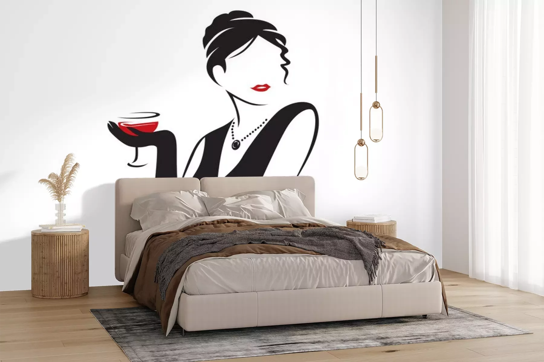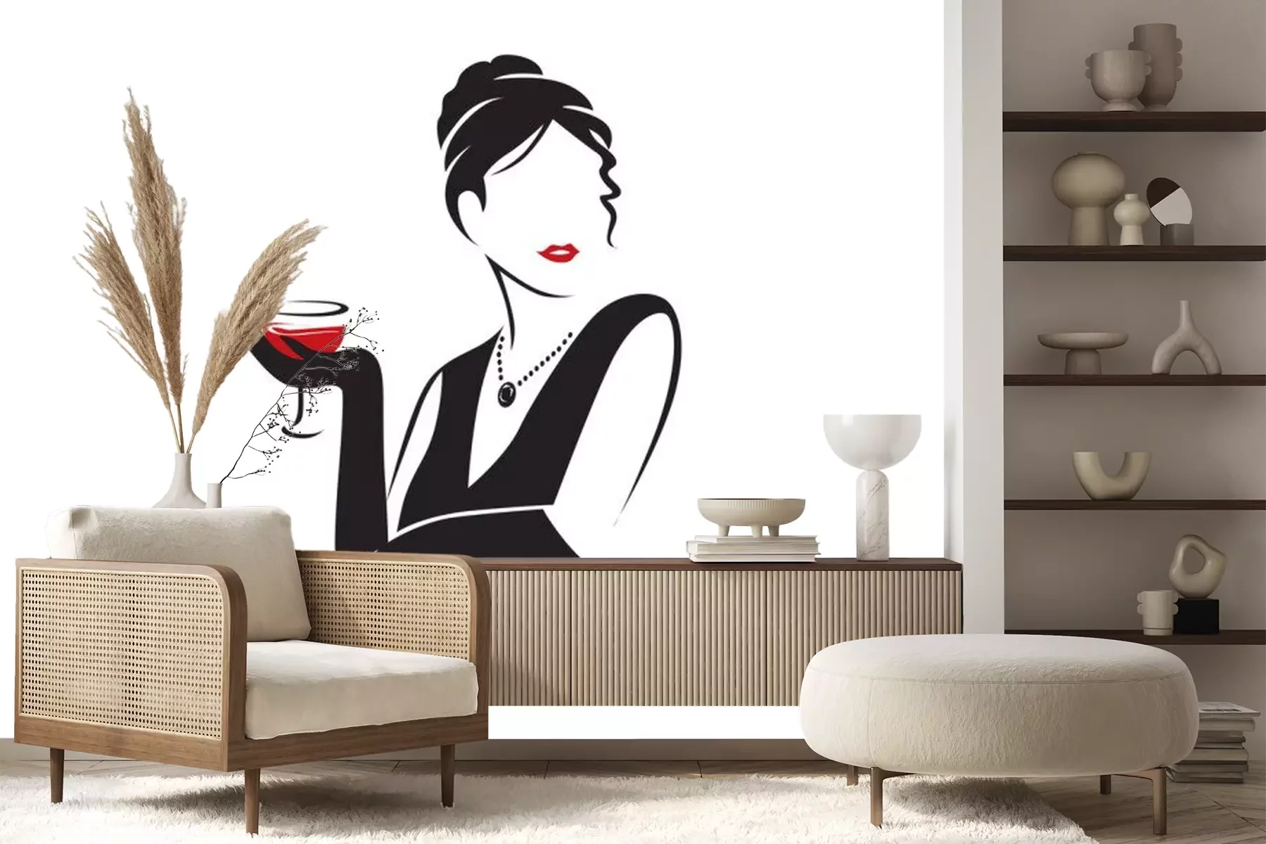Sticker Elegante Frau mit einem Glas minimalistische Grafik