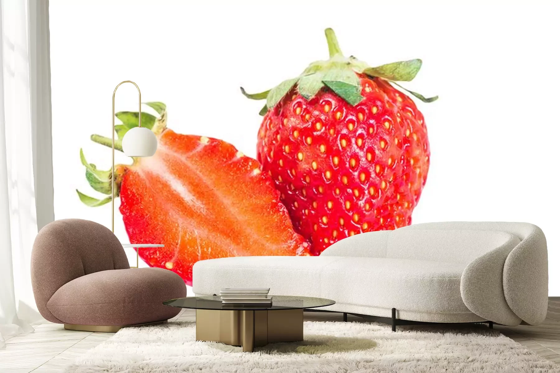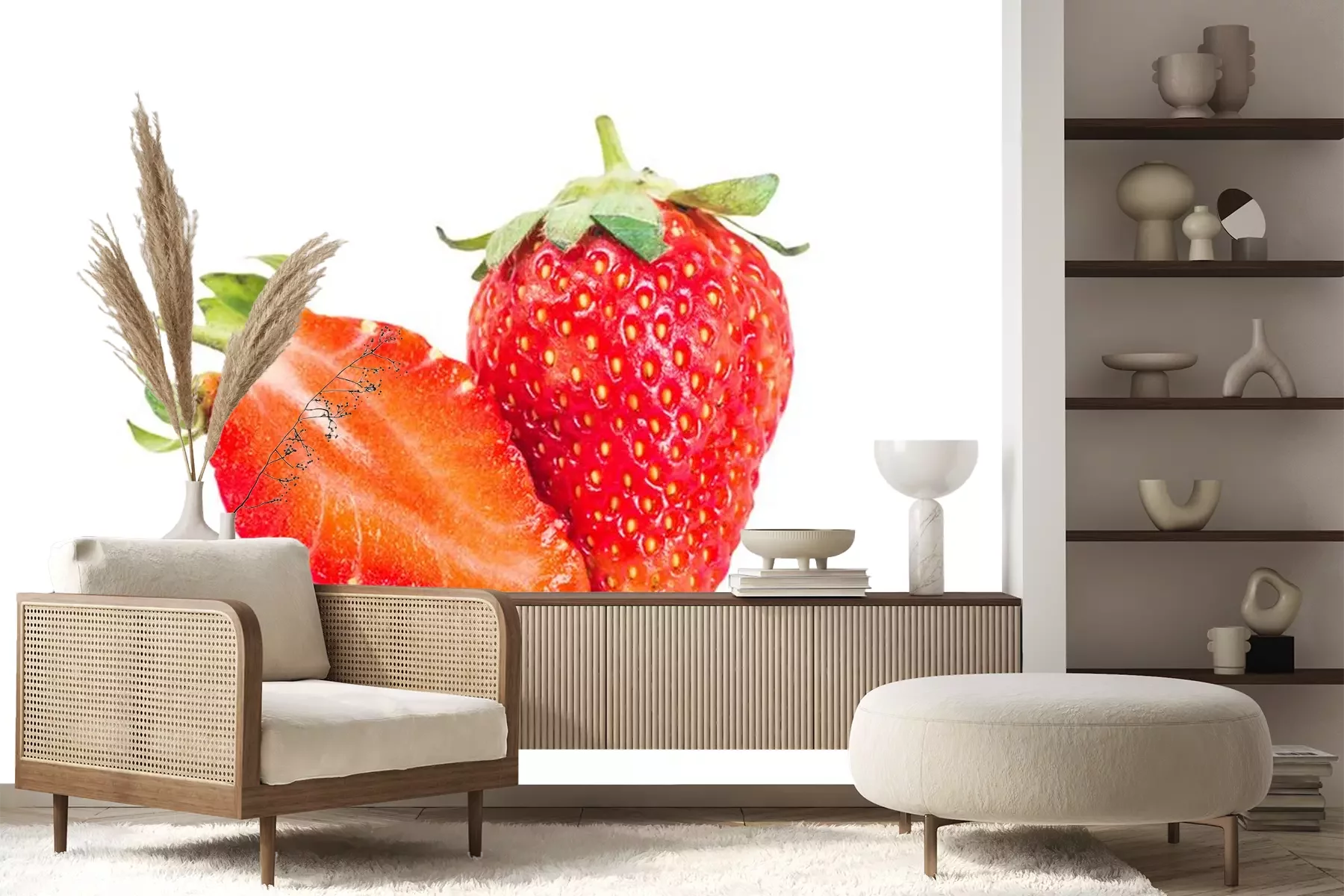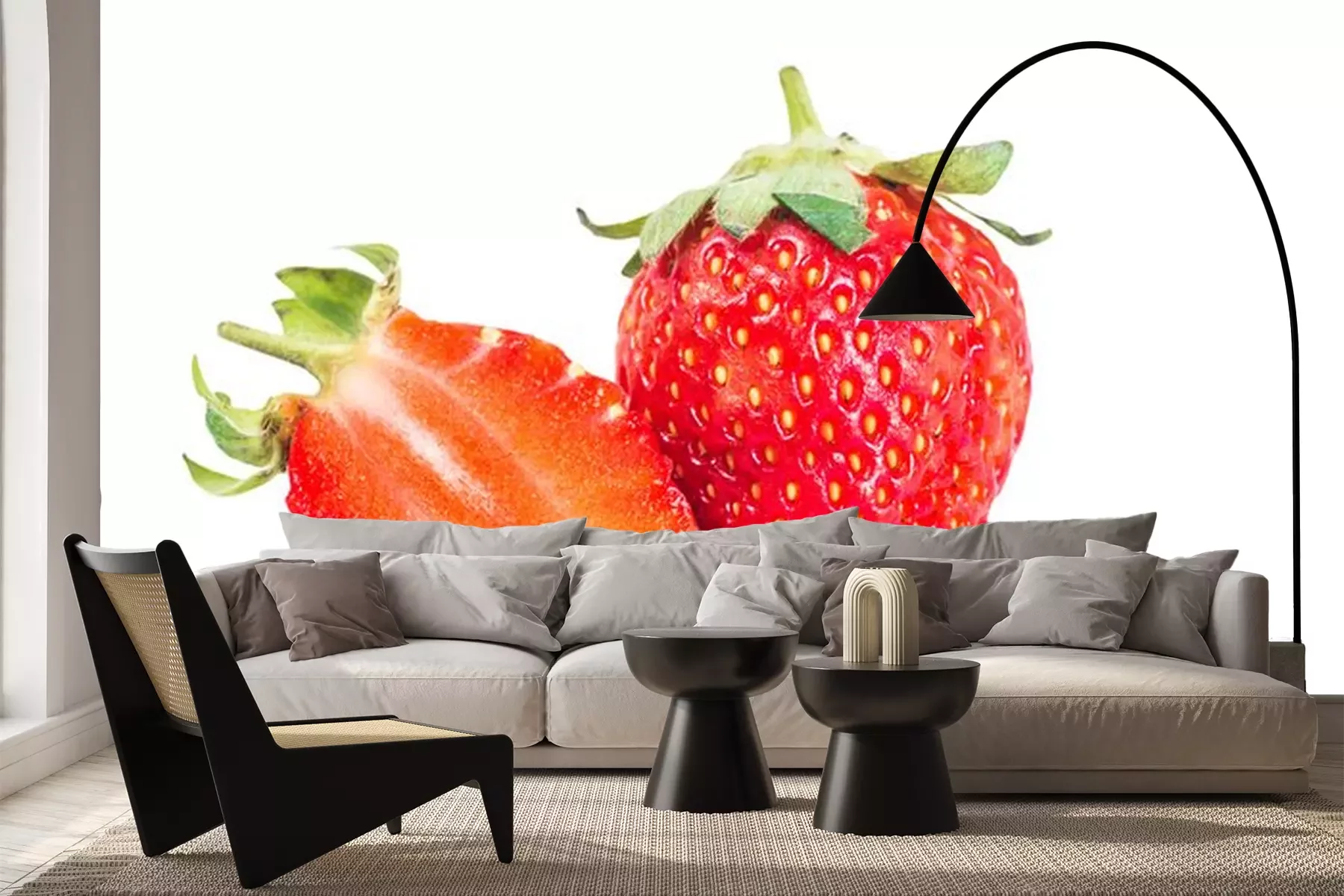 Sticker Erdbeeren frisch Foto auf weißem Hintergrund