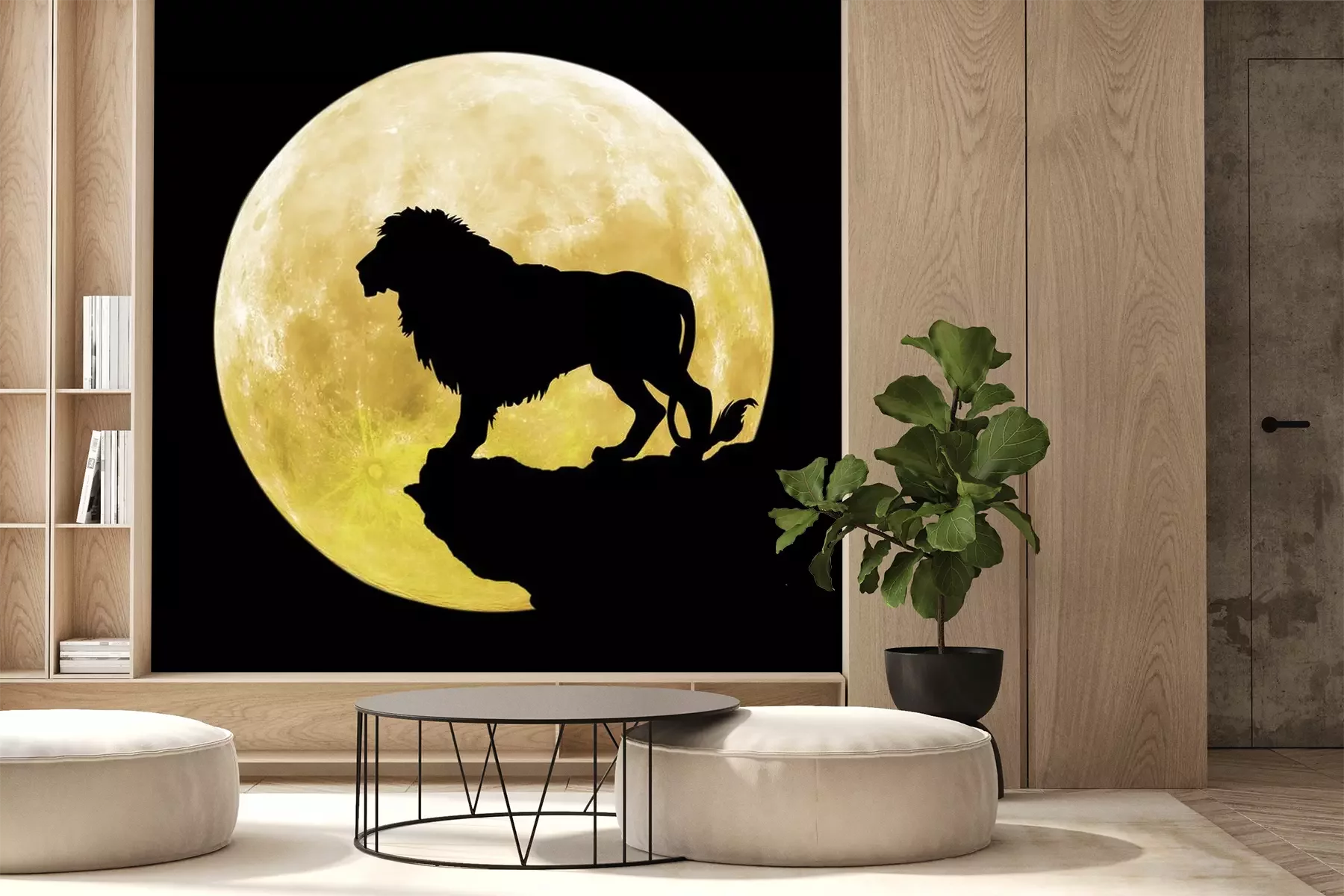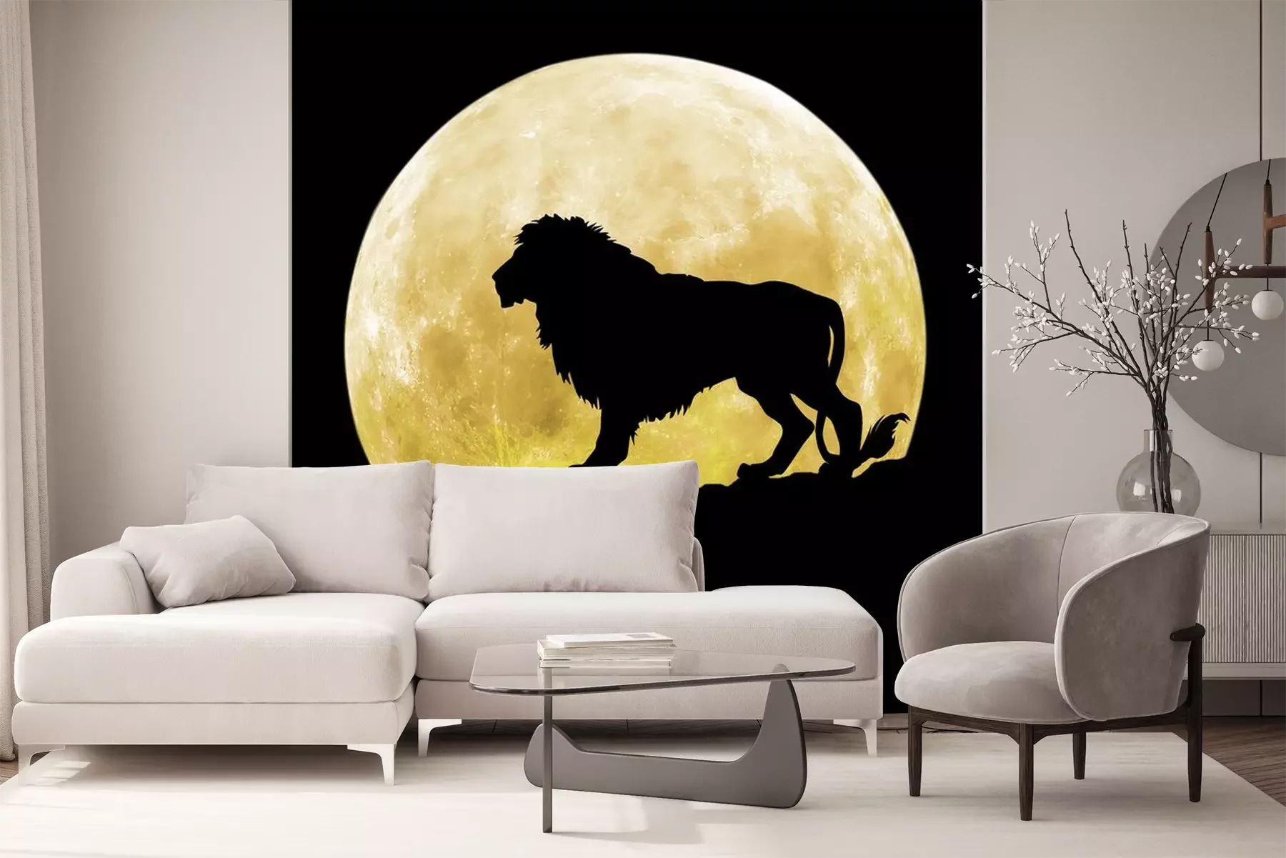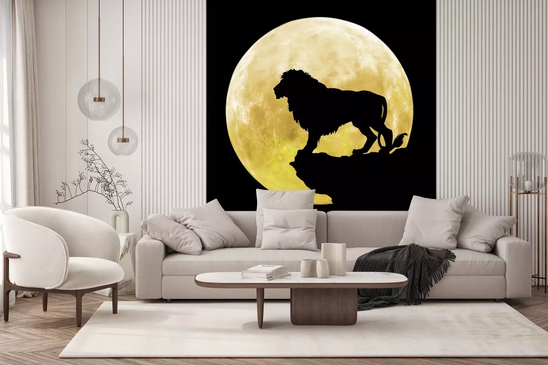 Sticker Erwachsener Löwe vor dem Hintergrund des Vollmondes