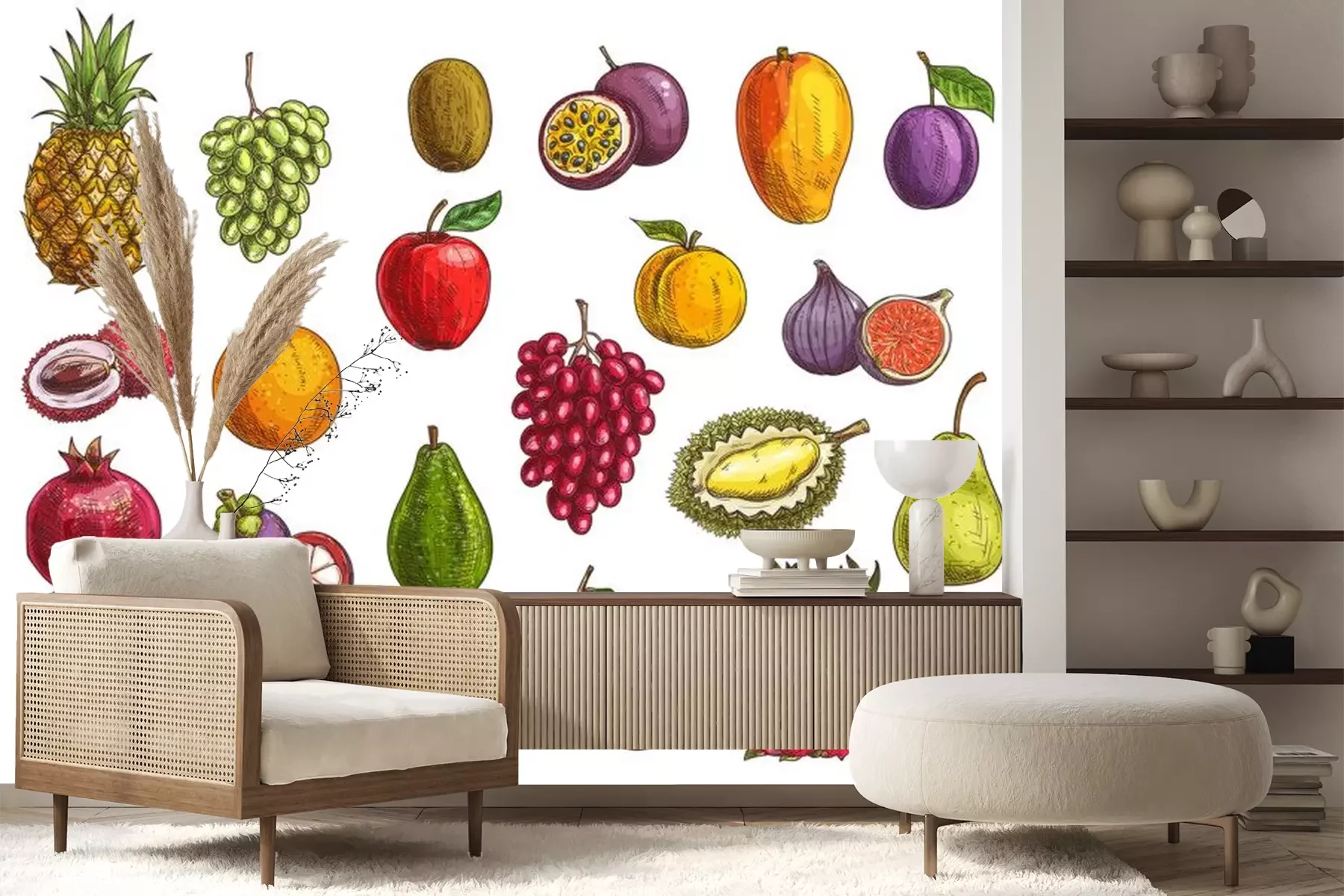 Sticker Exotische Früchte bunte Retro-Illustrationen