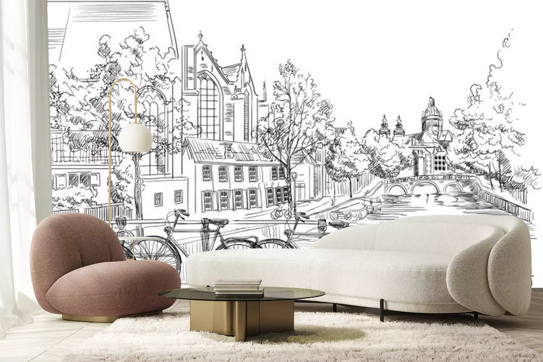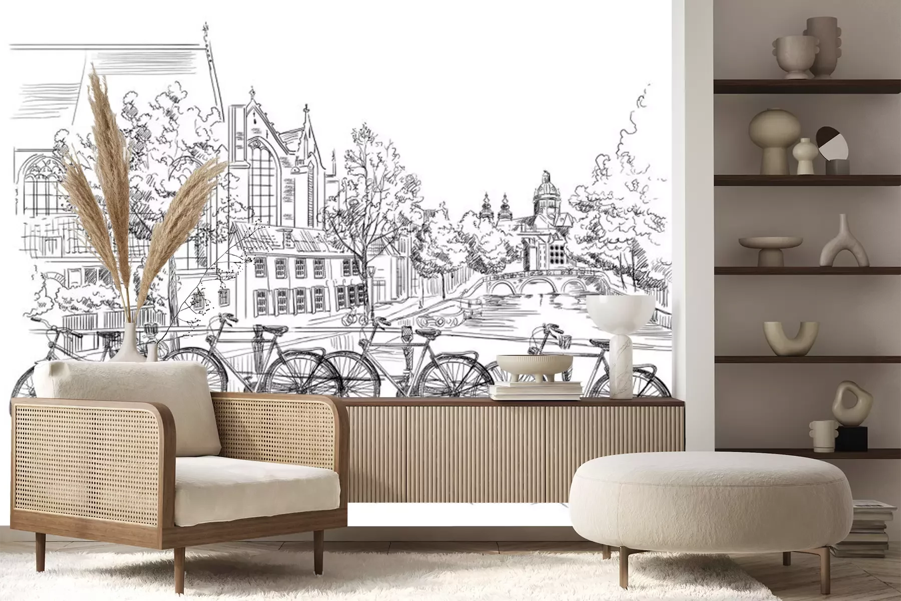 Sticker Fahrräder auf Brücke über den Kanälen von Amsterdam, die Niederlande