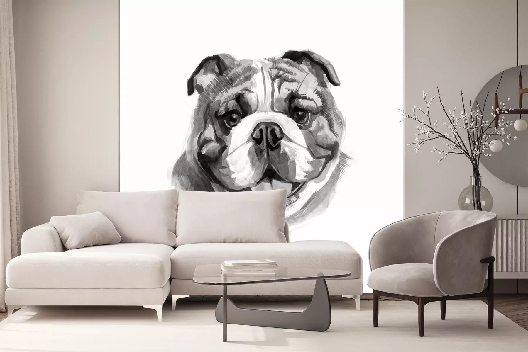 Sticker Farbige englische Bulldogs Kopf. Aquarellbild.