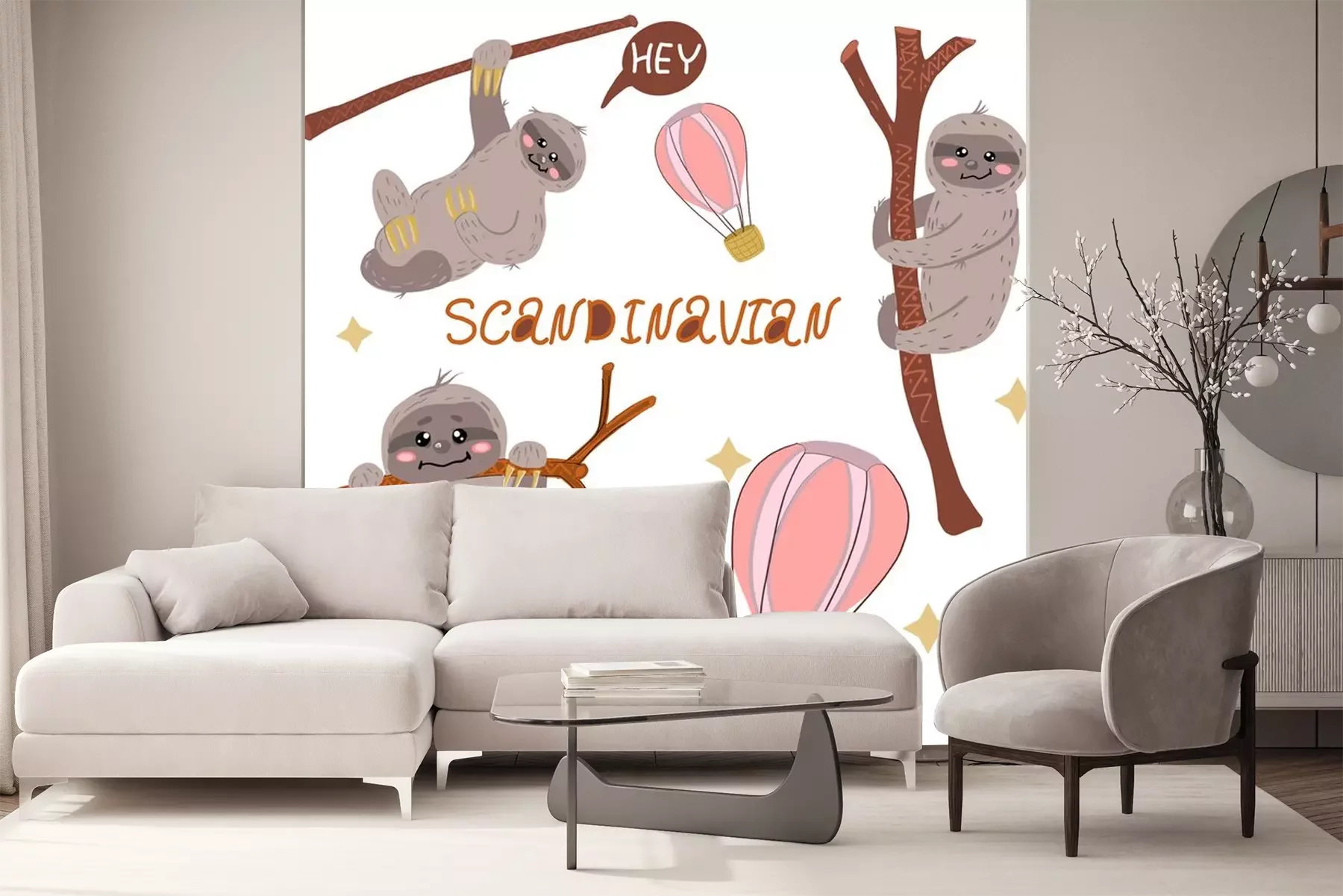 Sticker Faultier und Luftballons nach skandinavischer Art