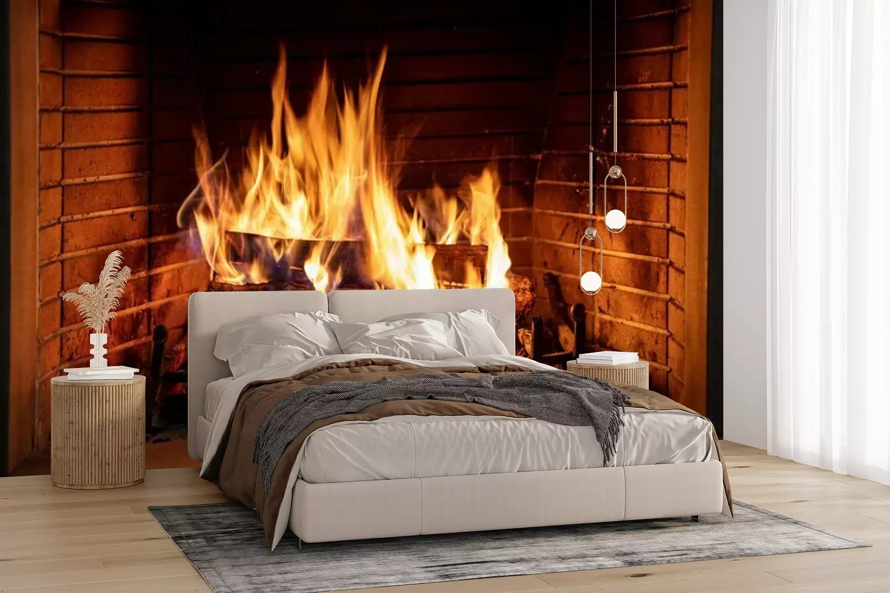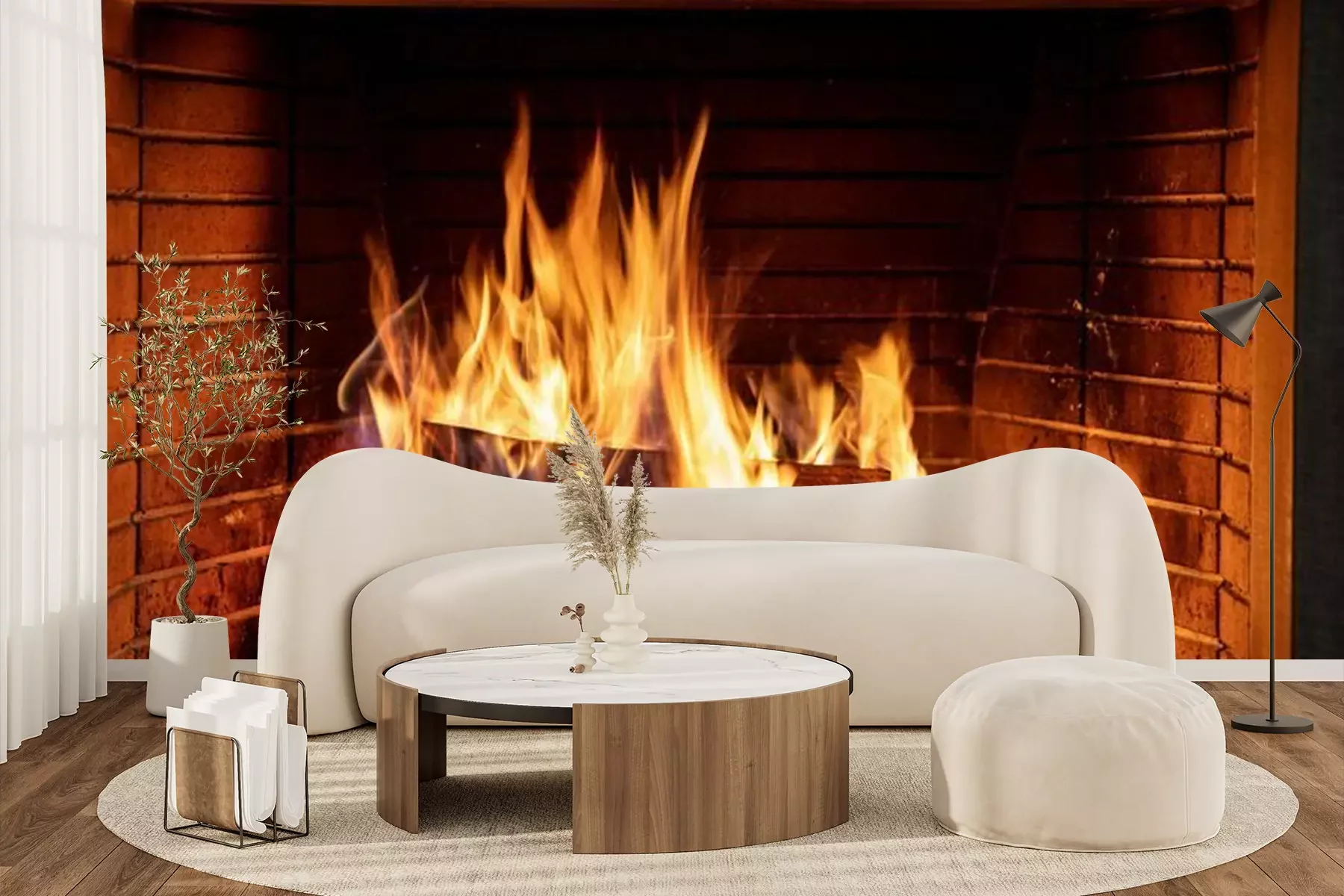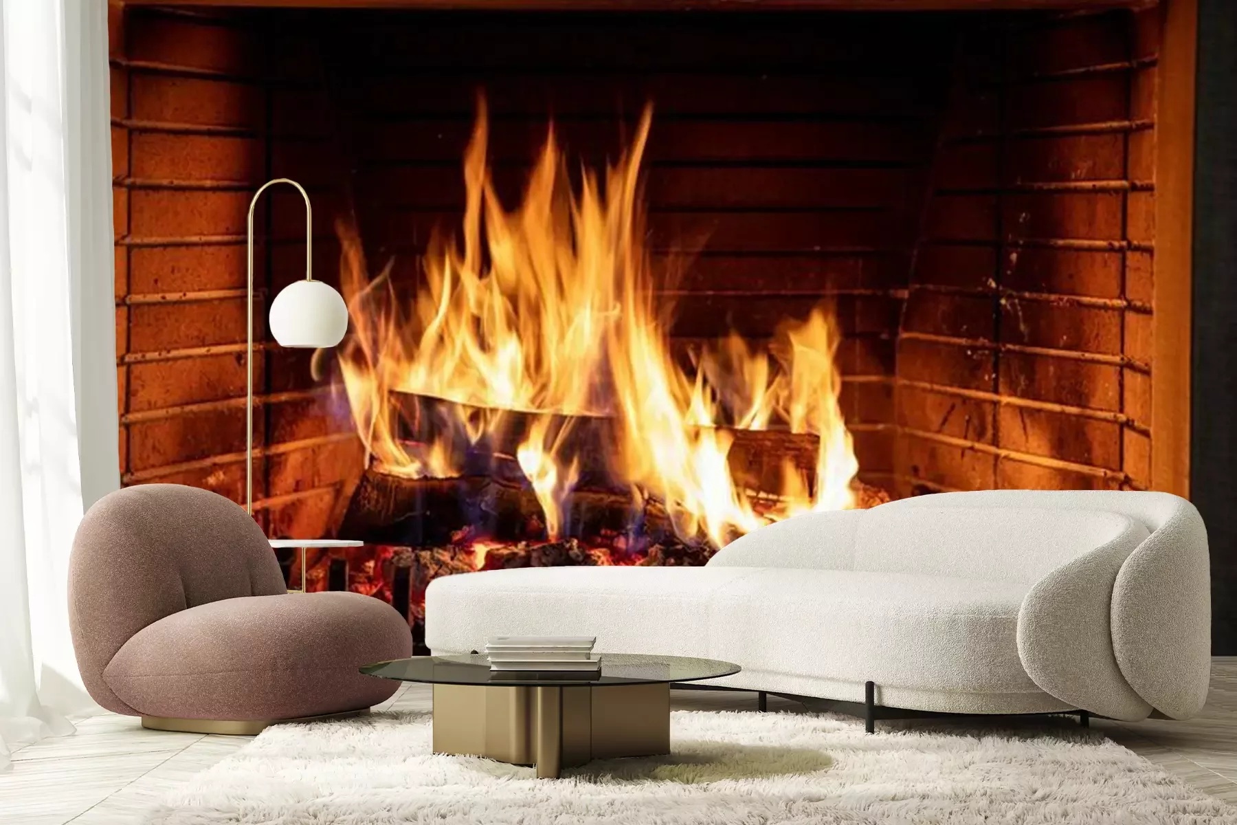 Protokolle in einem Kamin brennenFototapete