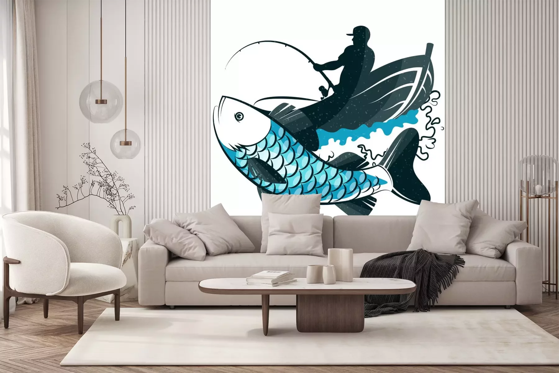 Sticker Fische Anglerschatten und Fisch mit blauen Schuppen