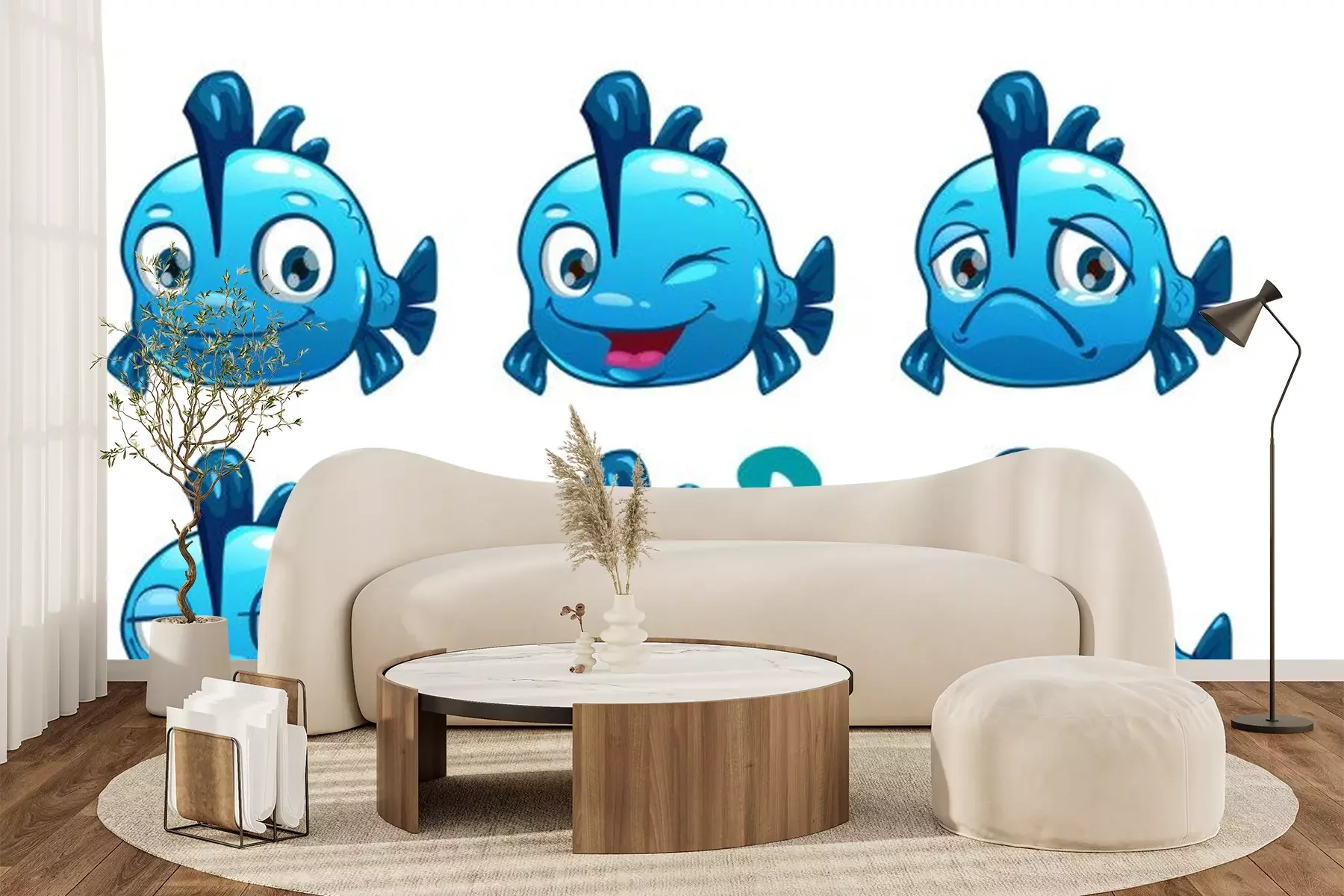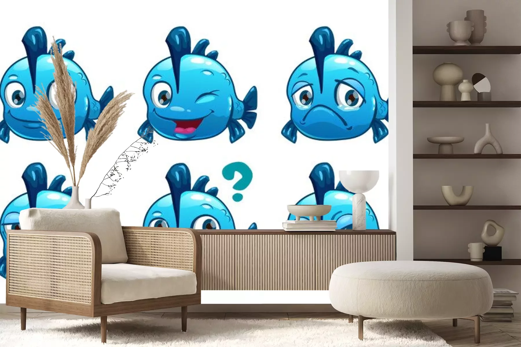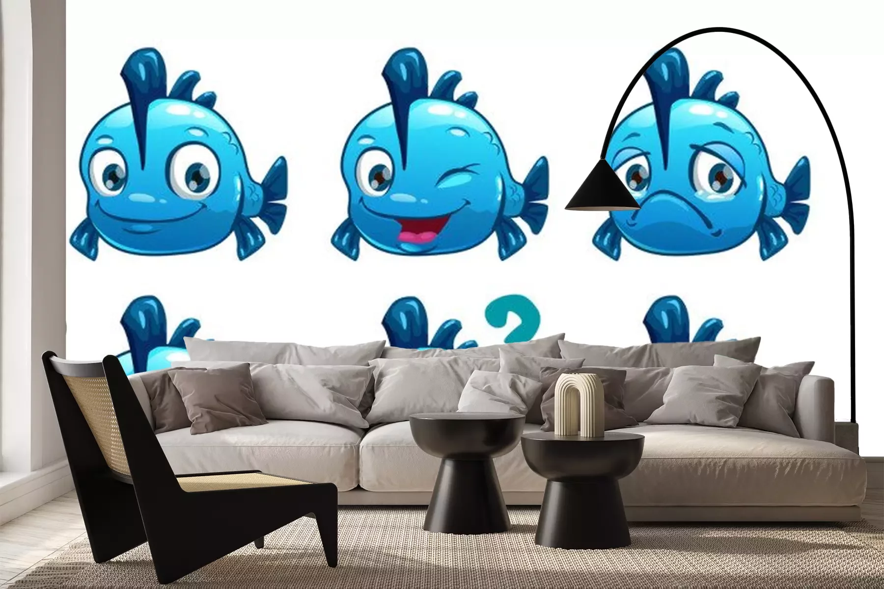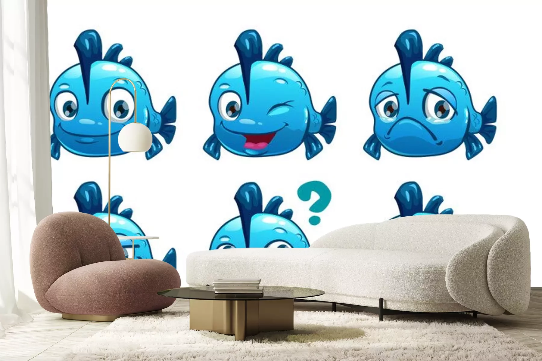 Sticker Fische blauer Fisch mit Flosse auf dem Rücken macht Gesichter