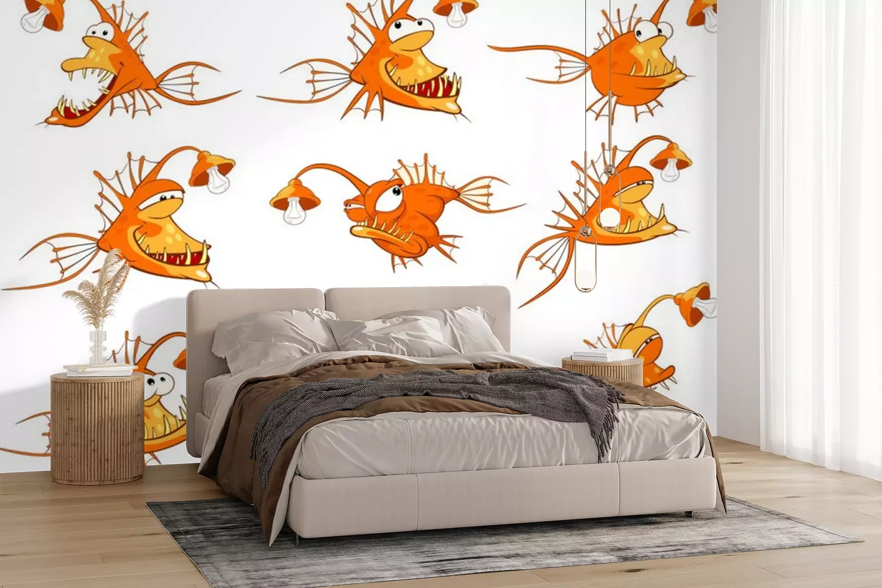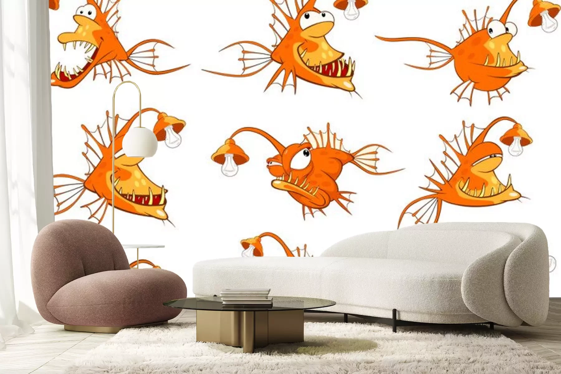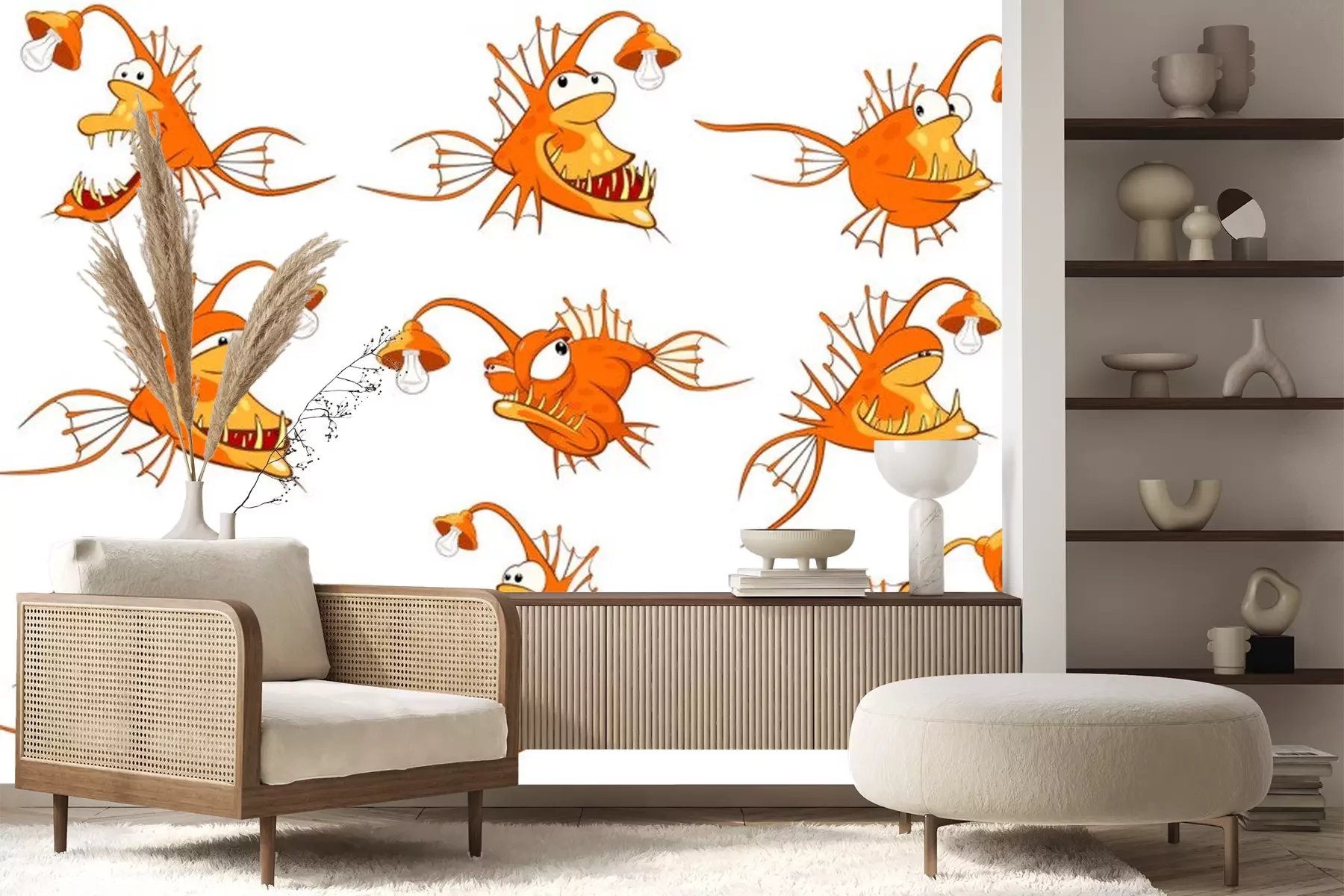 Sticker Fische Ozean Cartoon Fisch aus der Tiefe mit scharfen Zähnen