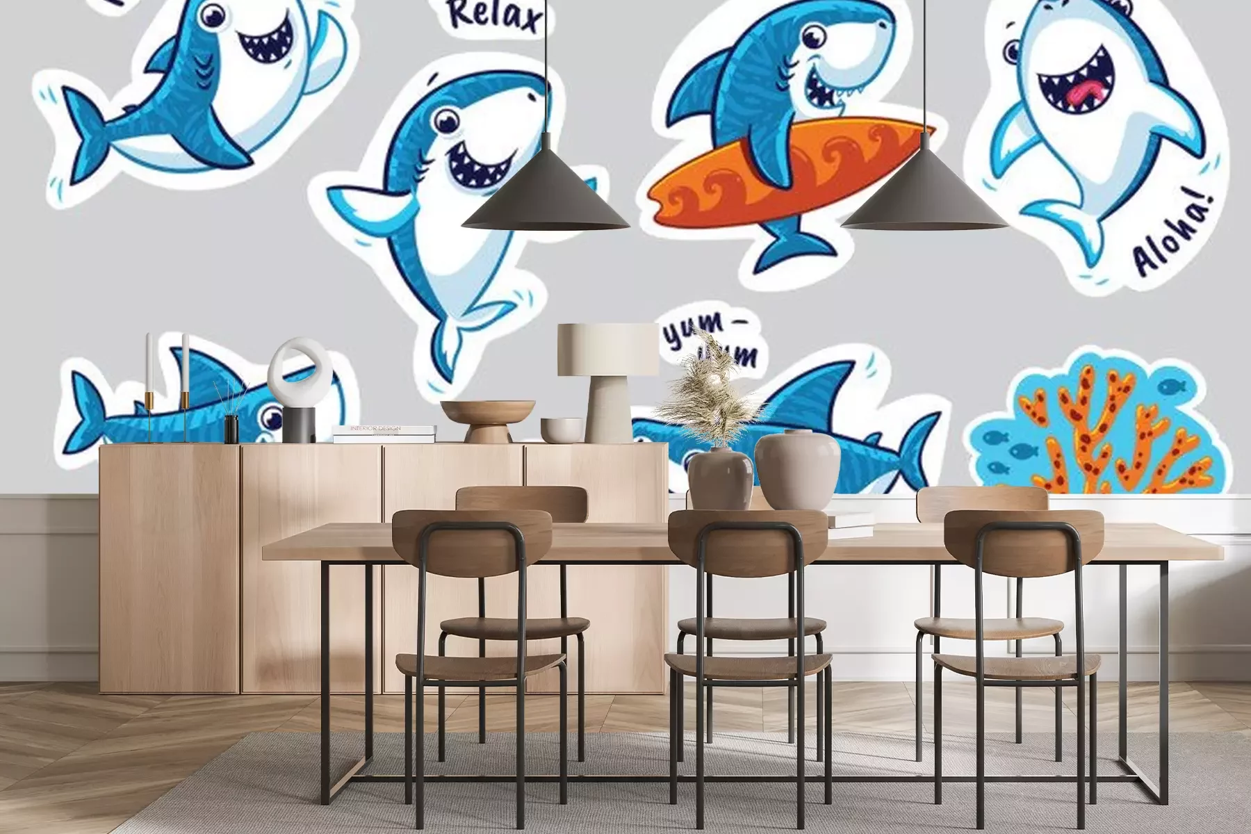 Sticker Fische Ozean lustiger blauer Hai