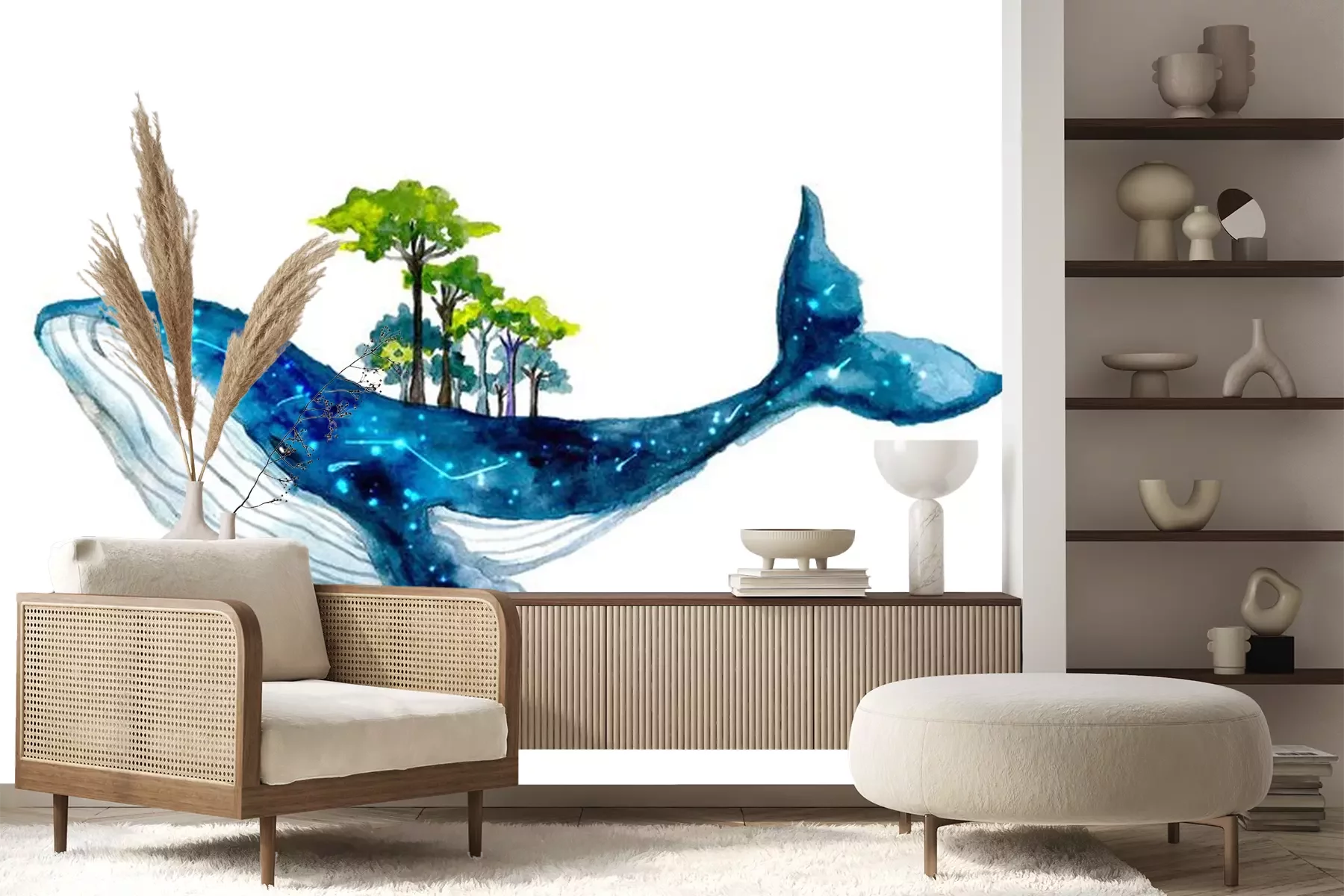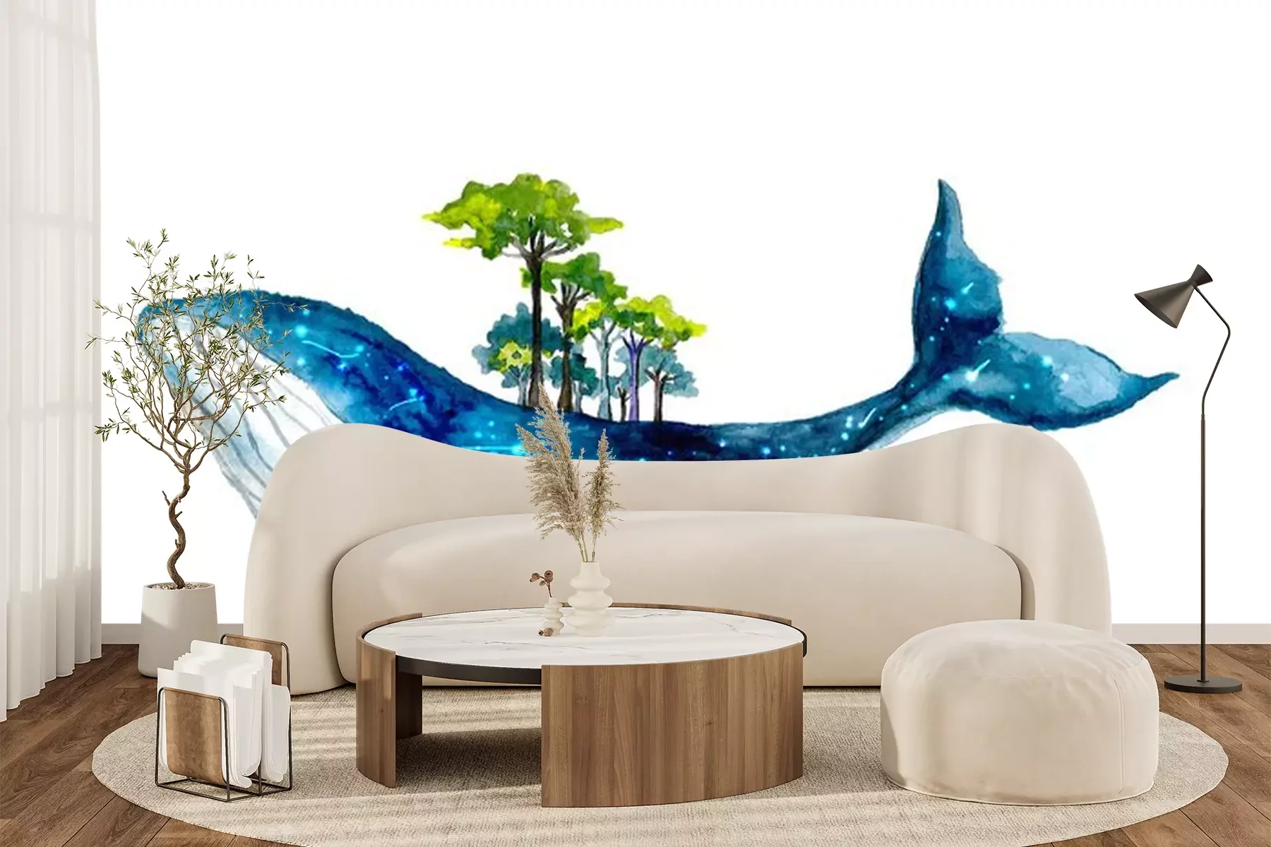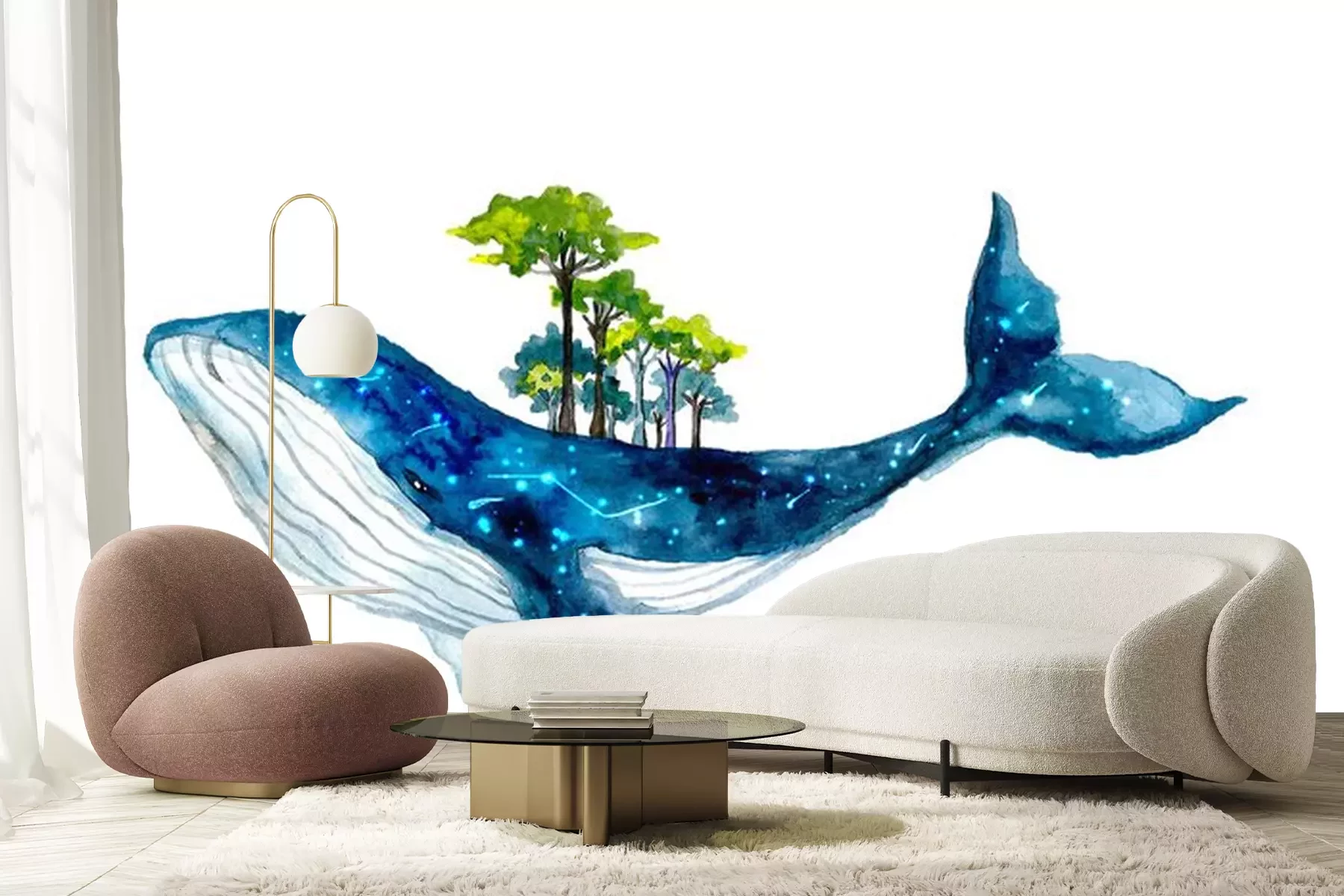 Sticker Fische, Ozean Wal und darauf wachsende Bäume