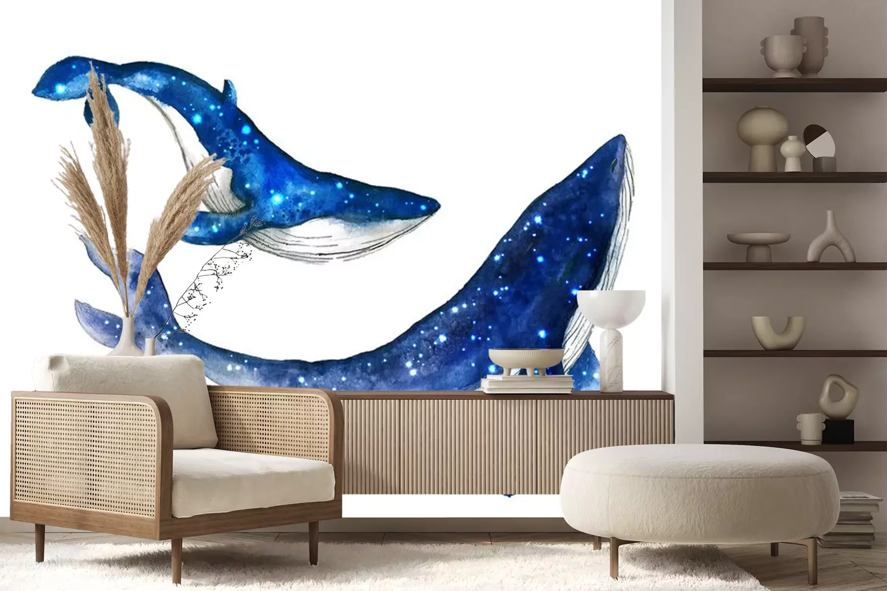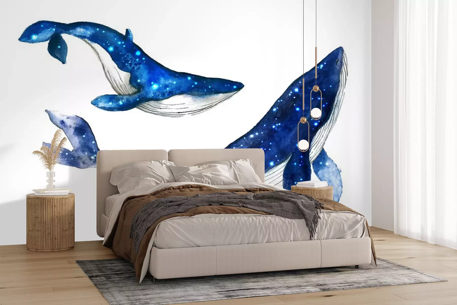 Sticker Fische Ozean Wale und Seesterne Reflexionen Aquarell