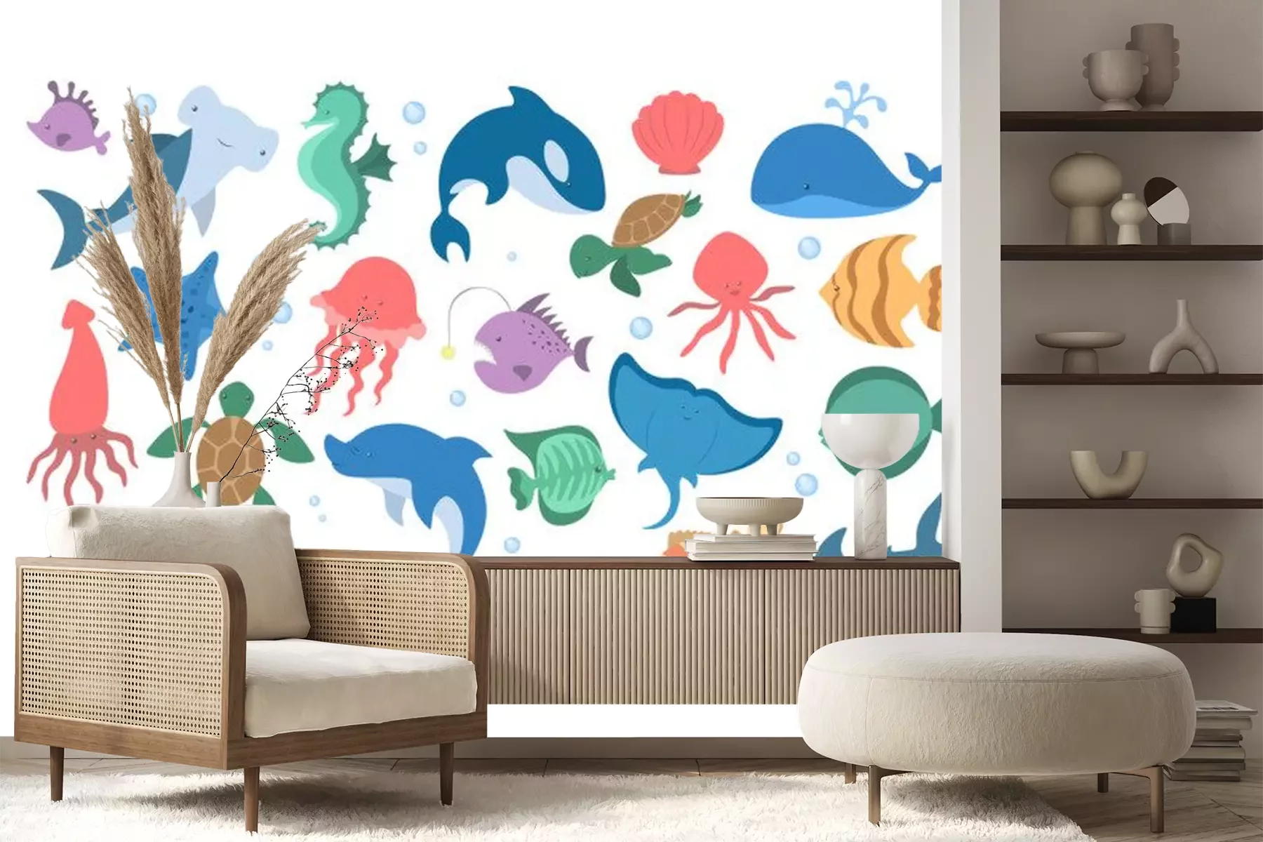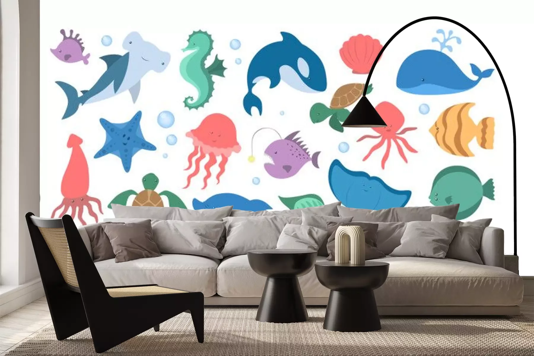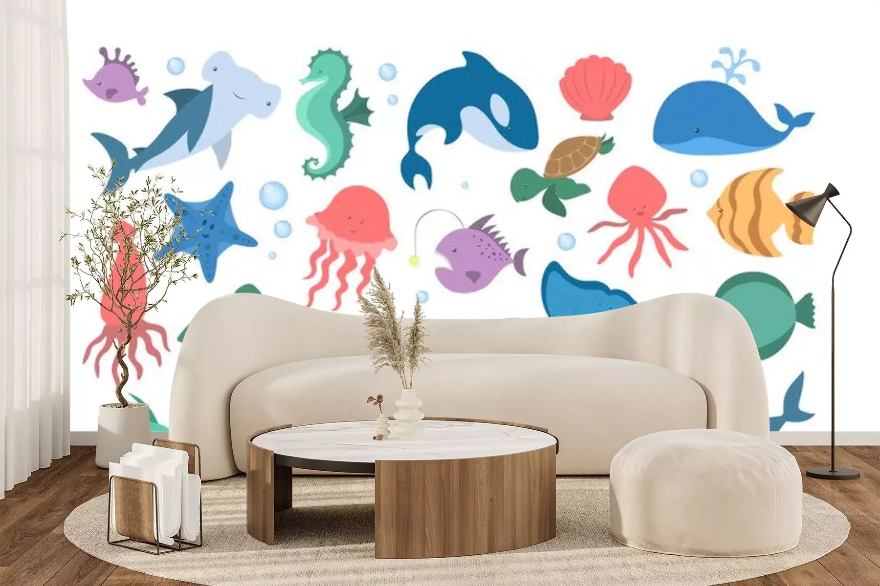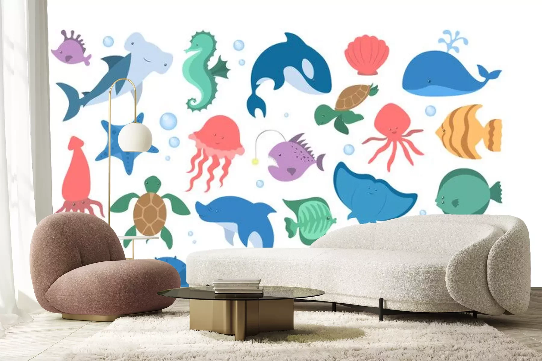 Sticker Fische und Seesterne im sprudelnden Wasser