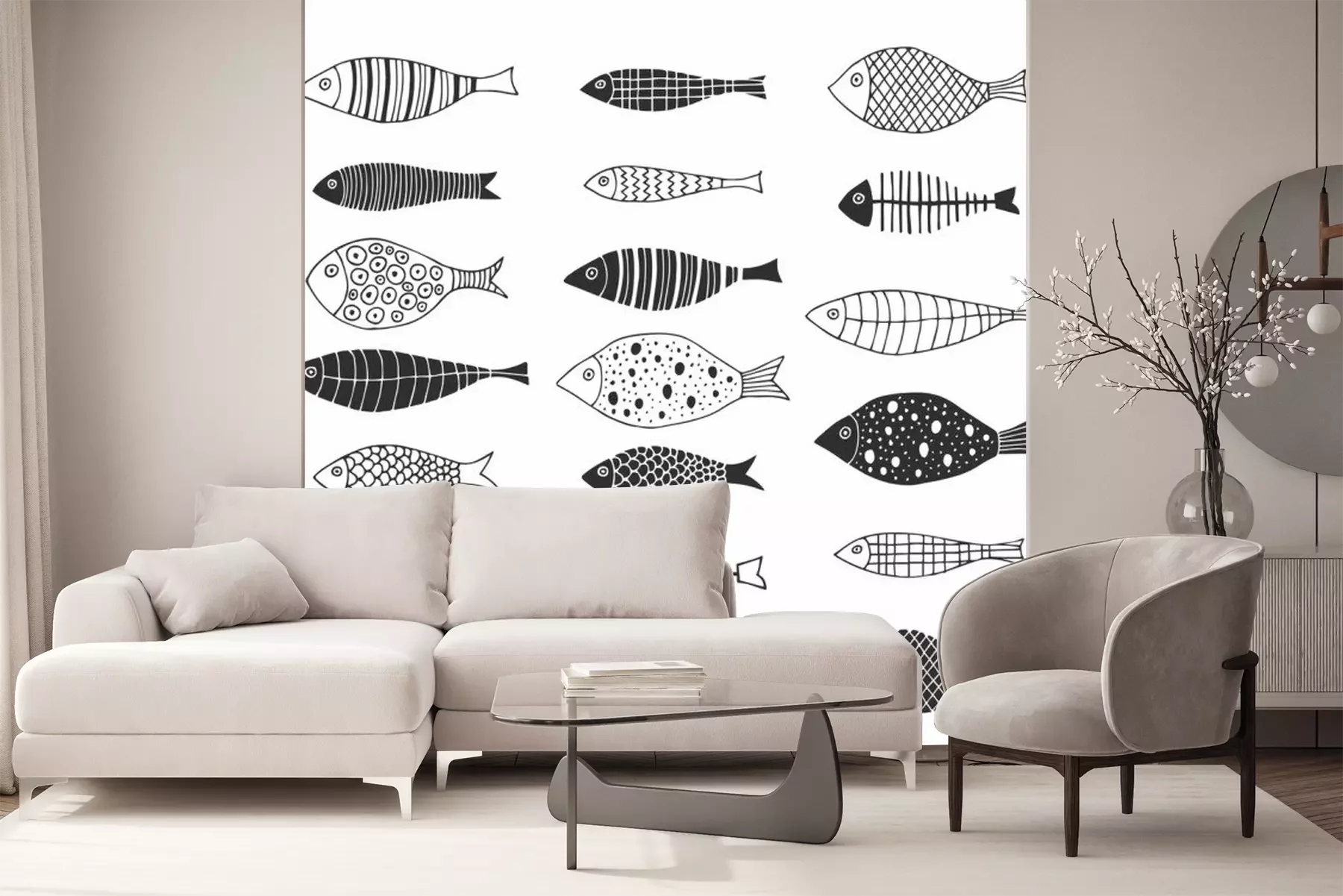 Sticker Fischskelette und Fische in schwarz-weißem Muster