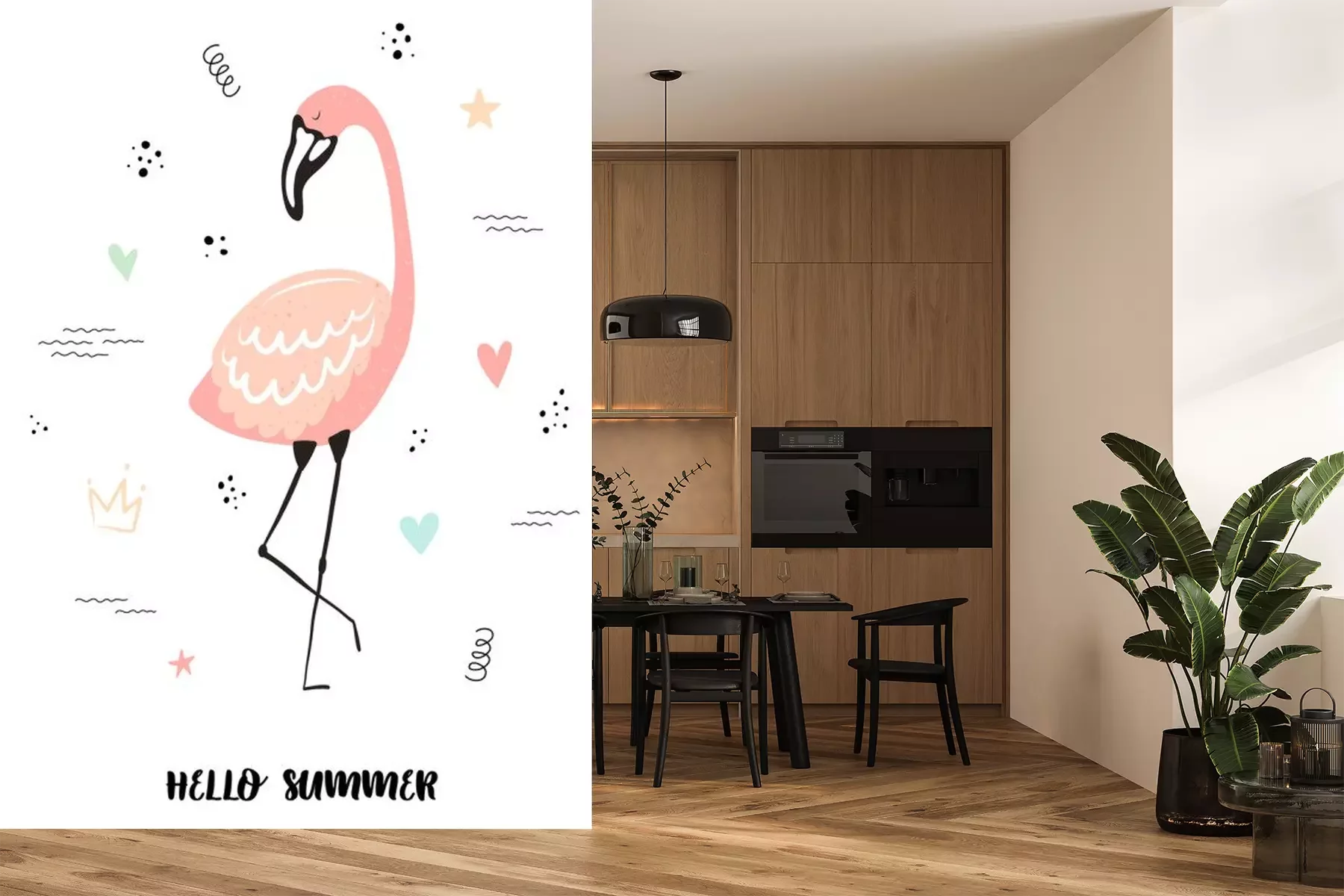 Flamingo mit FensterblattSticker