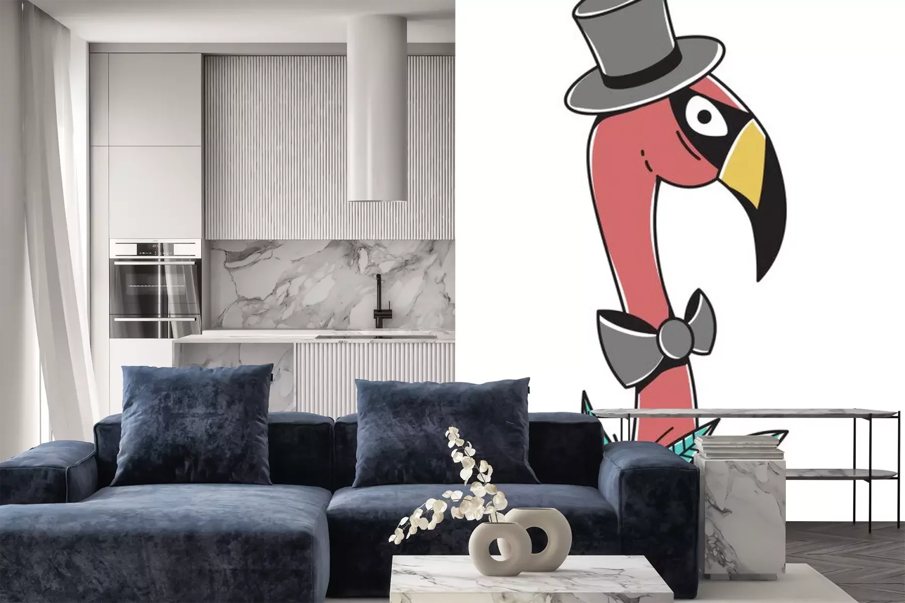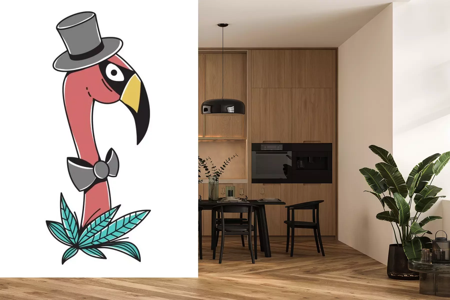 Sticker Flamingo im eleganten Zylinder