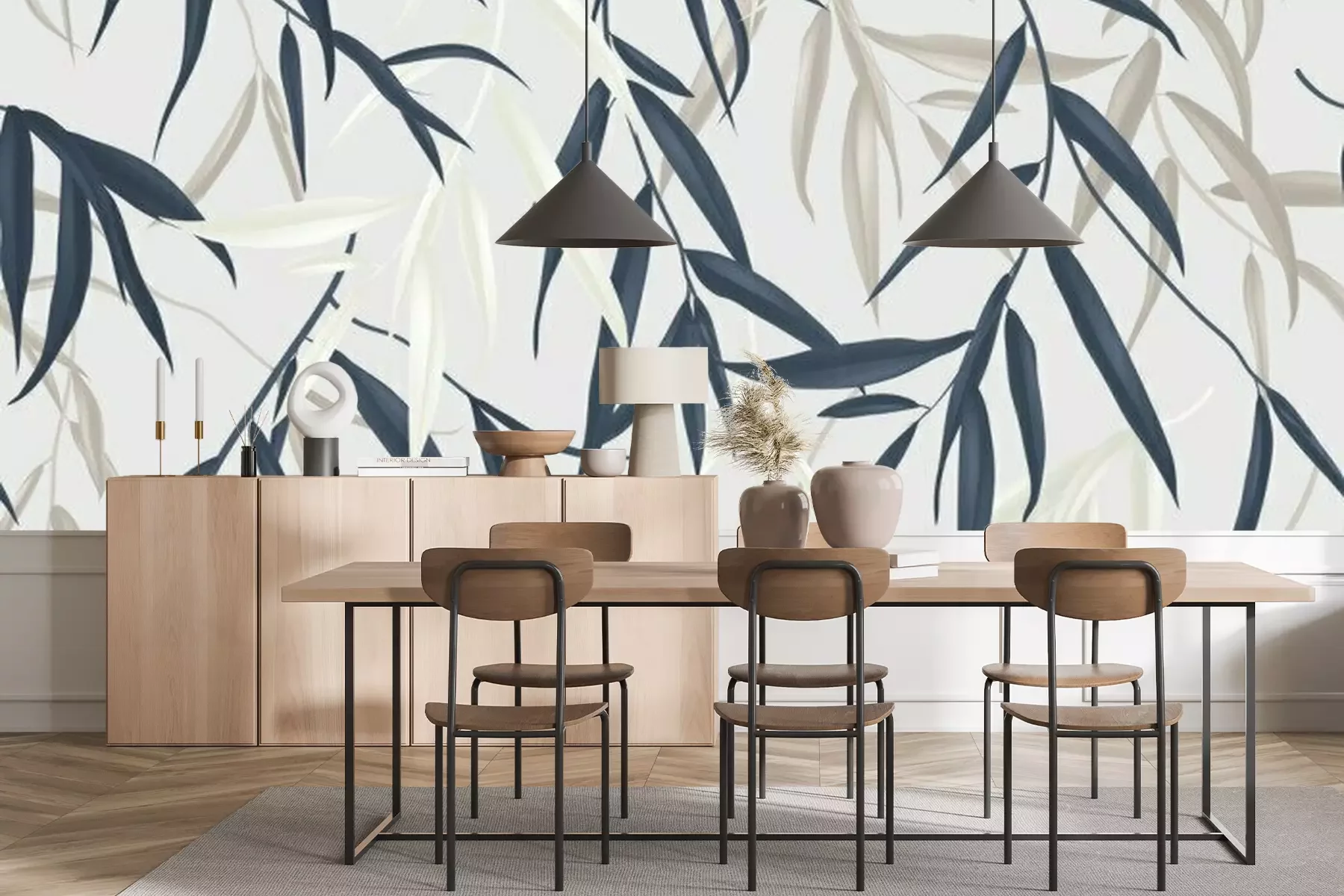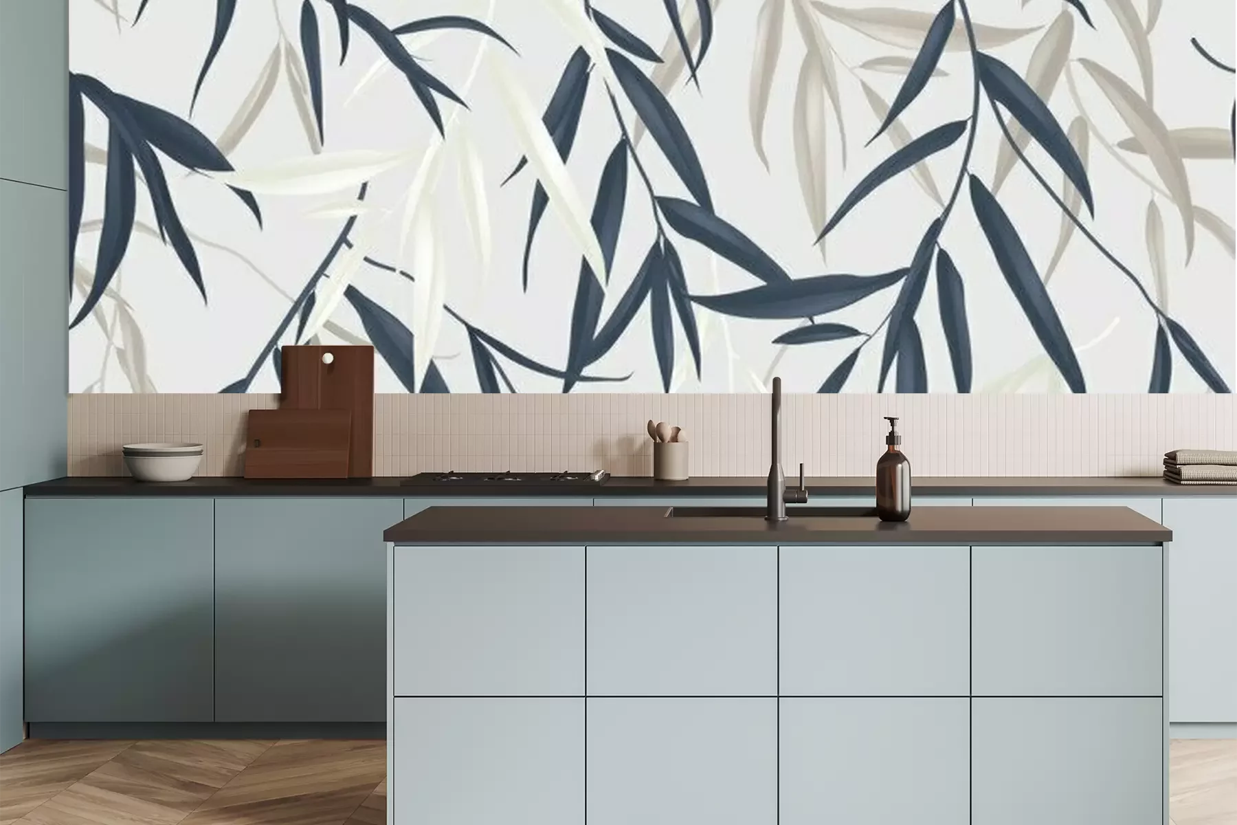Sticker Floral seamless pattern, multicolored Weeping Willow leaves on light grey background