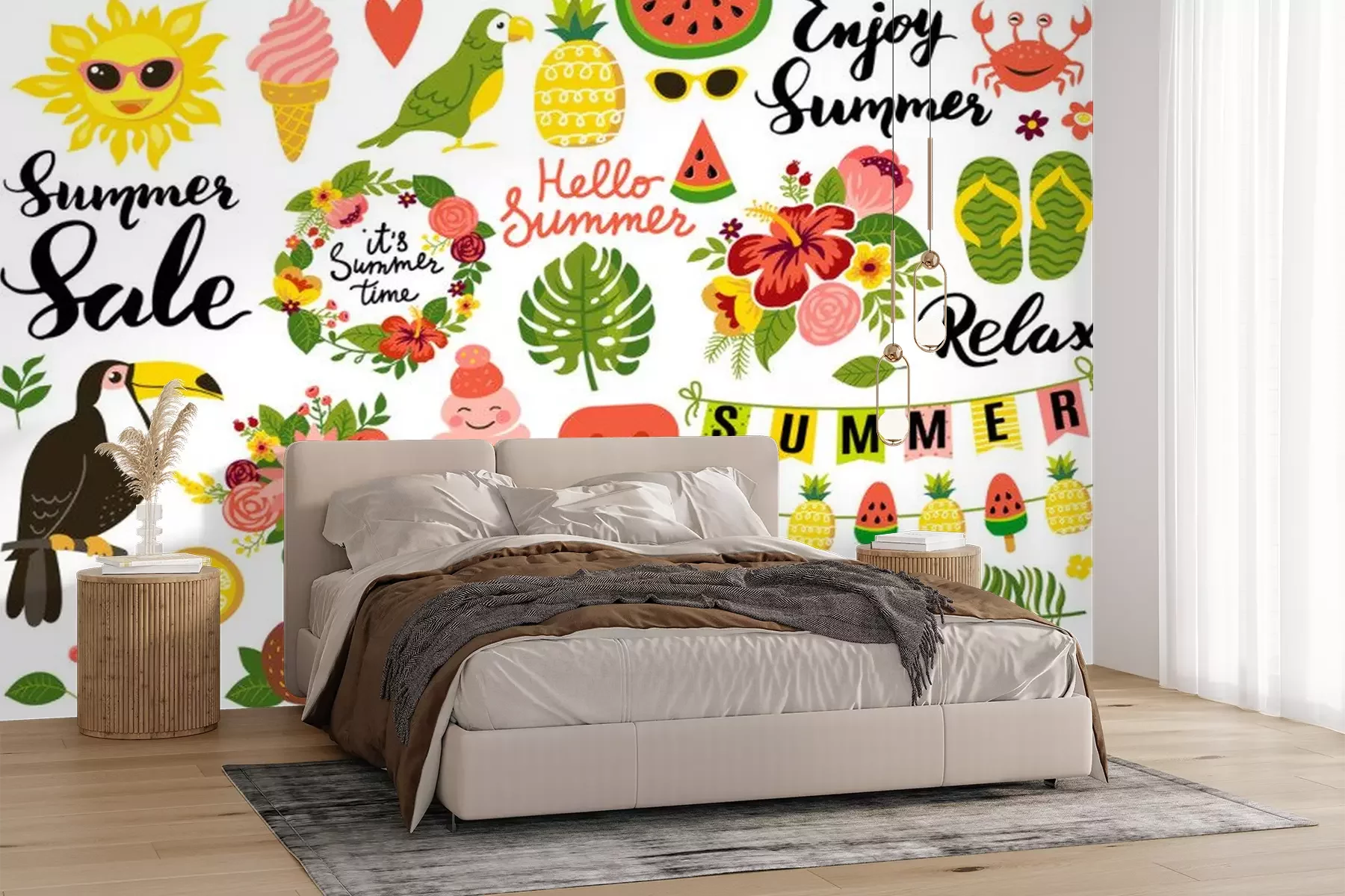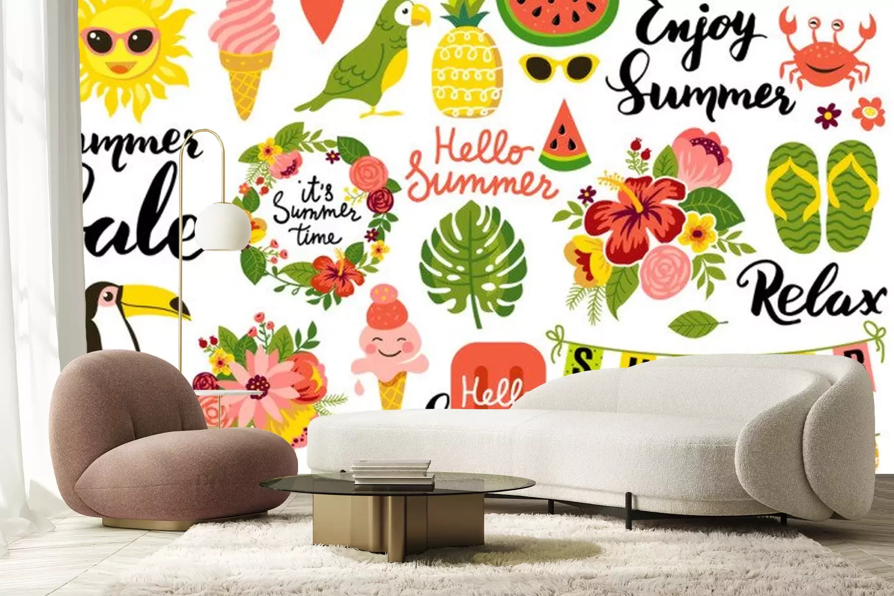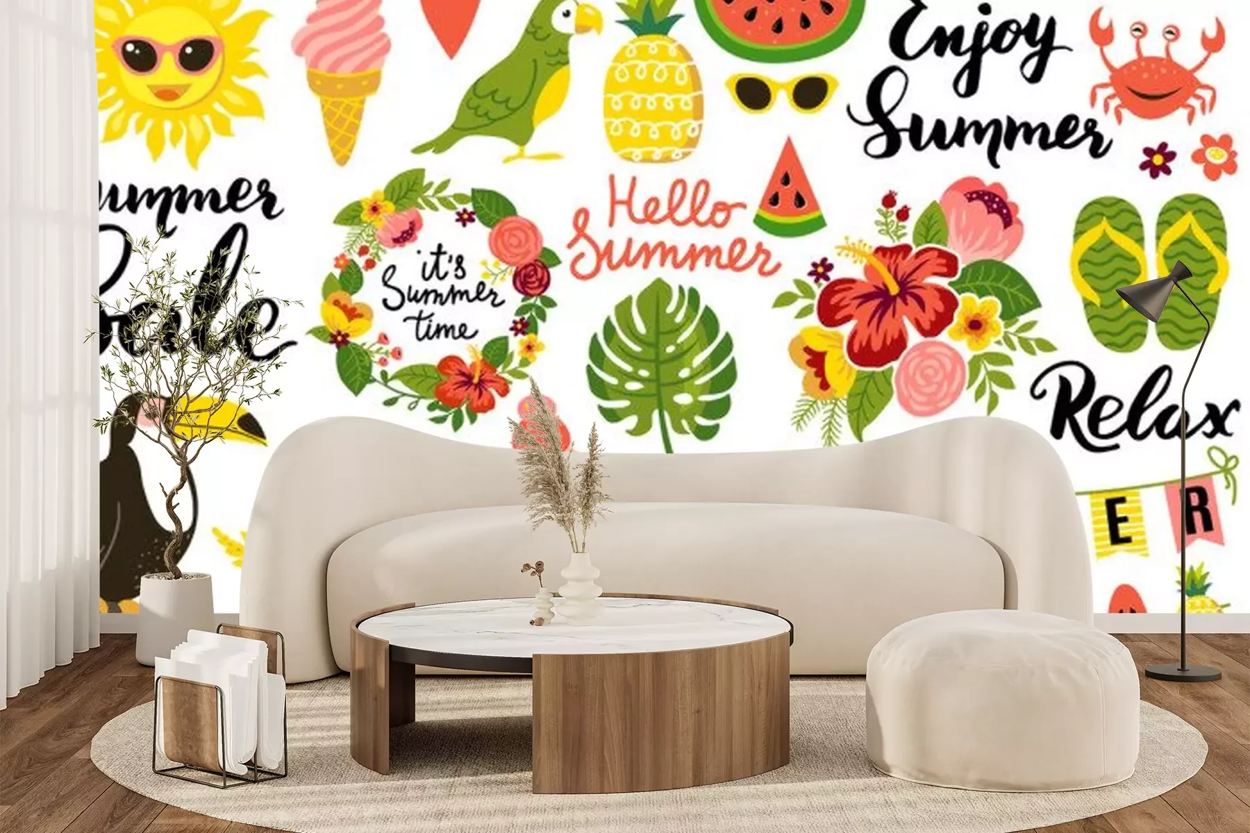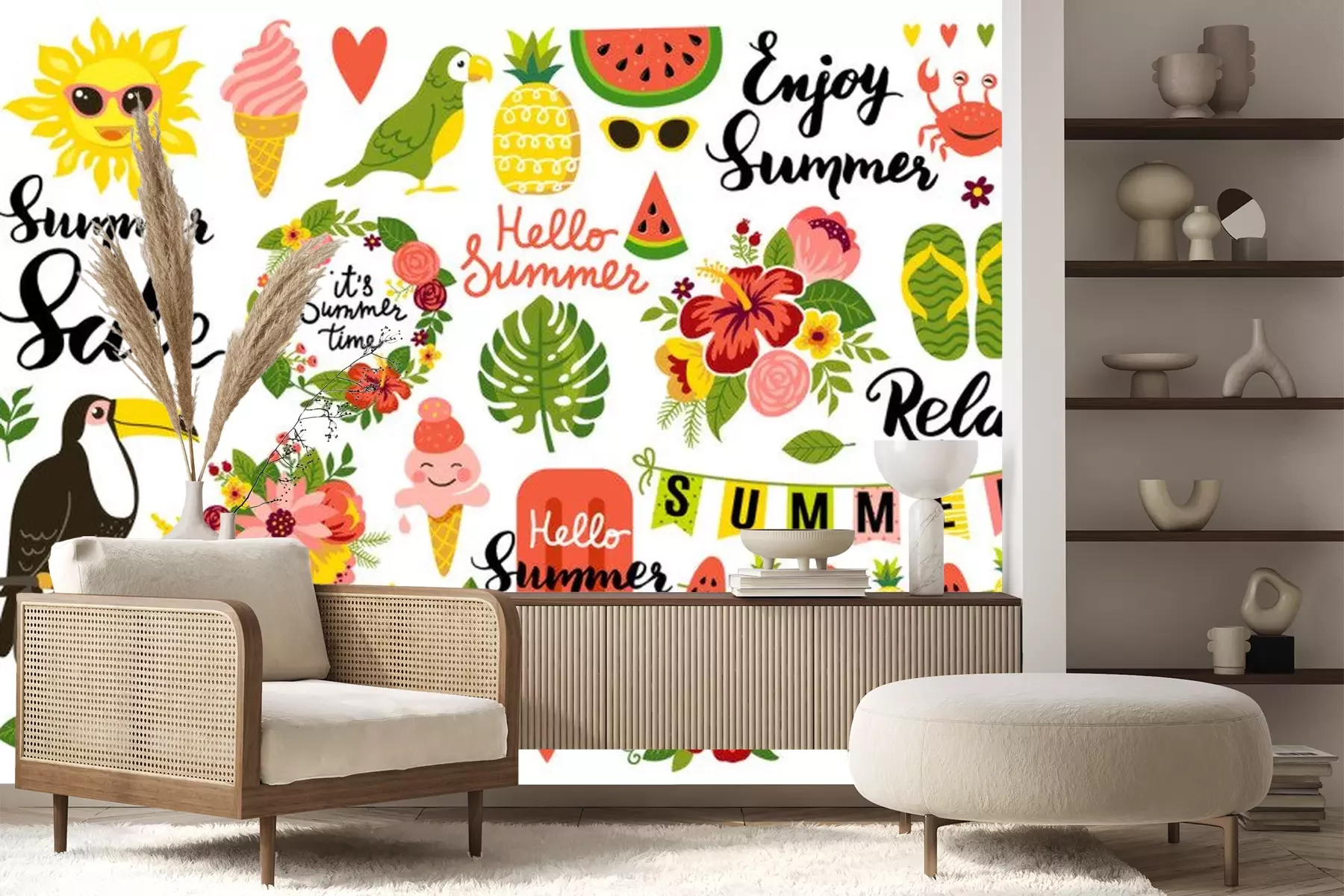 Sticker Fröhliche tropische Grafiken im Urlaubsgeiste