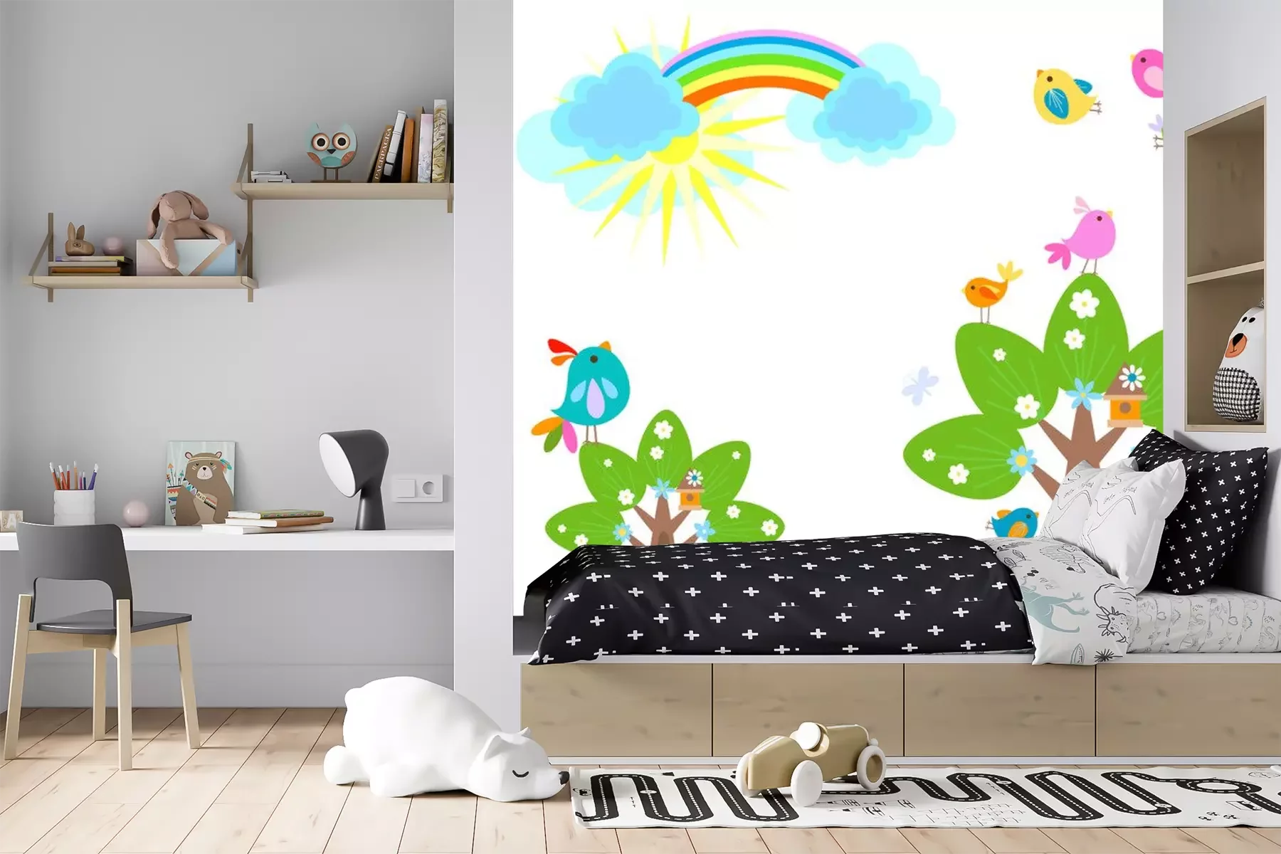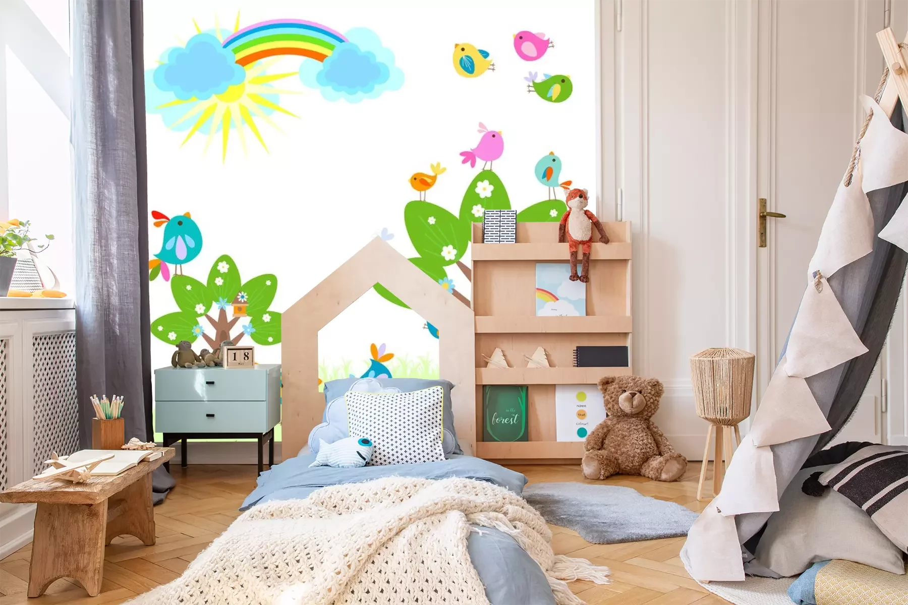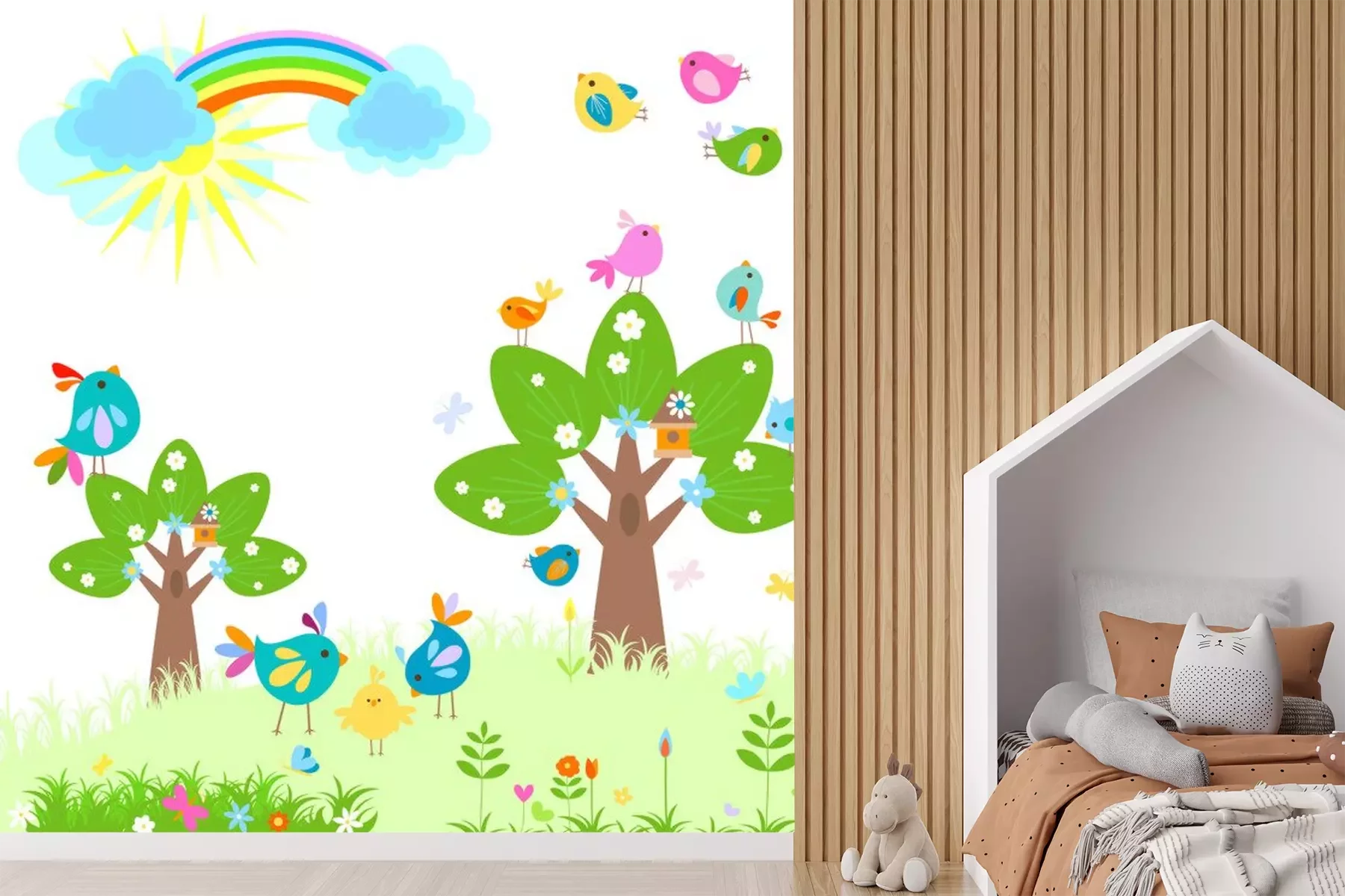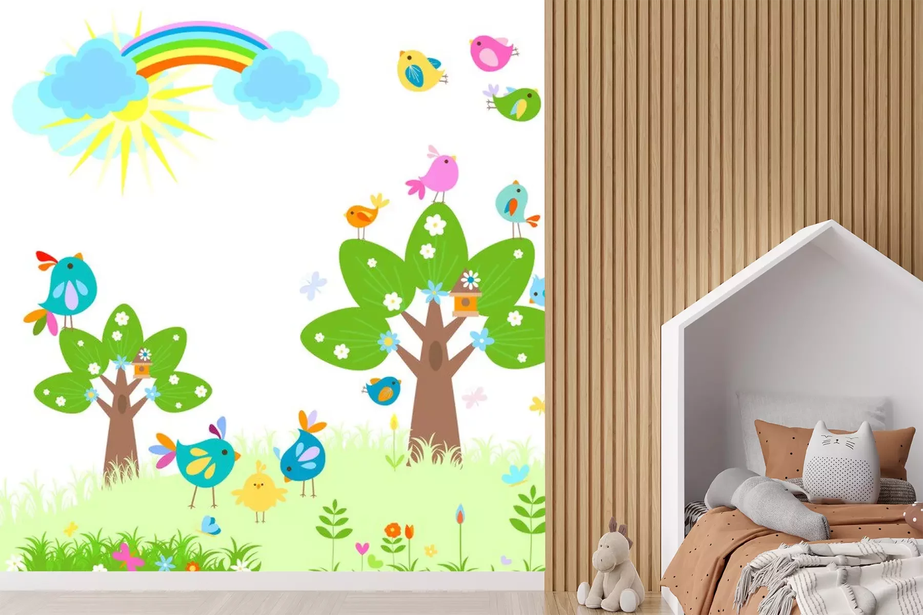 Sticker Frühling mit Regenbogen