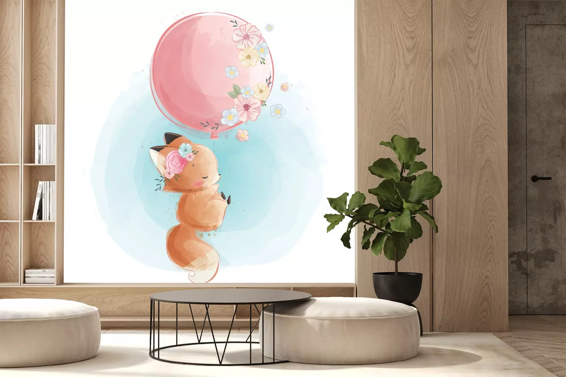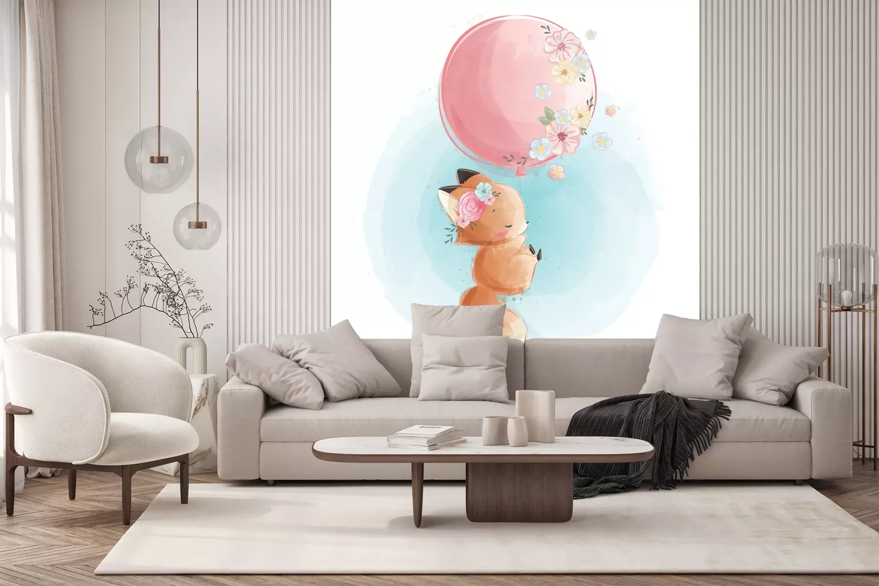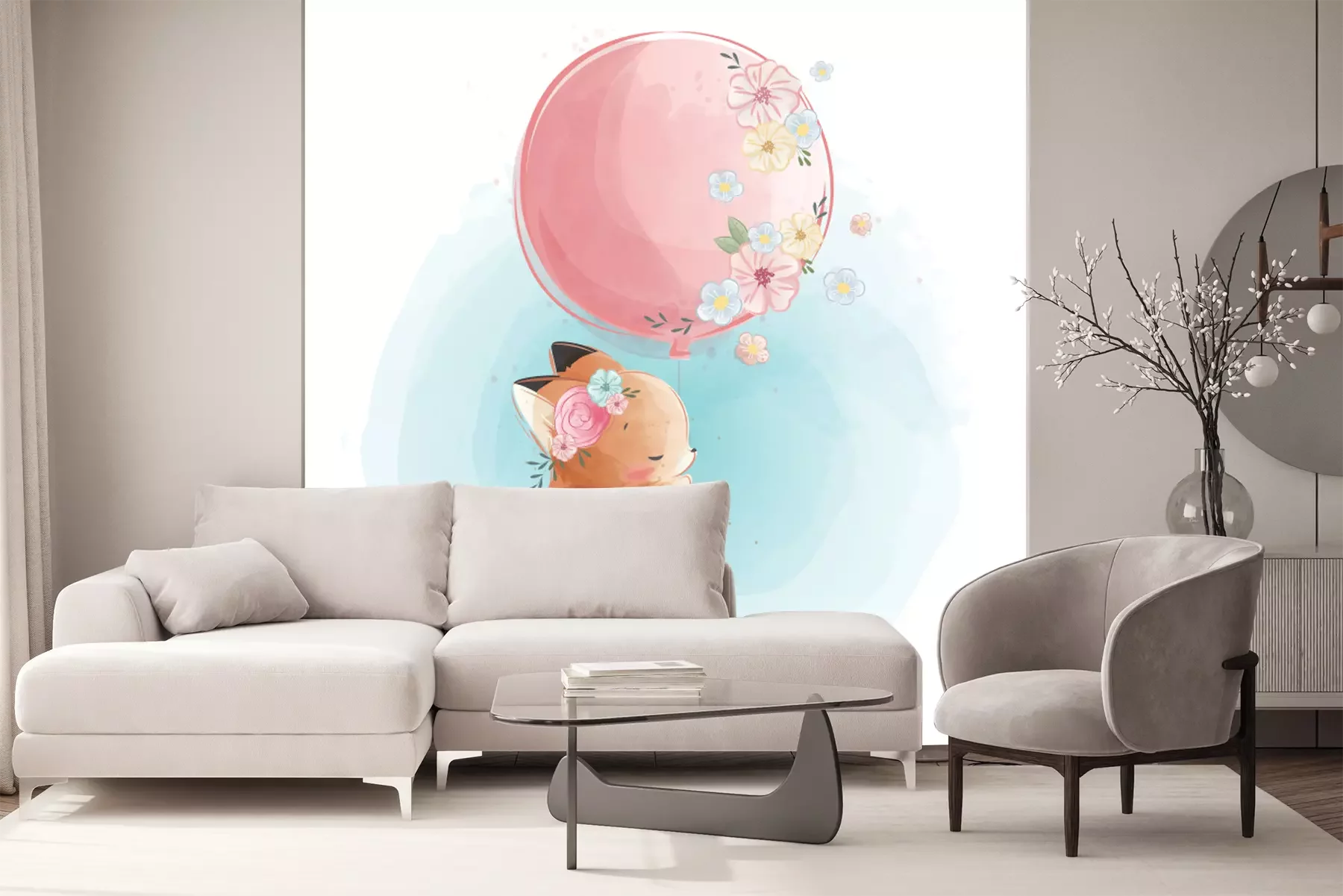 Sticker Fuchs Aquarell und rosa Luftballon mit Blumen verziert