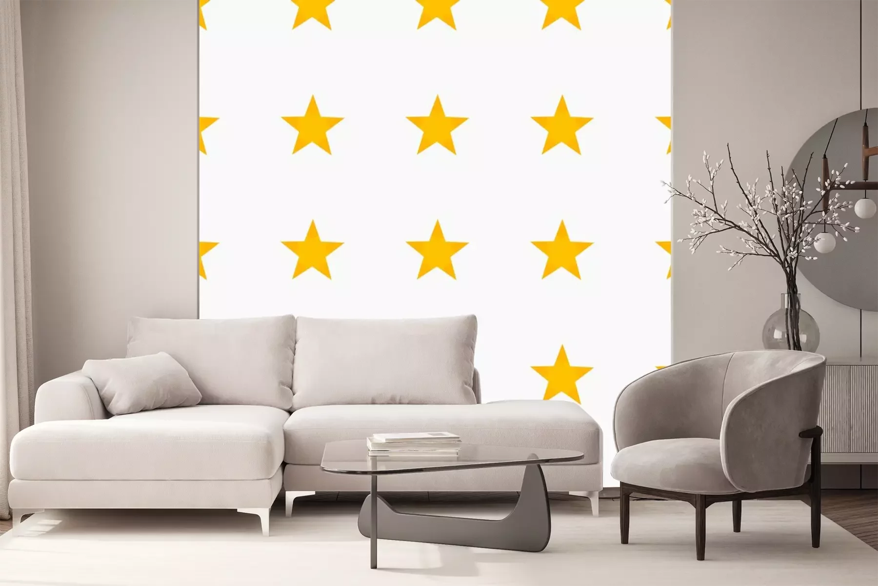Sticker Fünfzackige gelbe Sterne auf weißem Hintergrund
