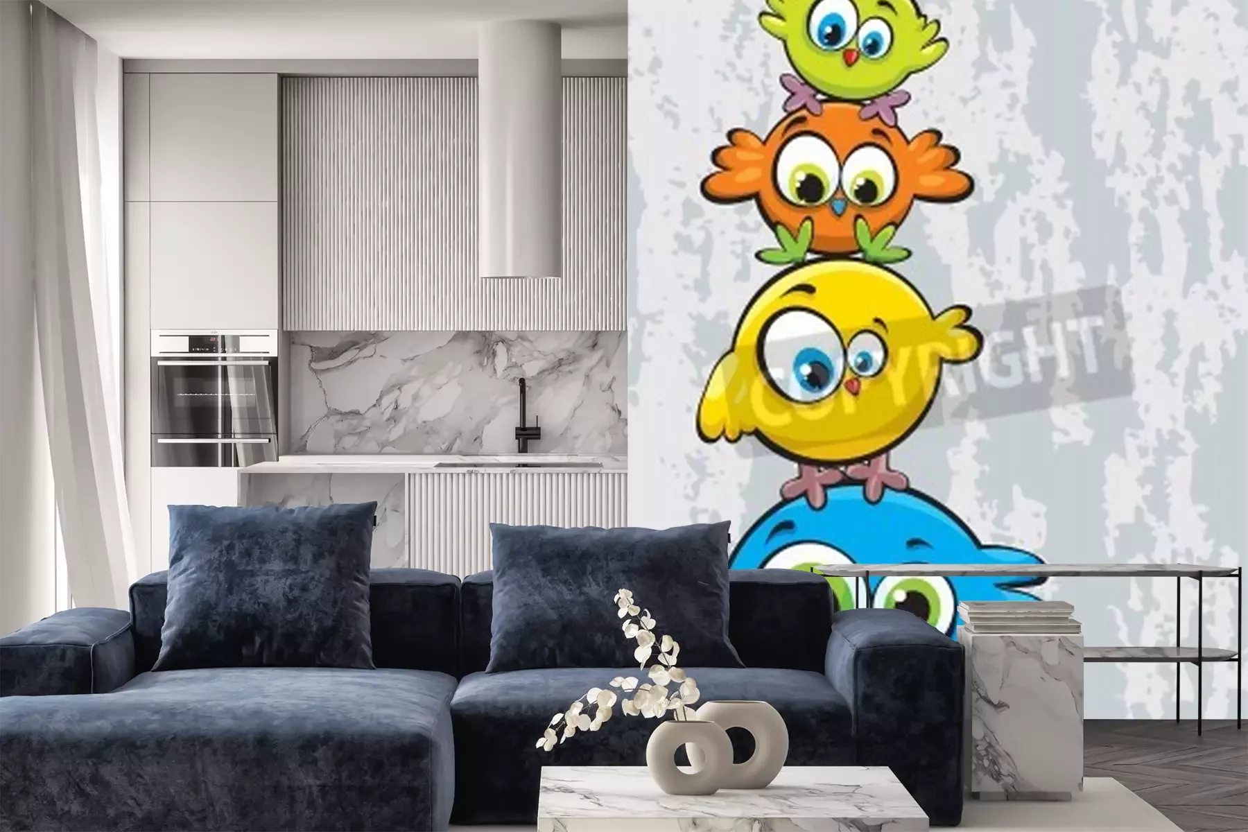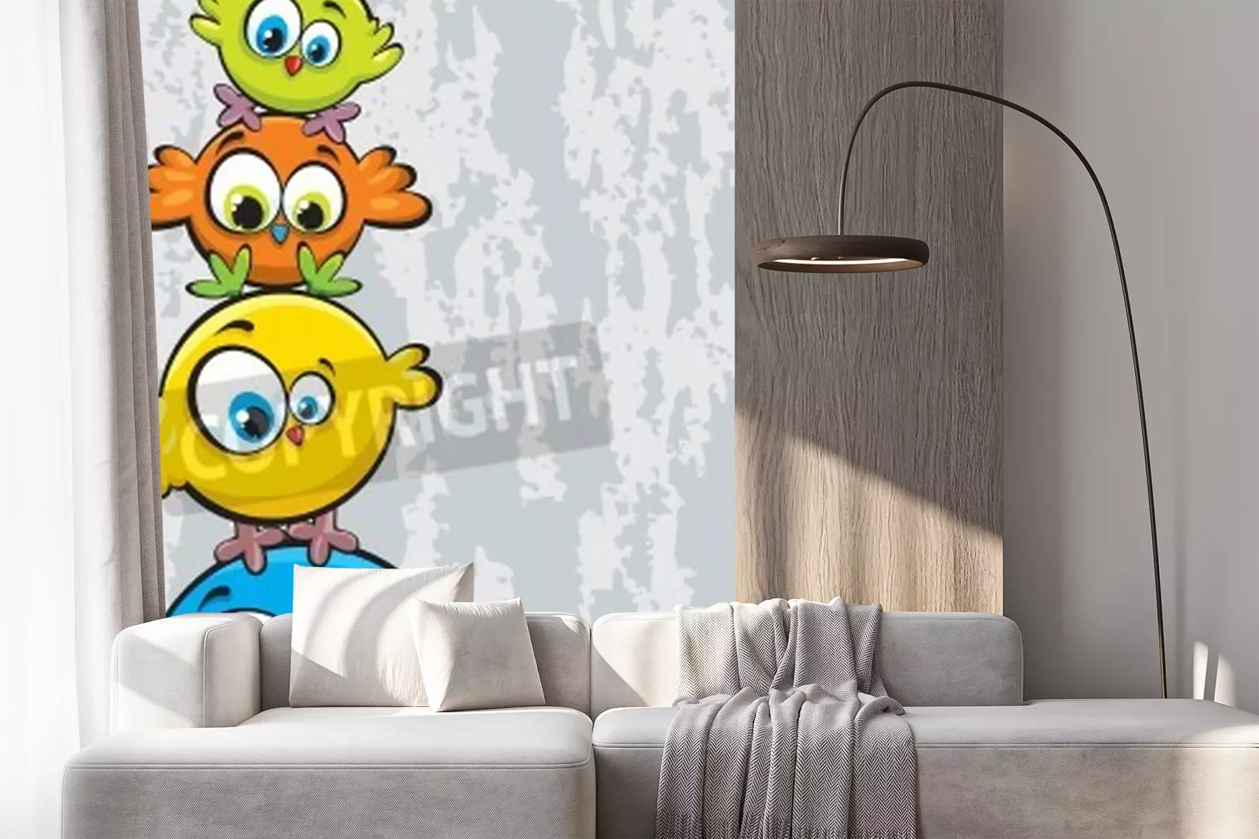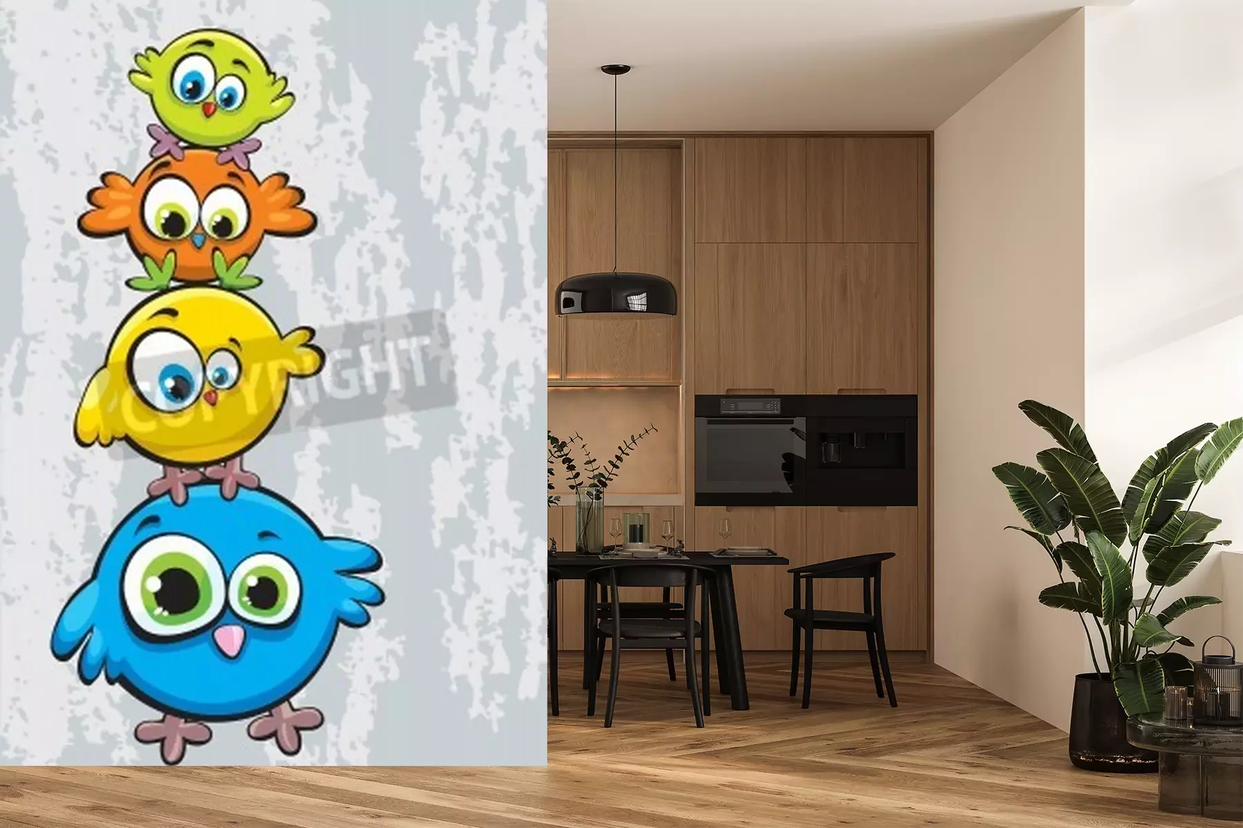 Sticker Funny Cartoon-Familie von Vögeln, die auf einander