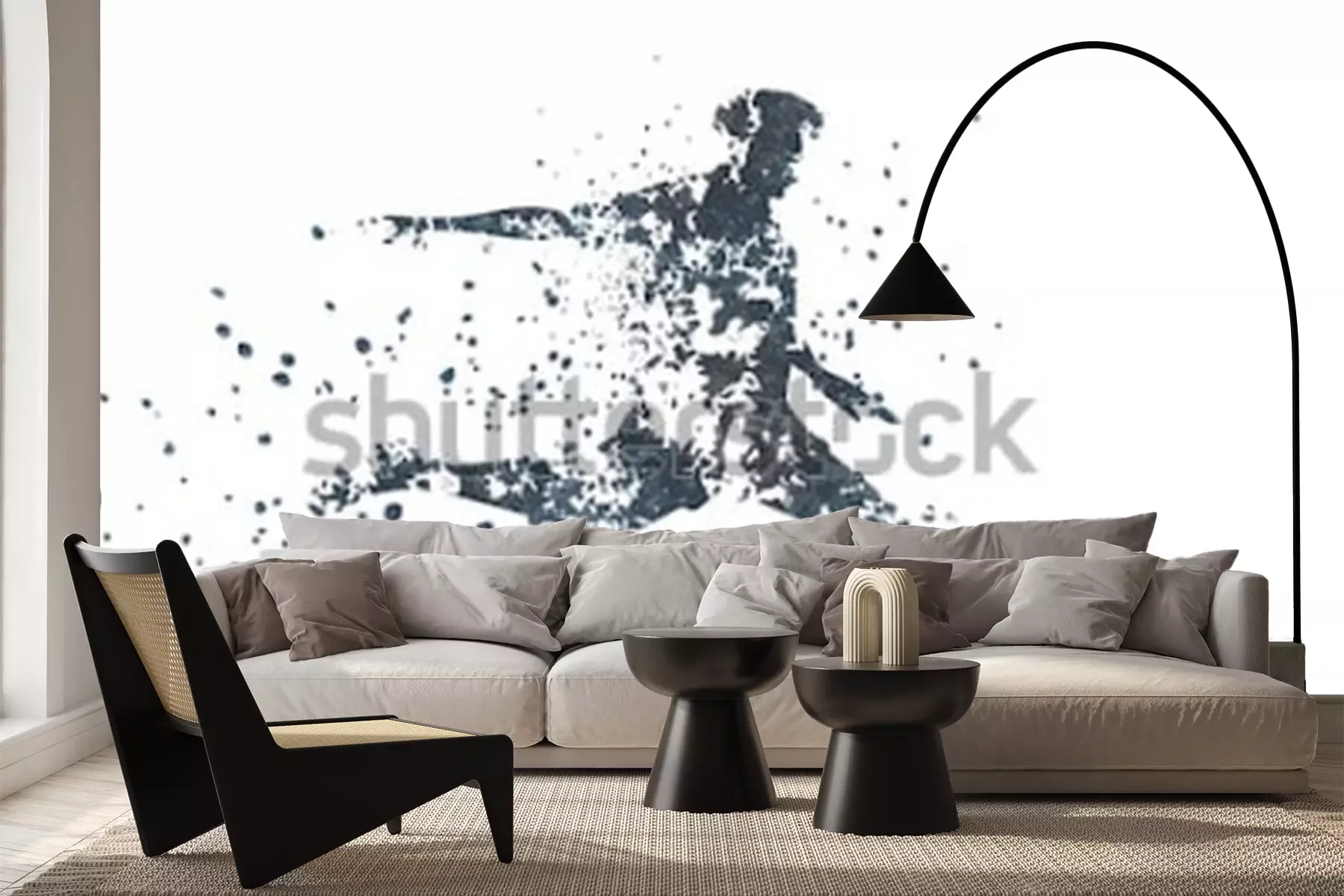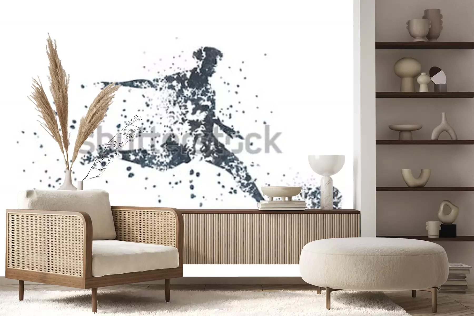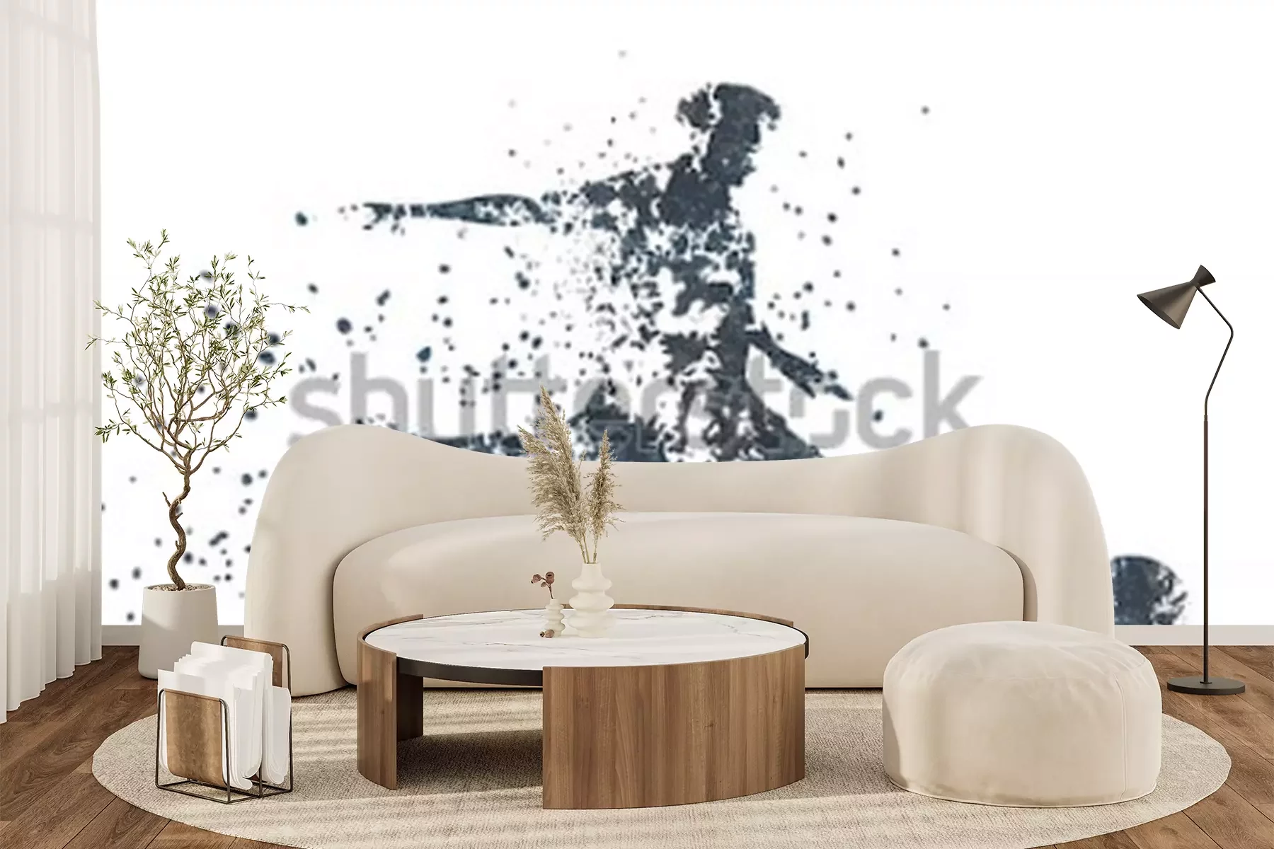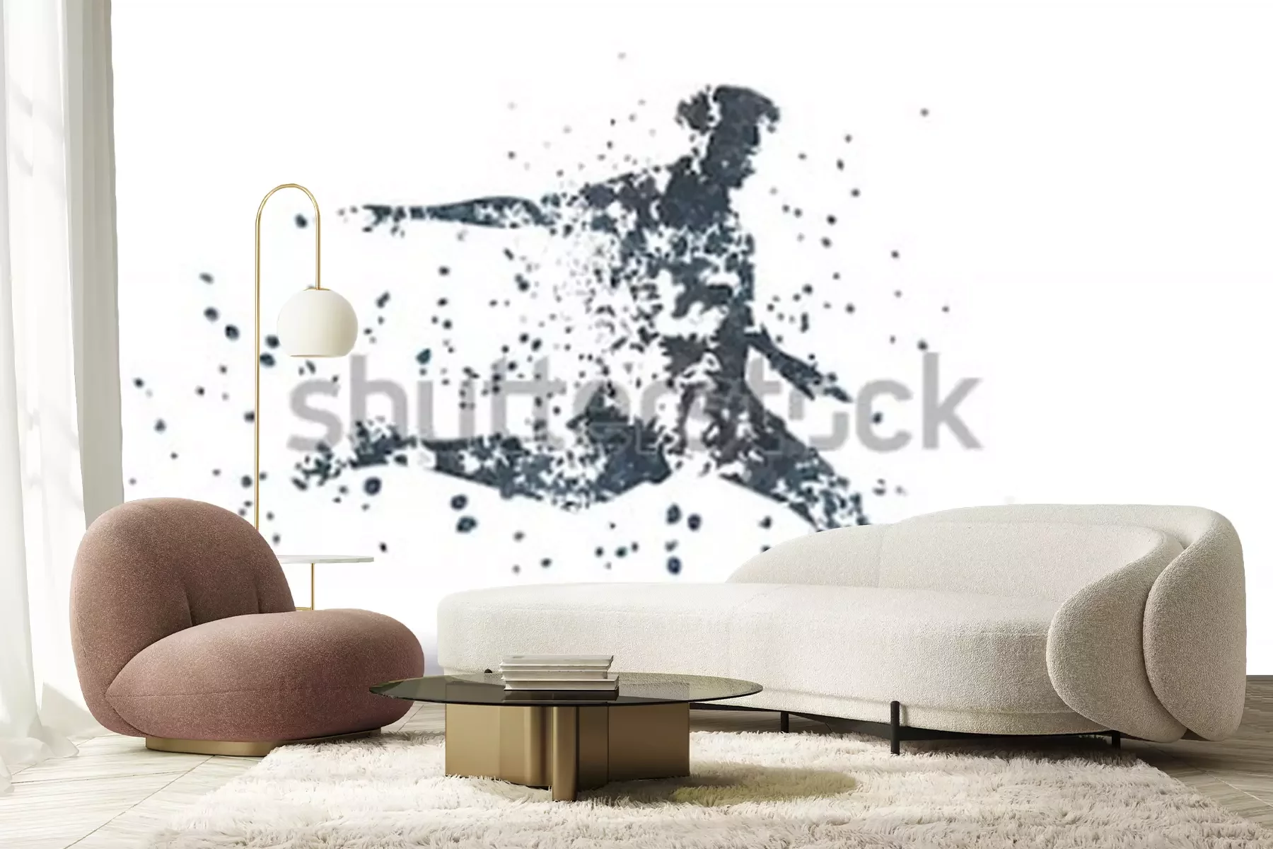 Sticker Fußballspieler, treten Sie einen Ball, Partikel divergierende Zusammensetzung, Vektorillustration