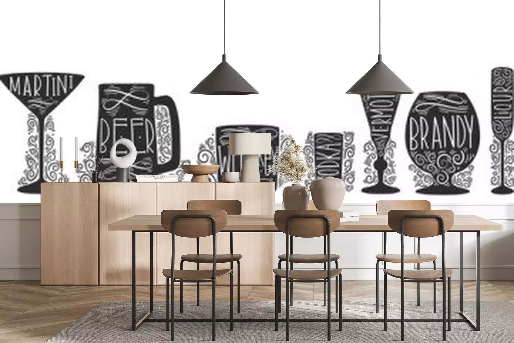 Sticker Gefäße für verschiedene Spirituosen mit Beschriftungen