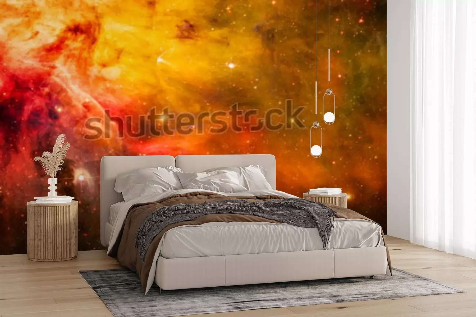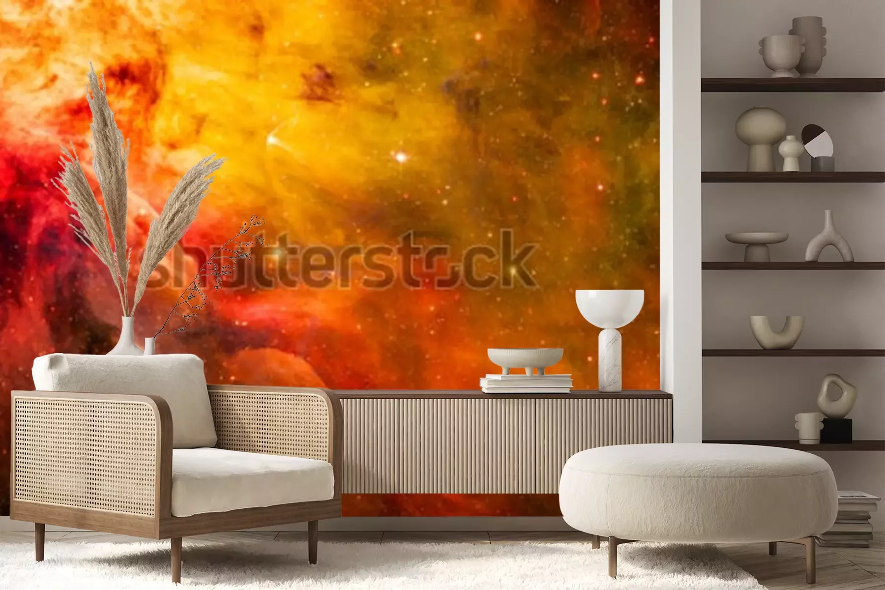 Sticker Gelb-roter Nebel vor dem Hintergrund der Sterne