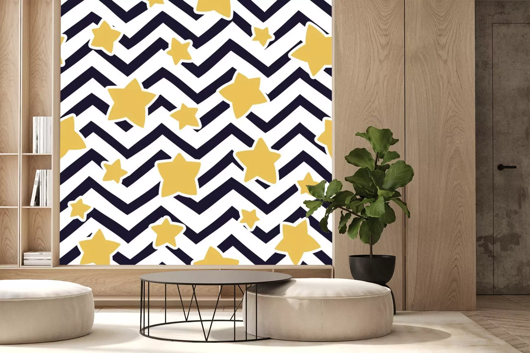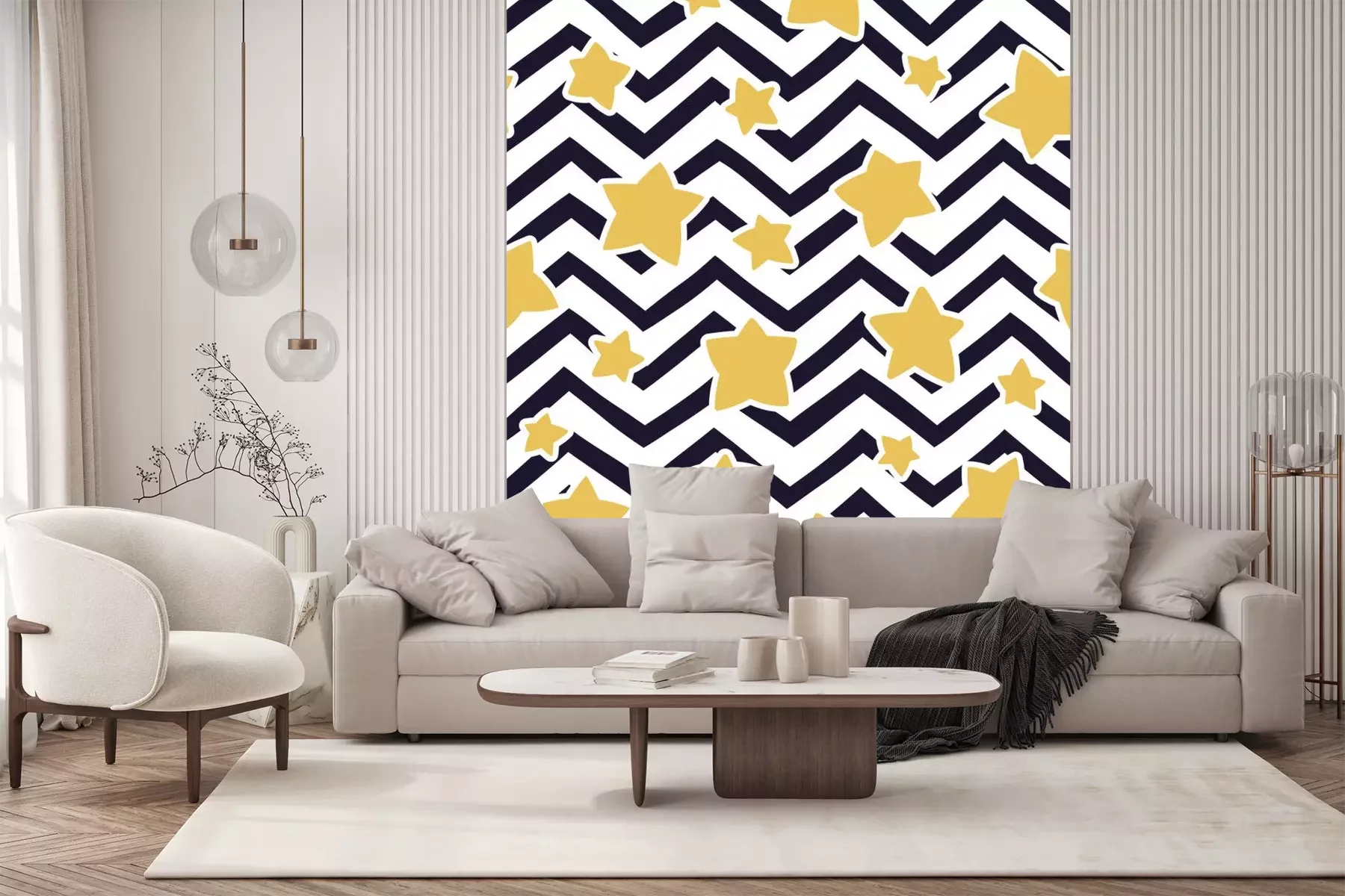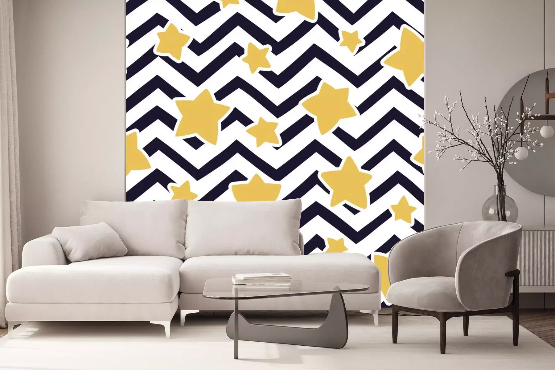 Sticker Gelbe Sterne auf schwarz-weißen Zickzacklinien