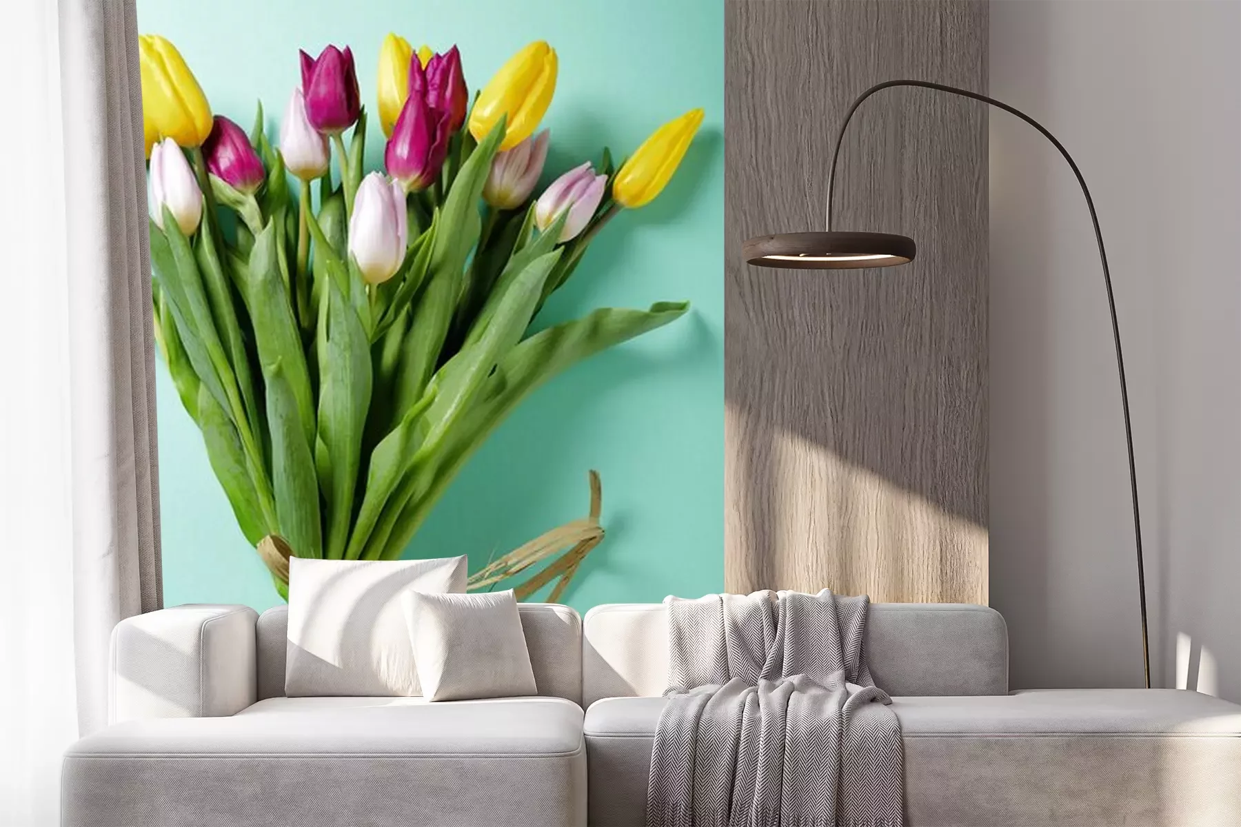 Gelbe Tulpen mit Schnur gebundenProblemlose Lieferung durch vertrauenswürdige Spediteure