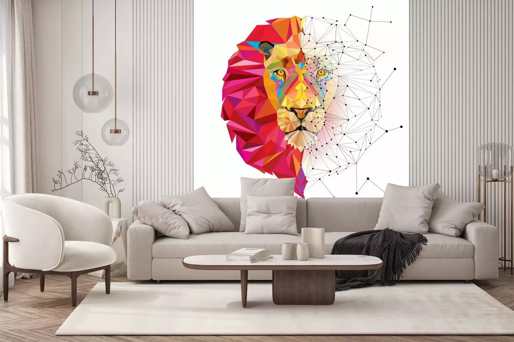 Geometrischer Löwenkopf in FarbeProblemlose Lieferung durch vertrauenswürdige Spediteure