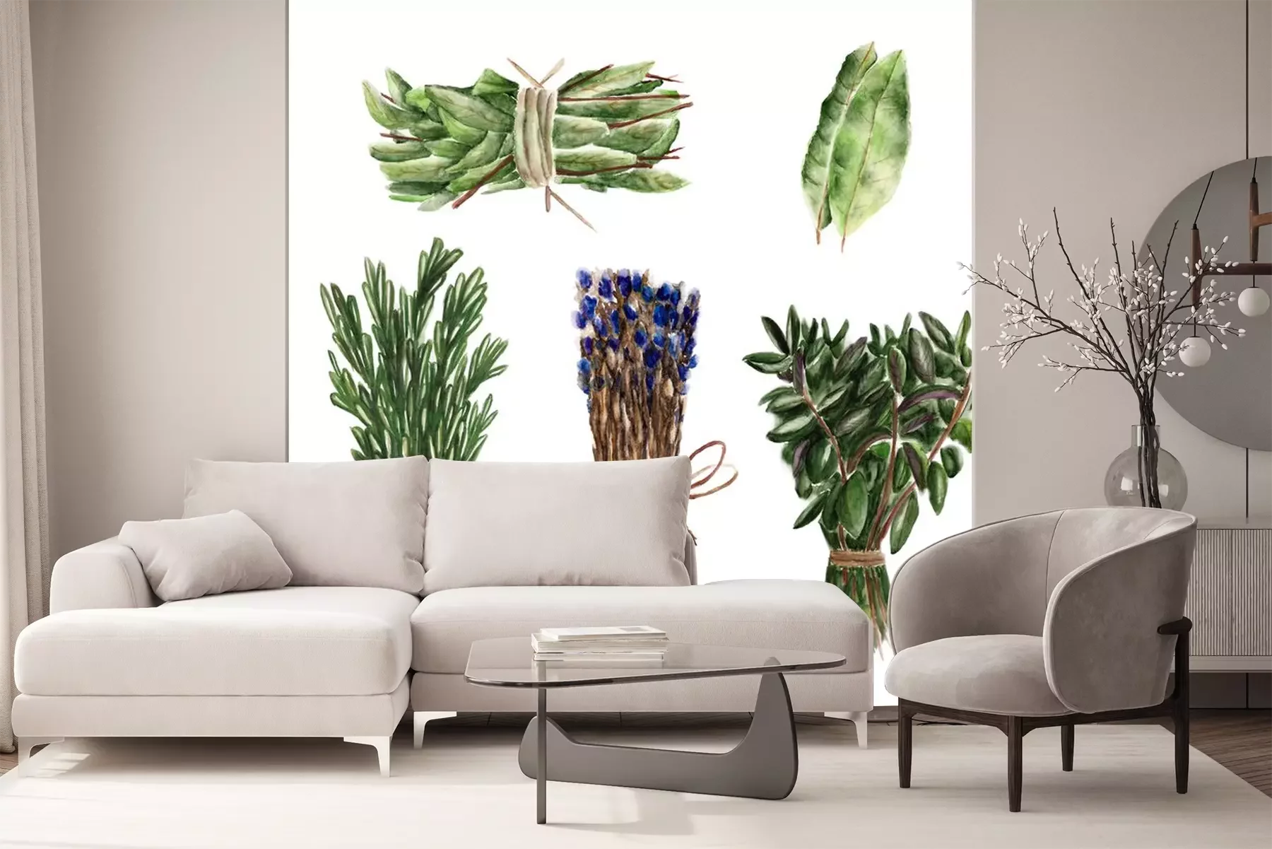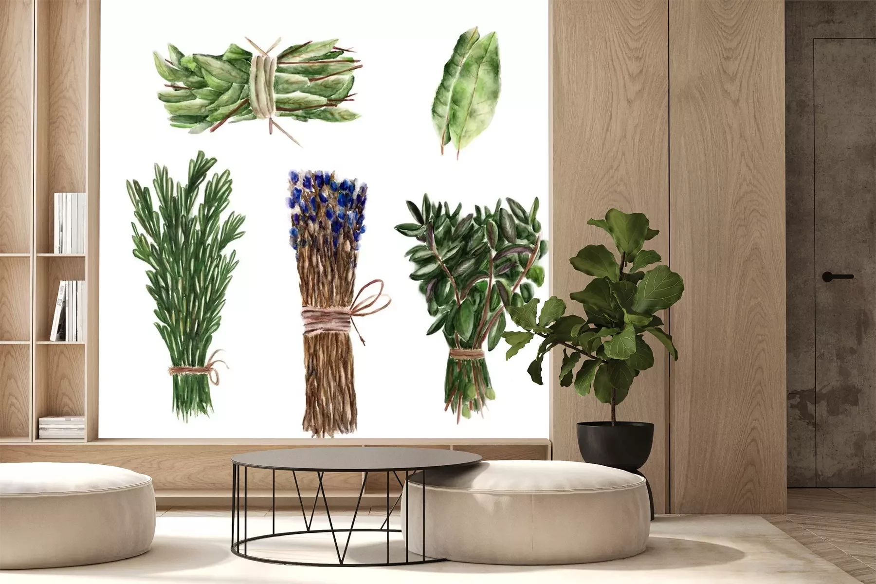 Sticker Gewürze weiß Hintergrund Kräuter in Bündeln