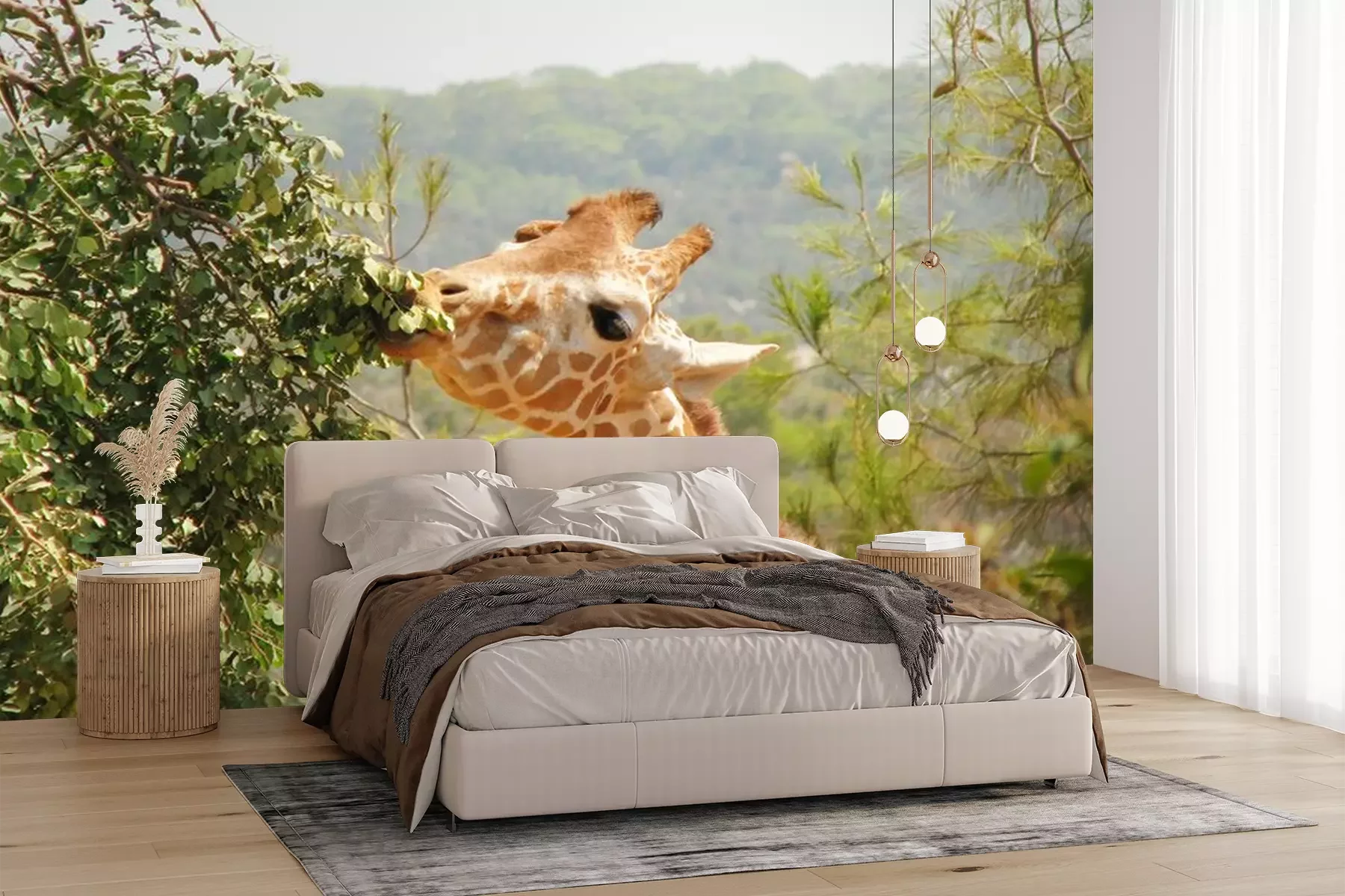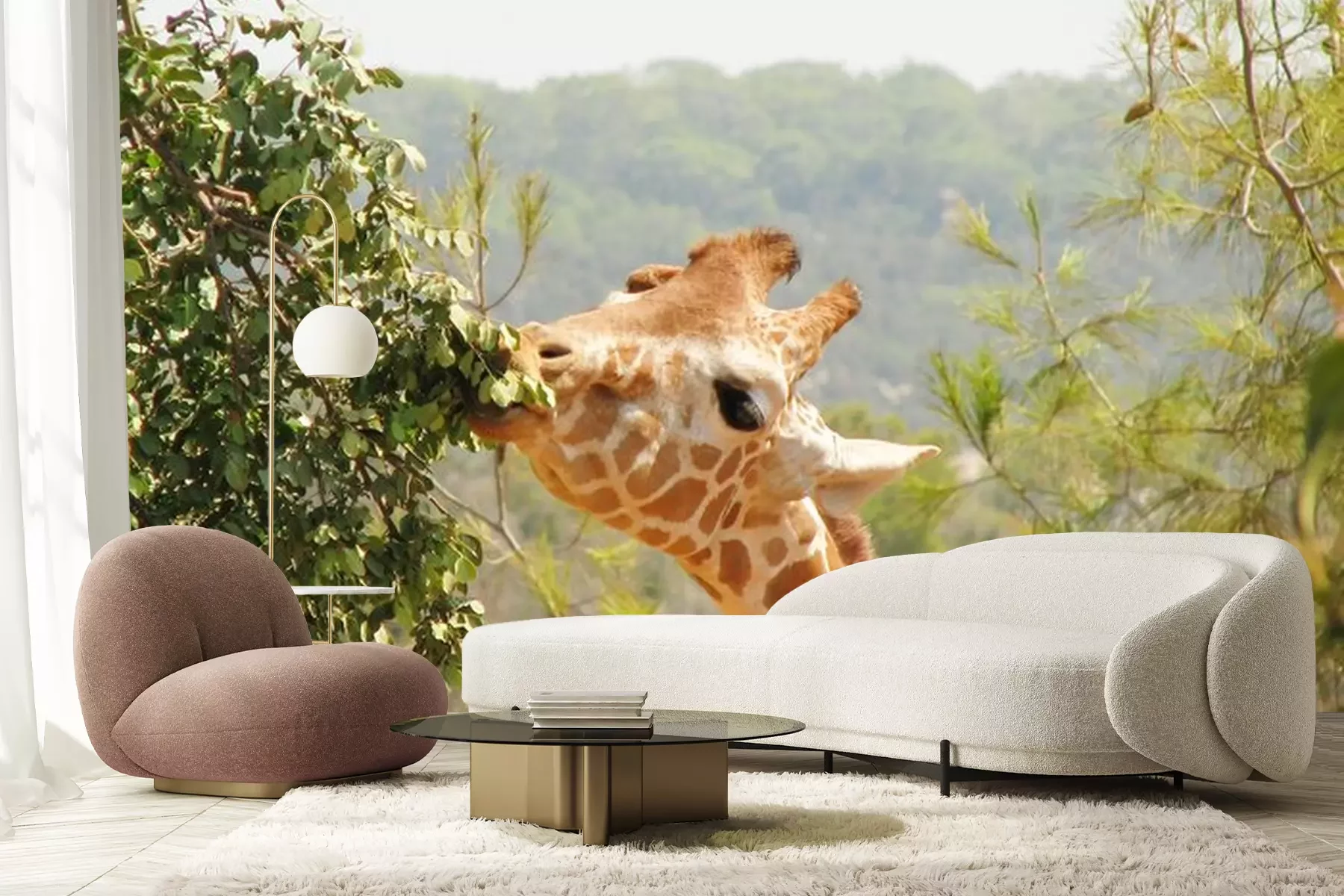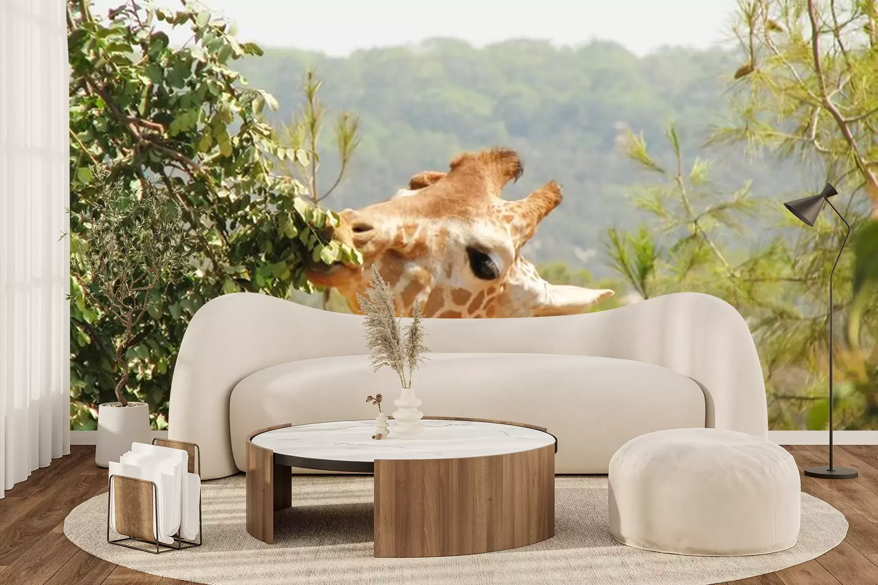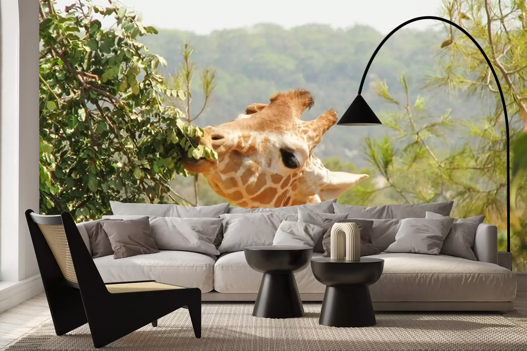 Sticker Giraffe frisst Blätter vom Baum