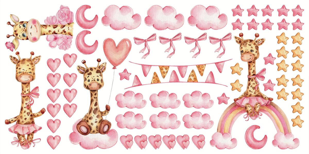 Sticker: Giraffen rosa Herzen Wolken und Sternchen