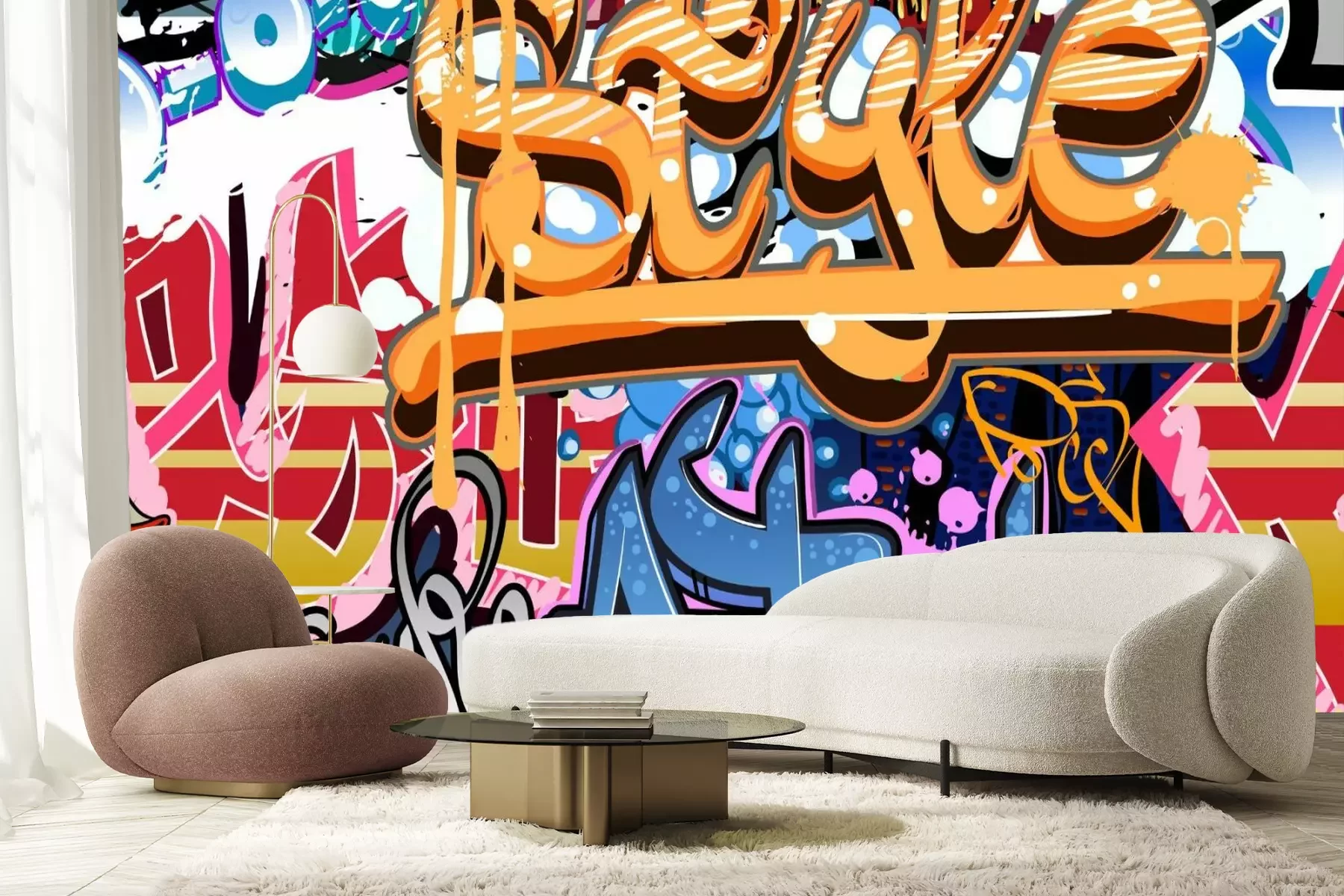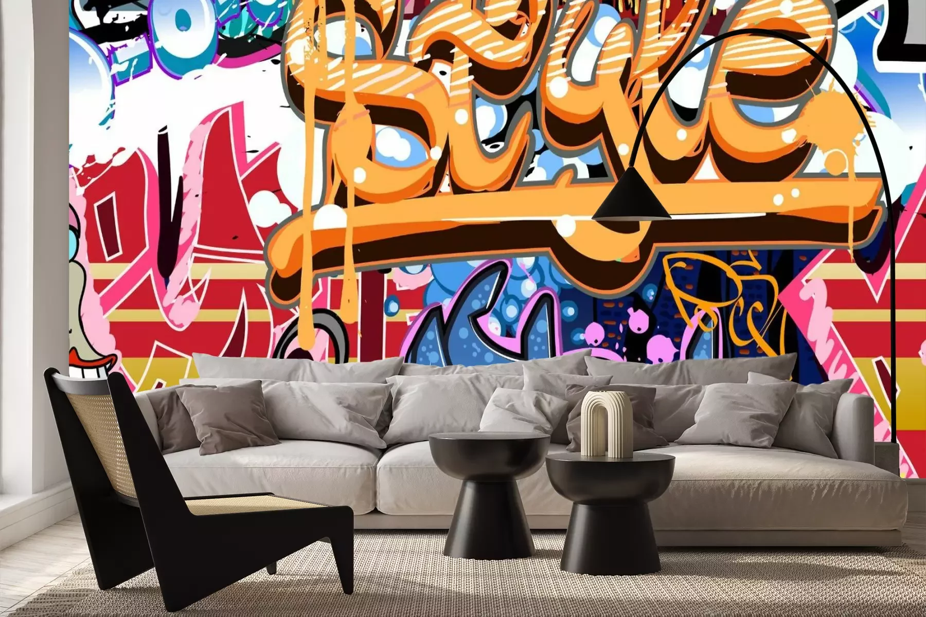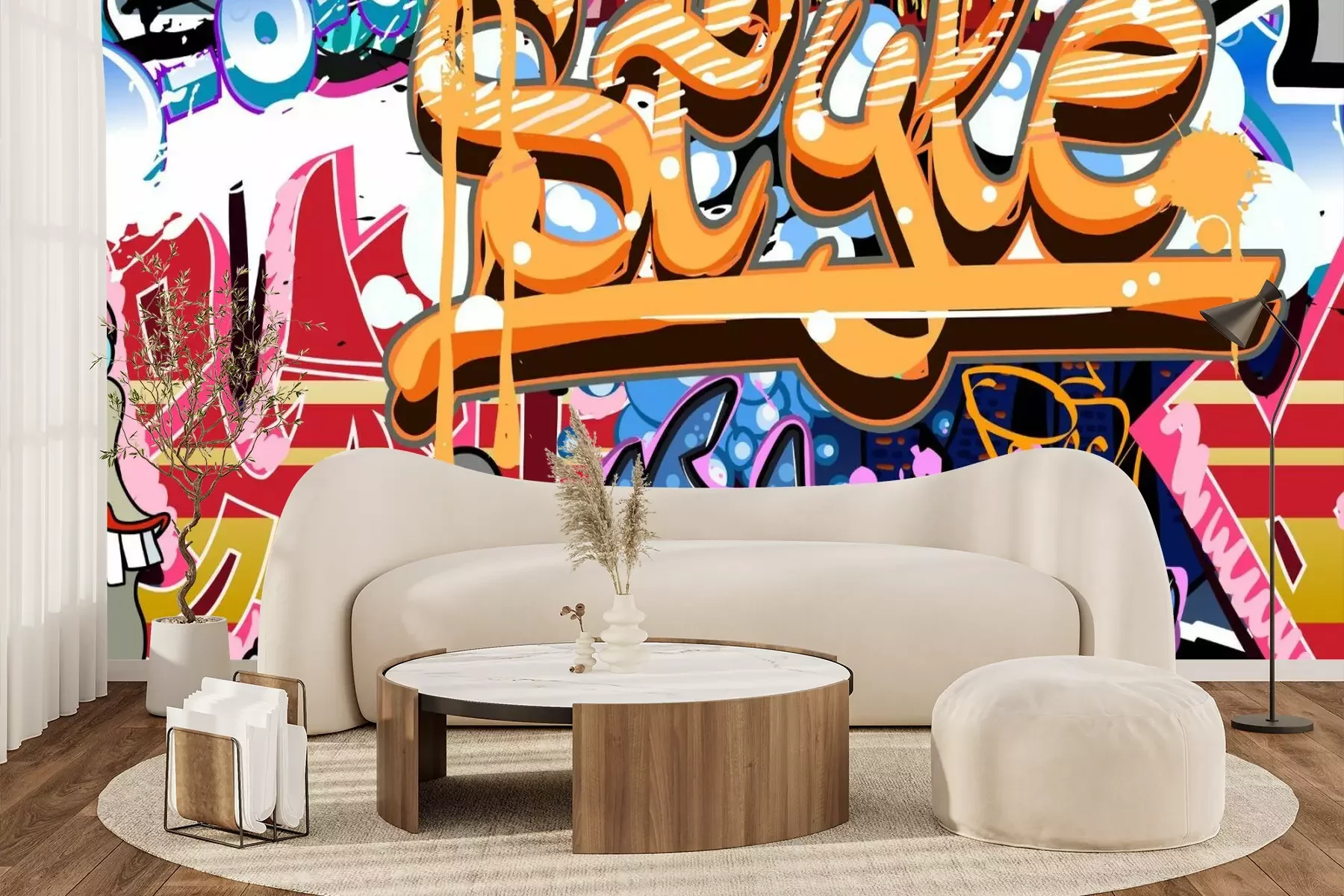 Buntes Graffiti mit Slogans und FarbeffektenFototapete