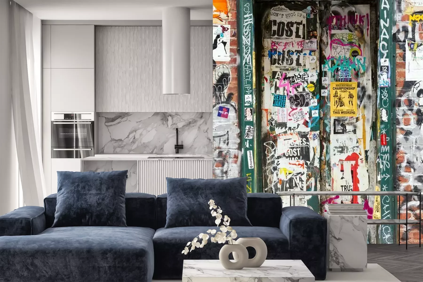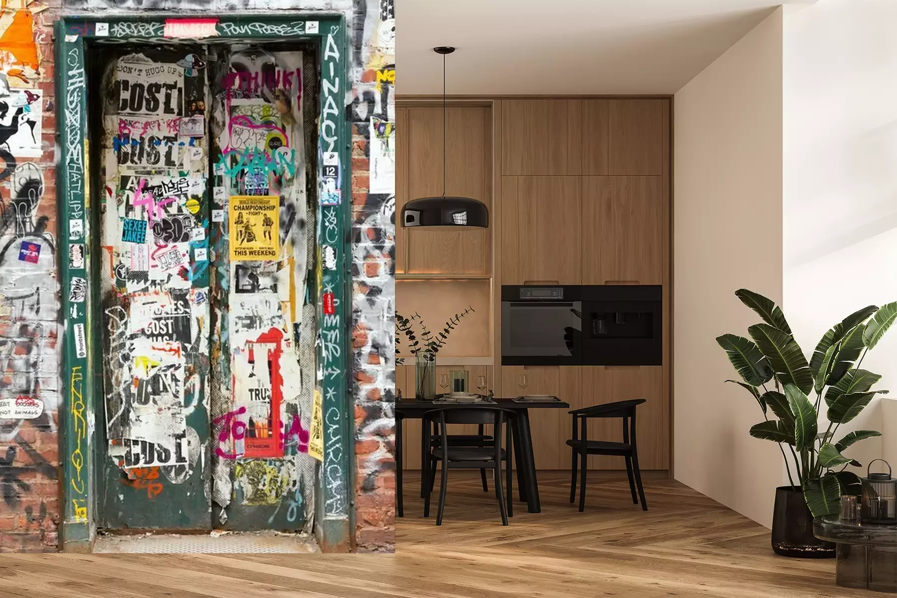 Sticker Graffiti überdachte Tür in New York City