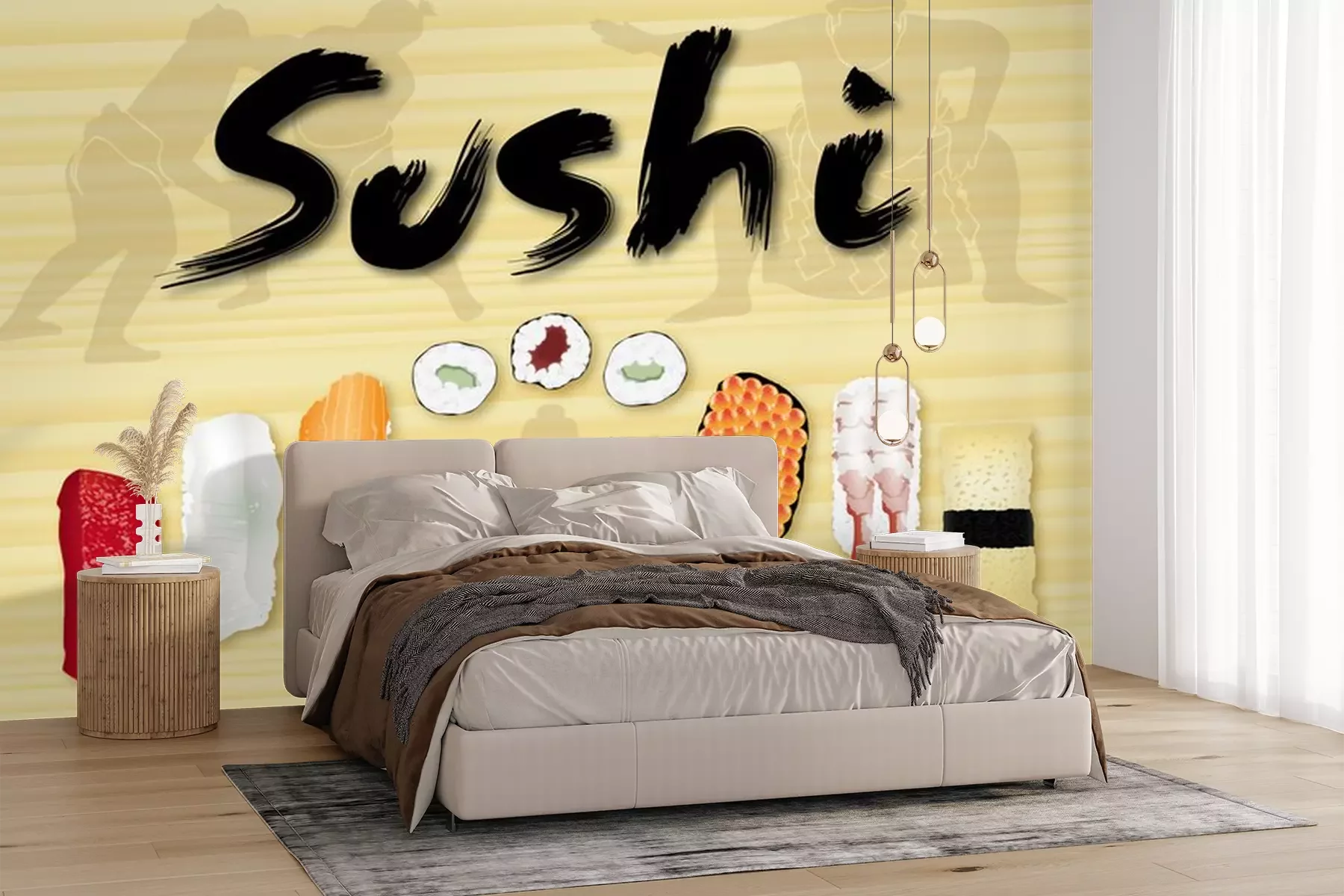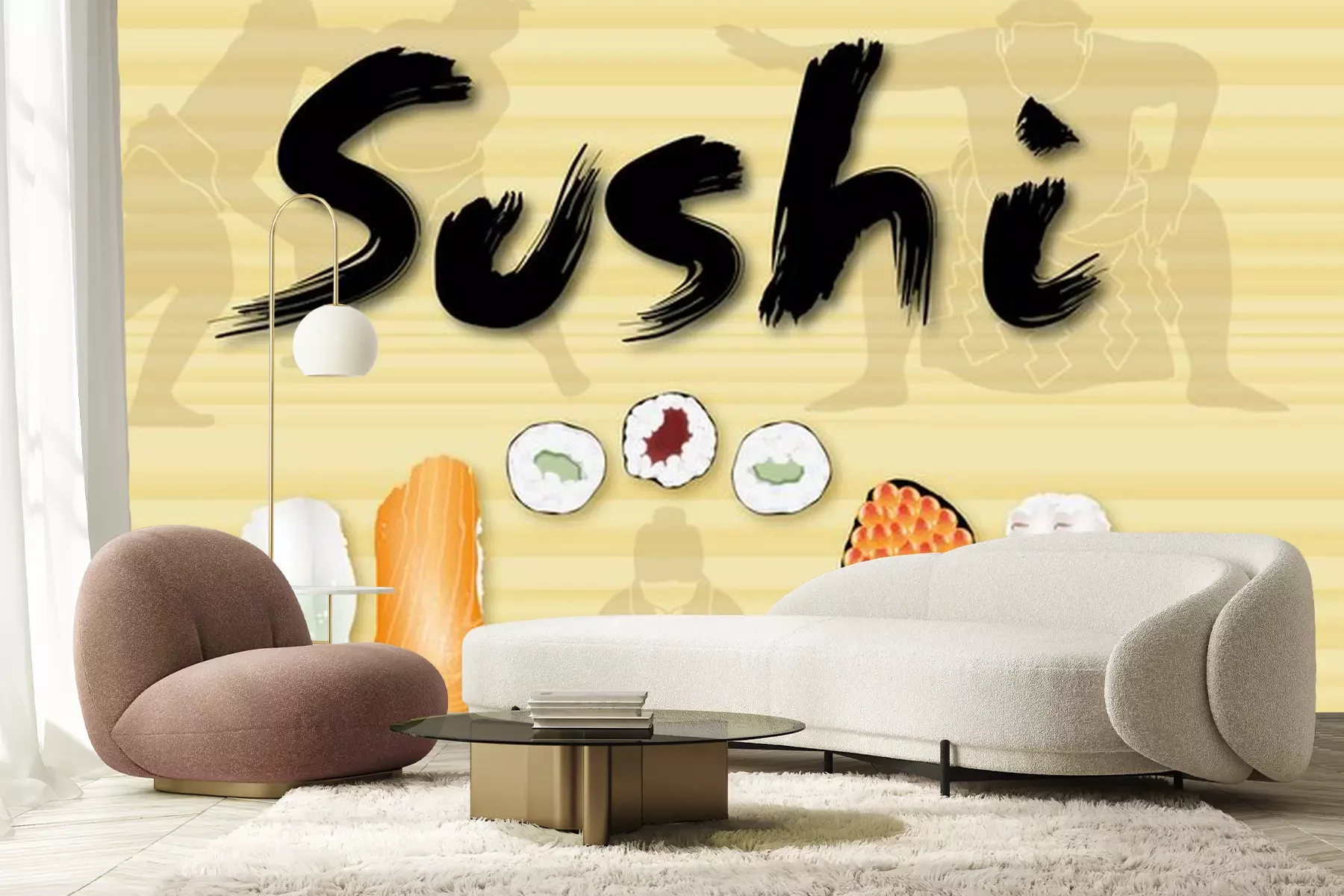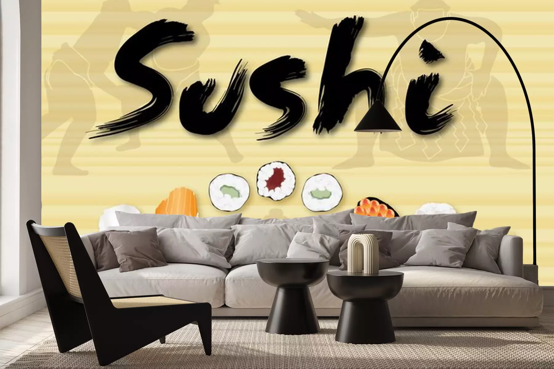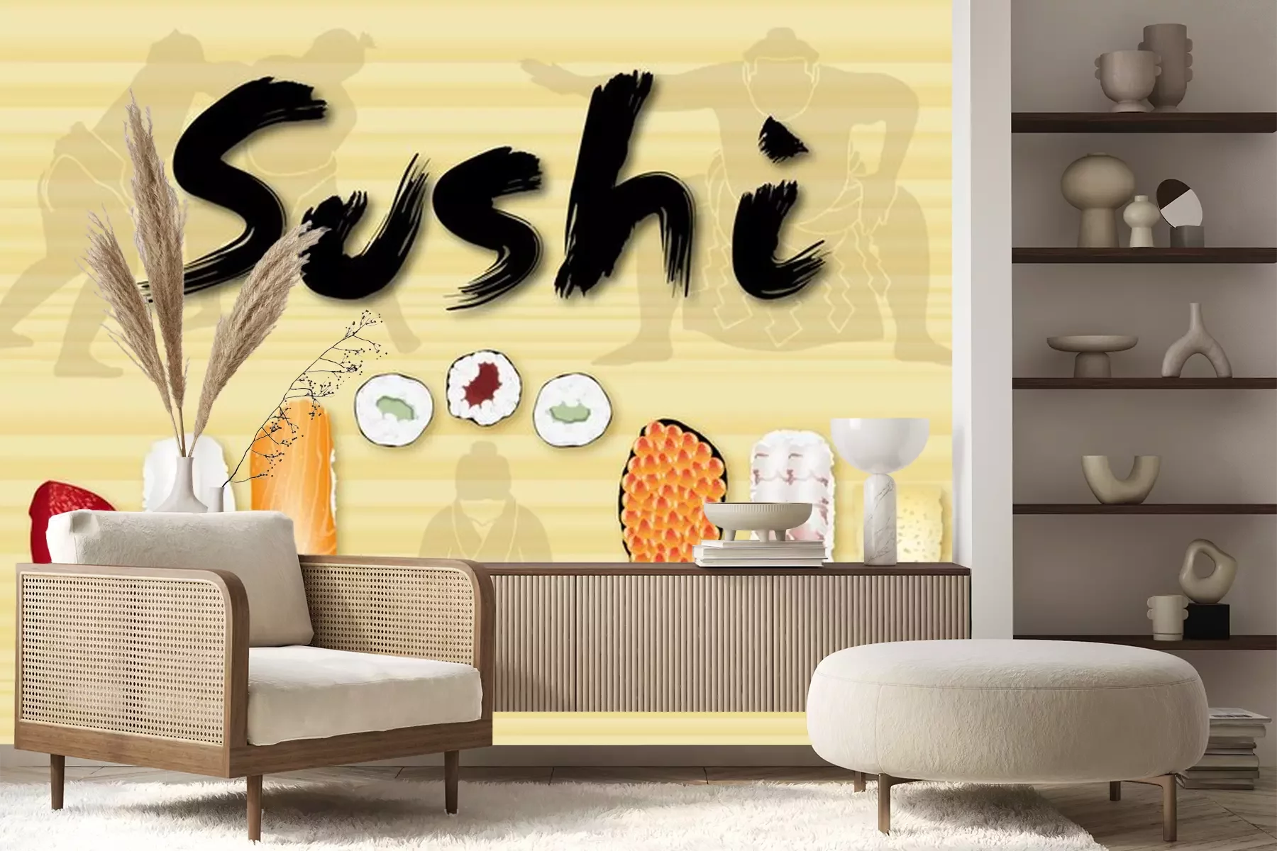 Sticker Grafik mit Sushi und Sumo-Sportlern