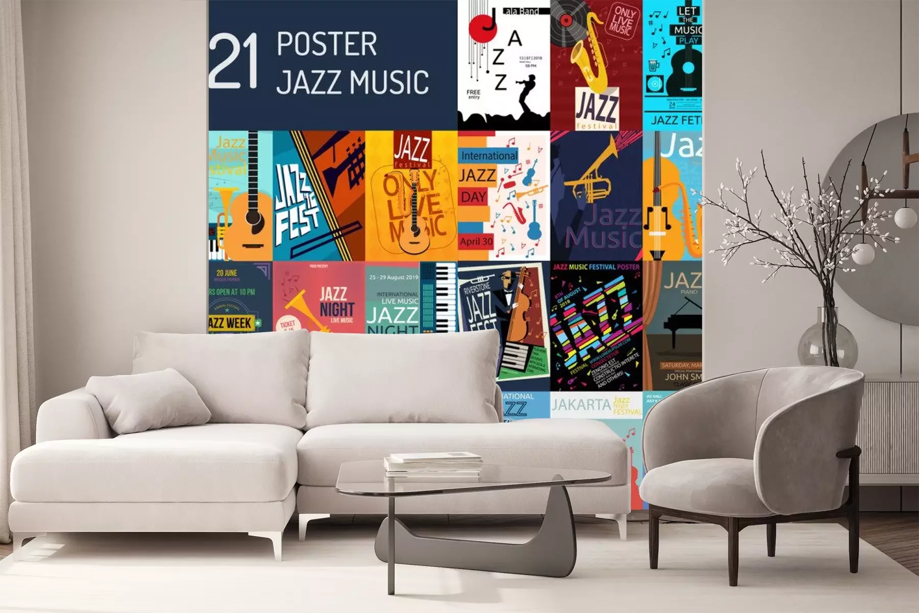 Sticker Grafiken zur Werbung für Konzerte und Jazzbands