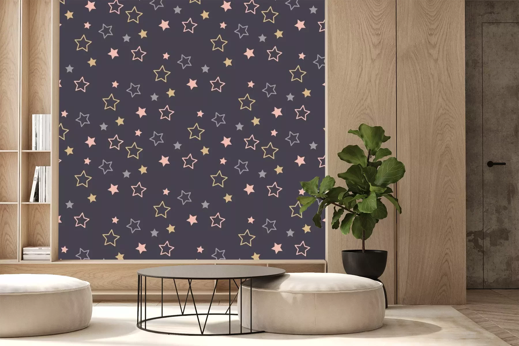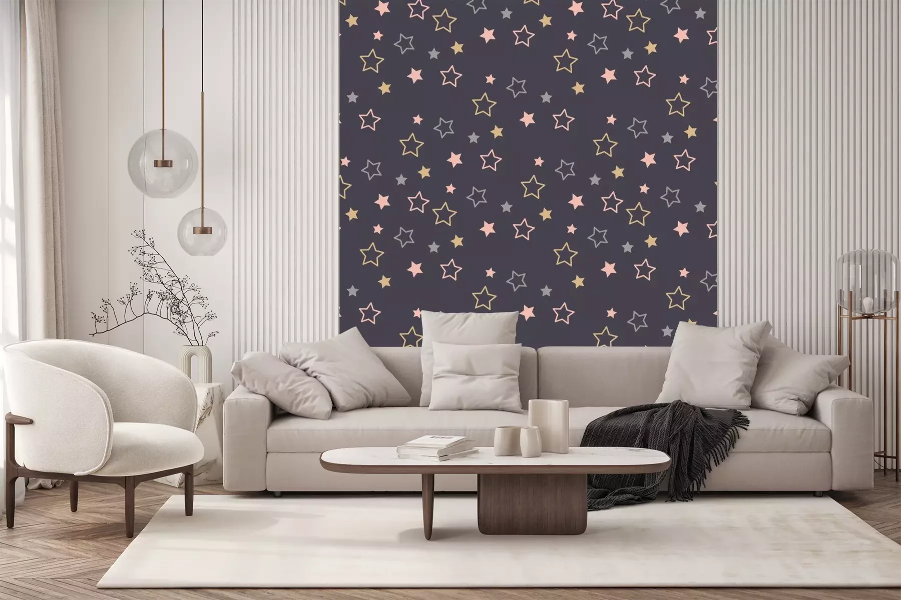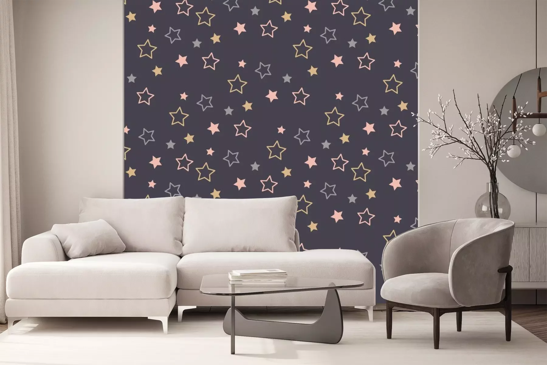 Sticker Graue rosa gelbe Sterne dunkler Hintergrund