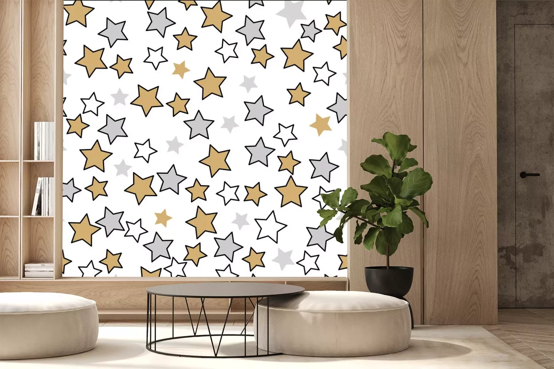 Sticker Graue weiße und gelbe Sterne einfache Grafik