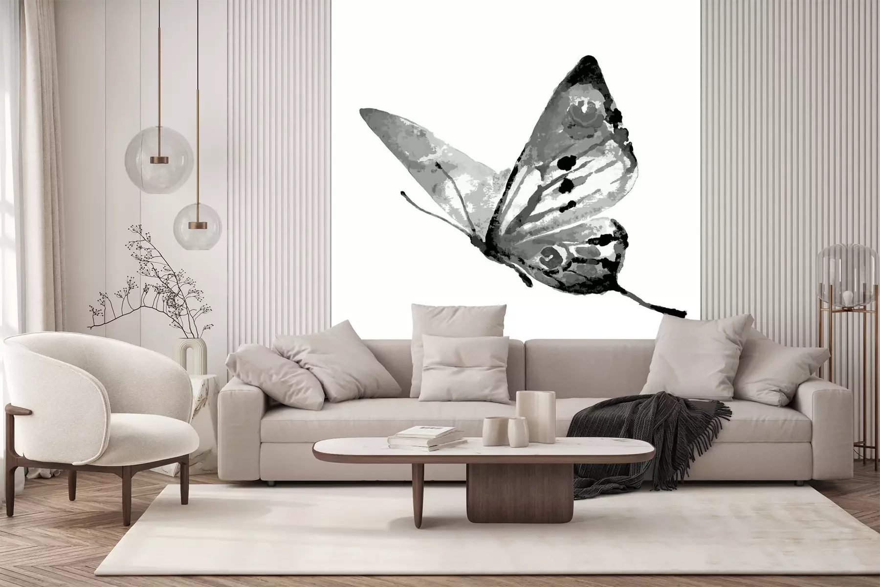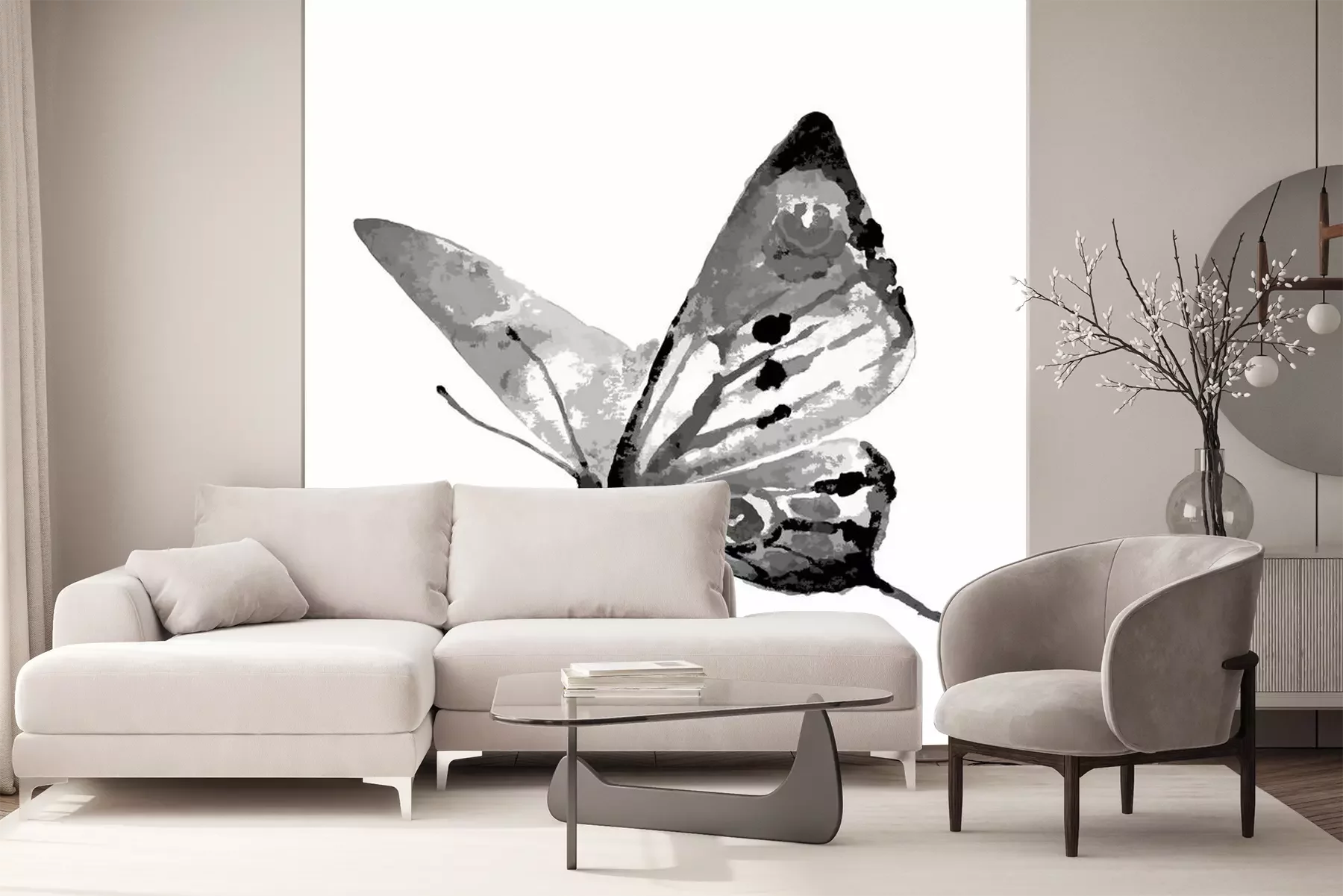 Sticker Grauer Schmetterling in Bewegung